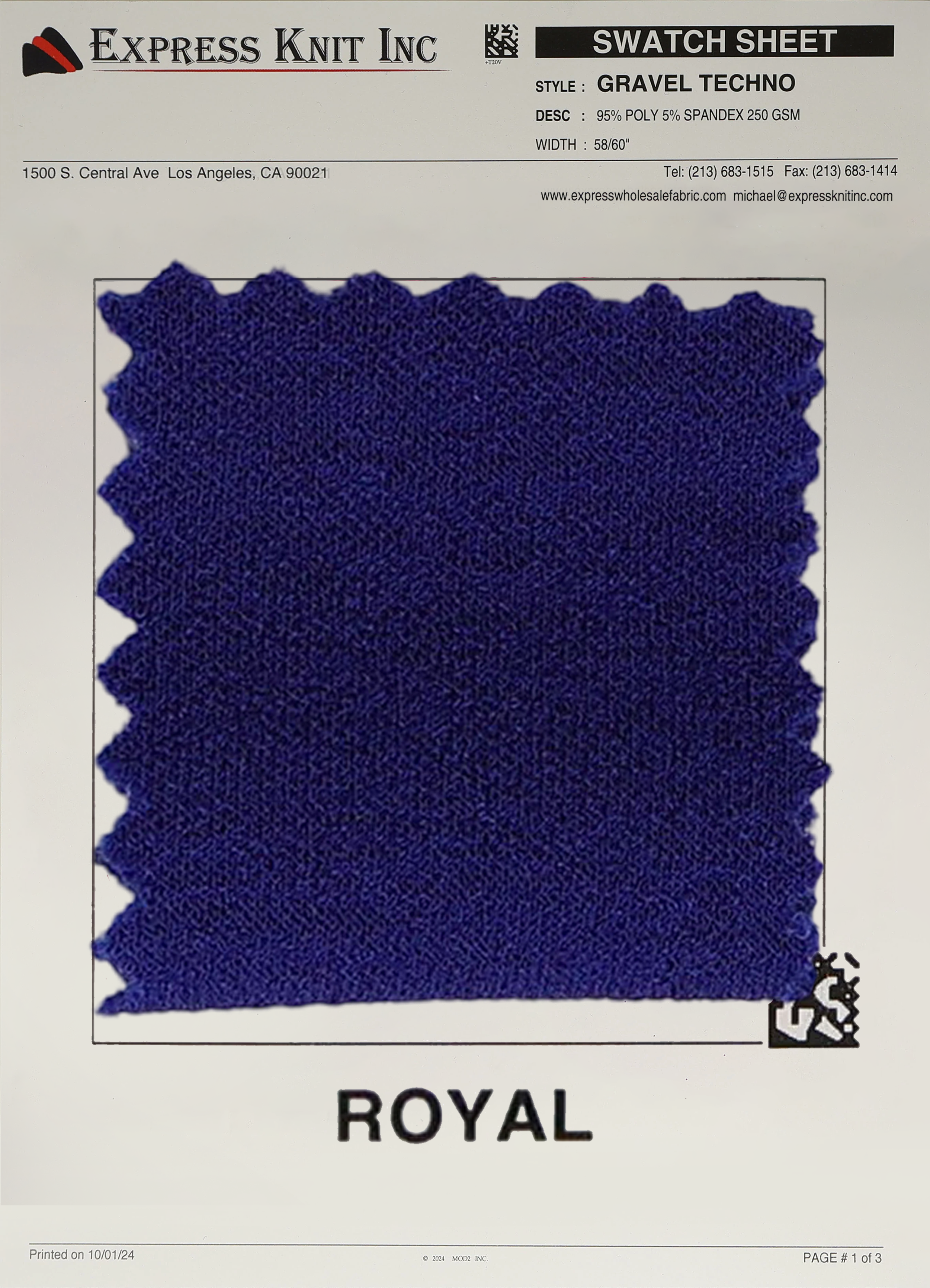 • Composition: 95% Polyester, 5% Spandex