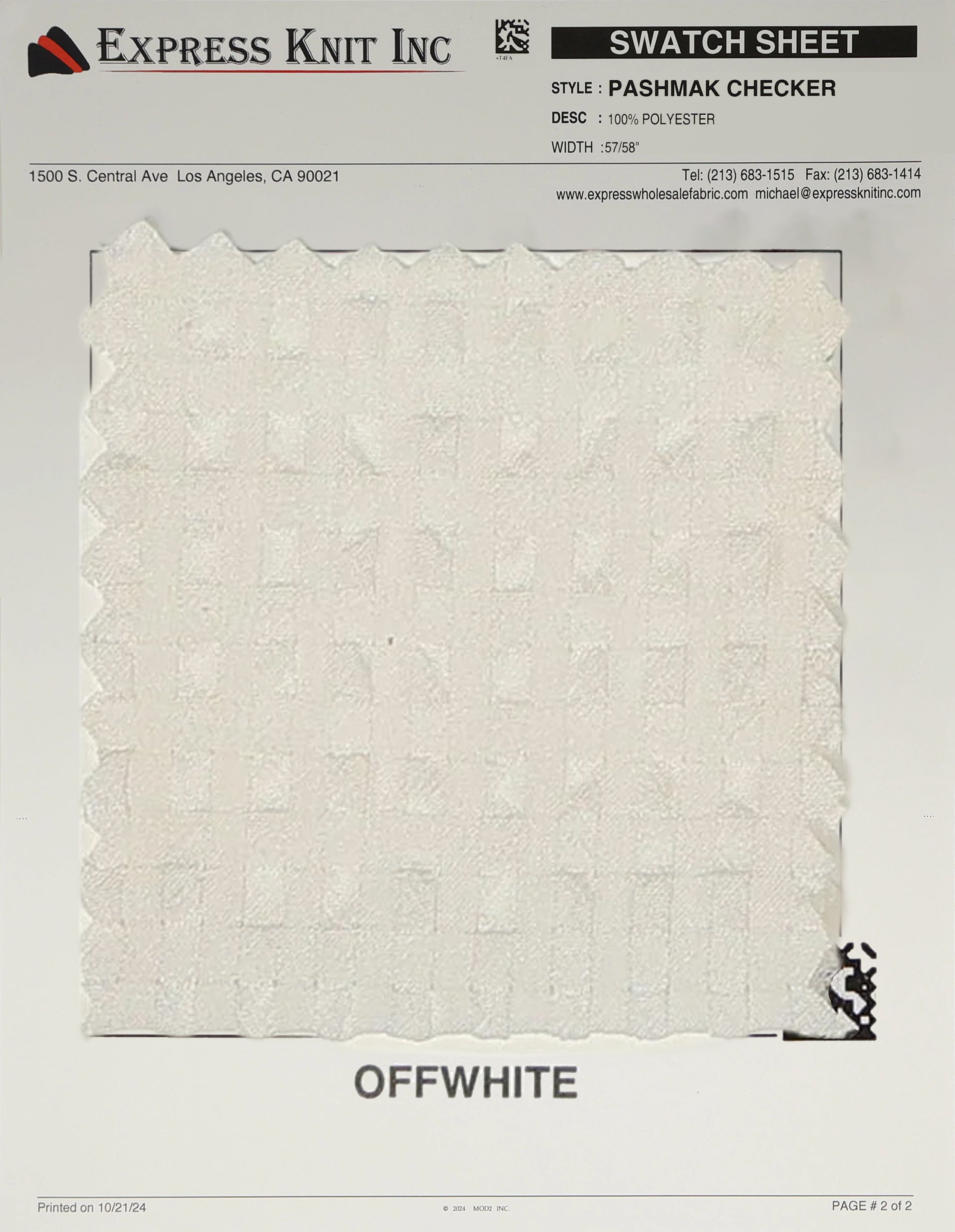 Wholesale Pashmak Checker Fabric - 100% Polyester, 57/58 Inches Wide