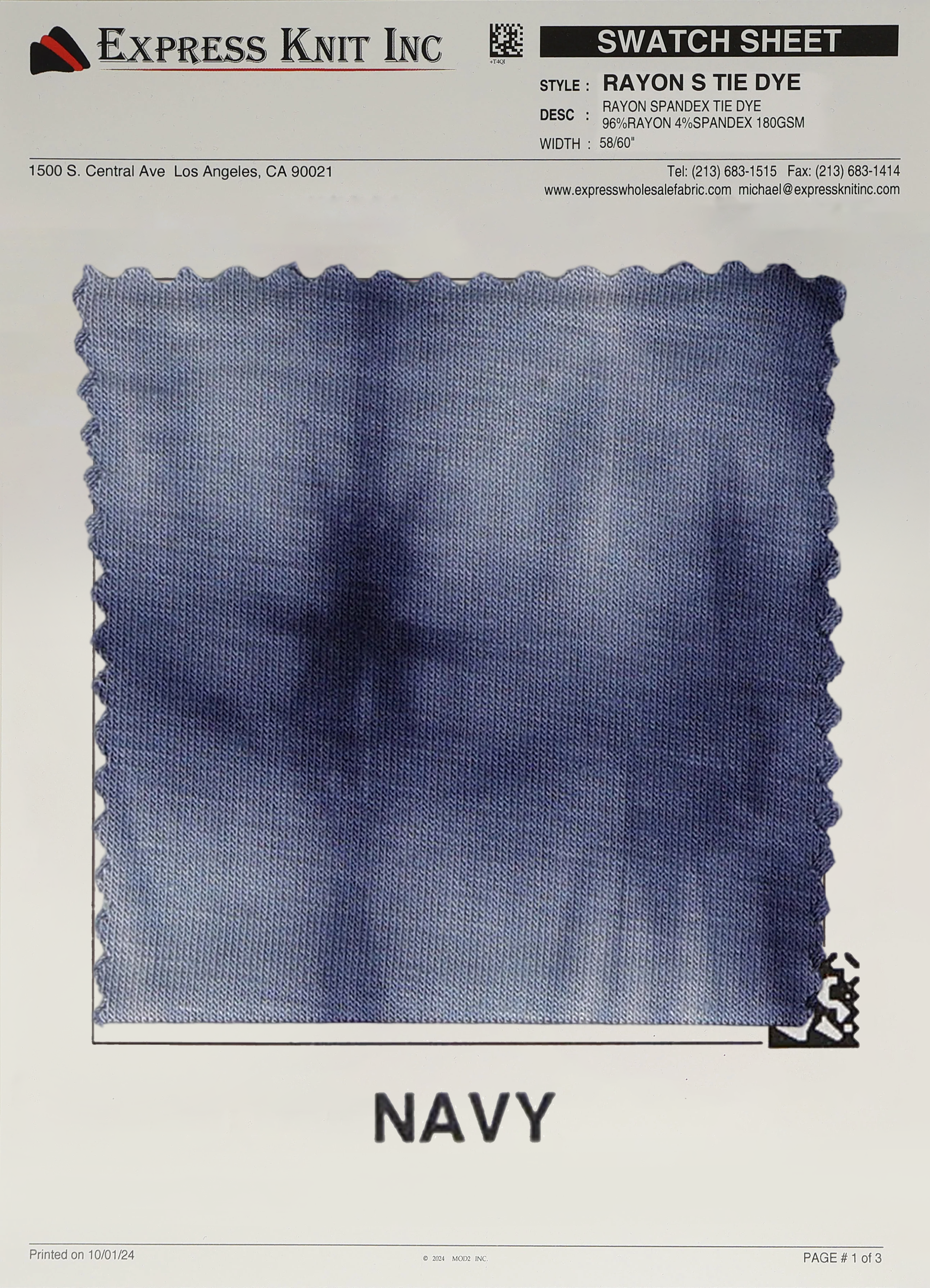 Enhance your fabric collection with our Rayon Spandex Tie-Dye Fabric, perfect for fashion brands, manufacturers, and designers. Contact us today for bulk pricing and special offers!
