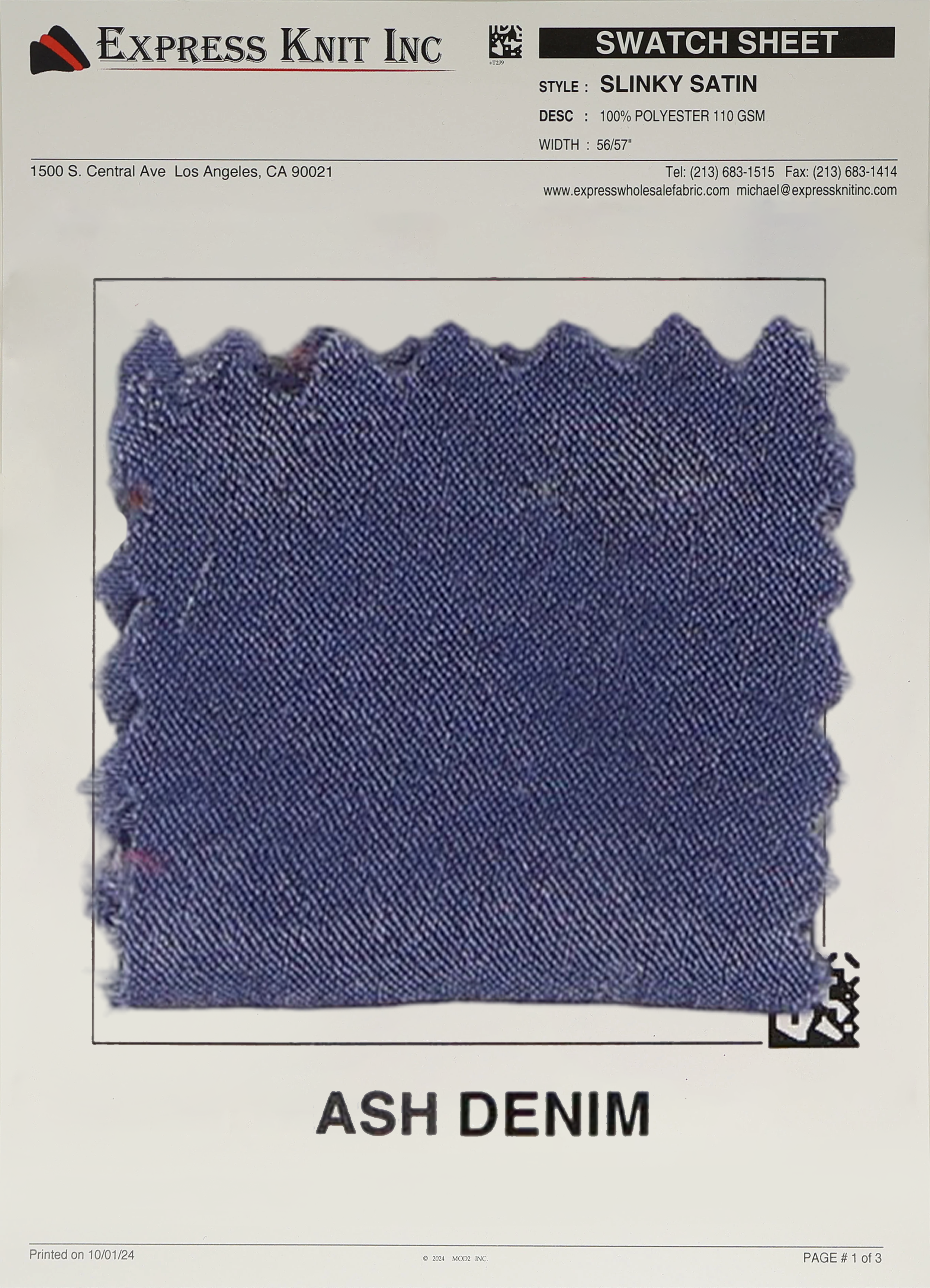 Our Slinky Satin Solid Fabric, available at wholesale pricing, offers a luxurious, silky feel with an elegant sheen, perfect for creating flowy, sophisticated designs. Made from 100% polyester, this fabric’s lightweight 110 GSM construction allows for beautiful draping and movement, ideal for both fashion and decor projects. The solid color finish provides a timeless look, and the 56-57 inch width is perfect for efficient cutting in larger projects, making it a go-to choice for designers and brands.