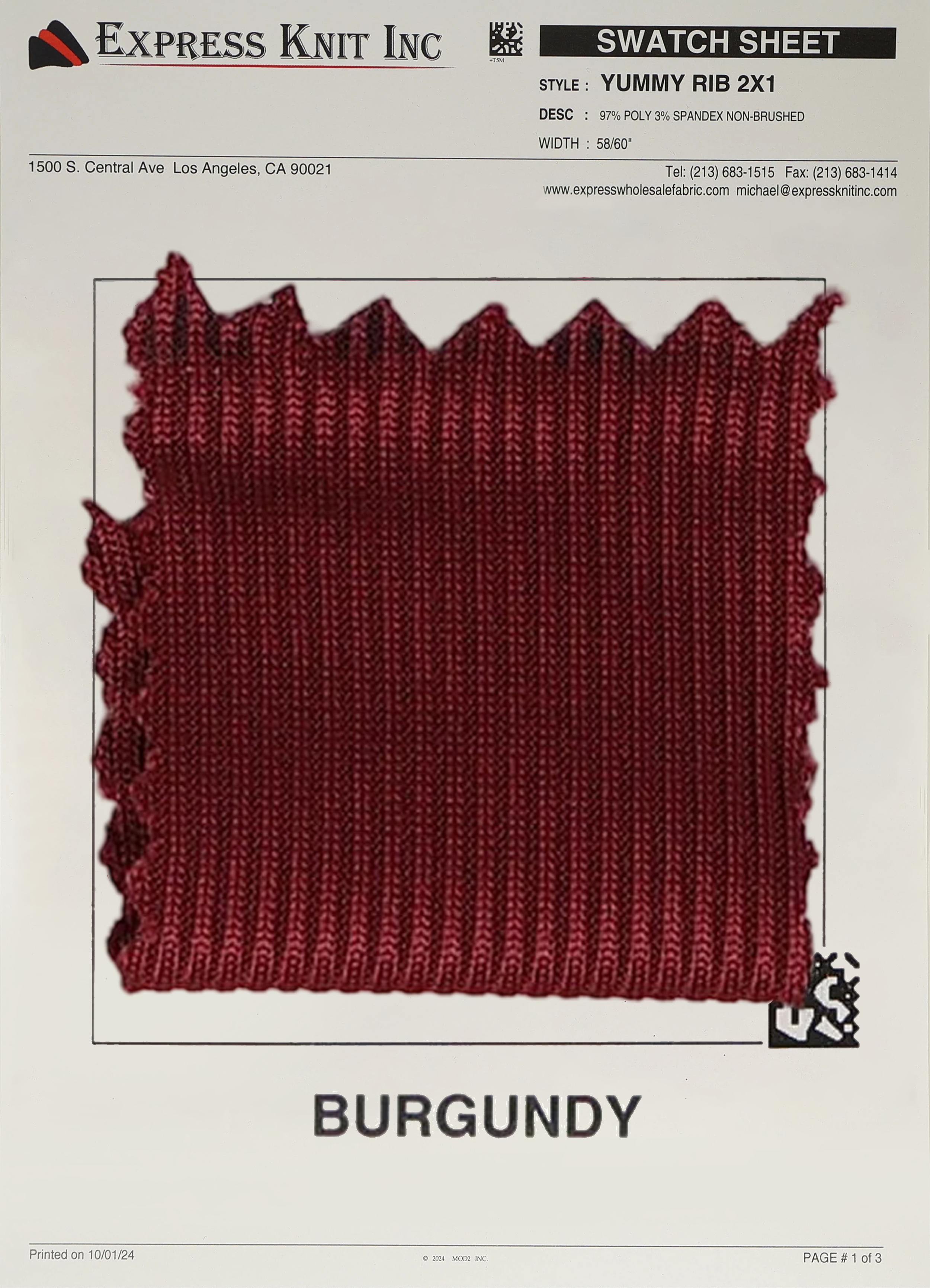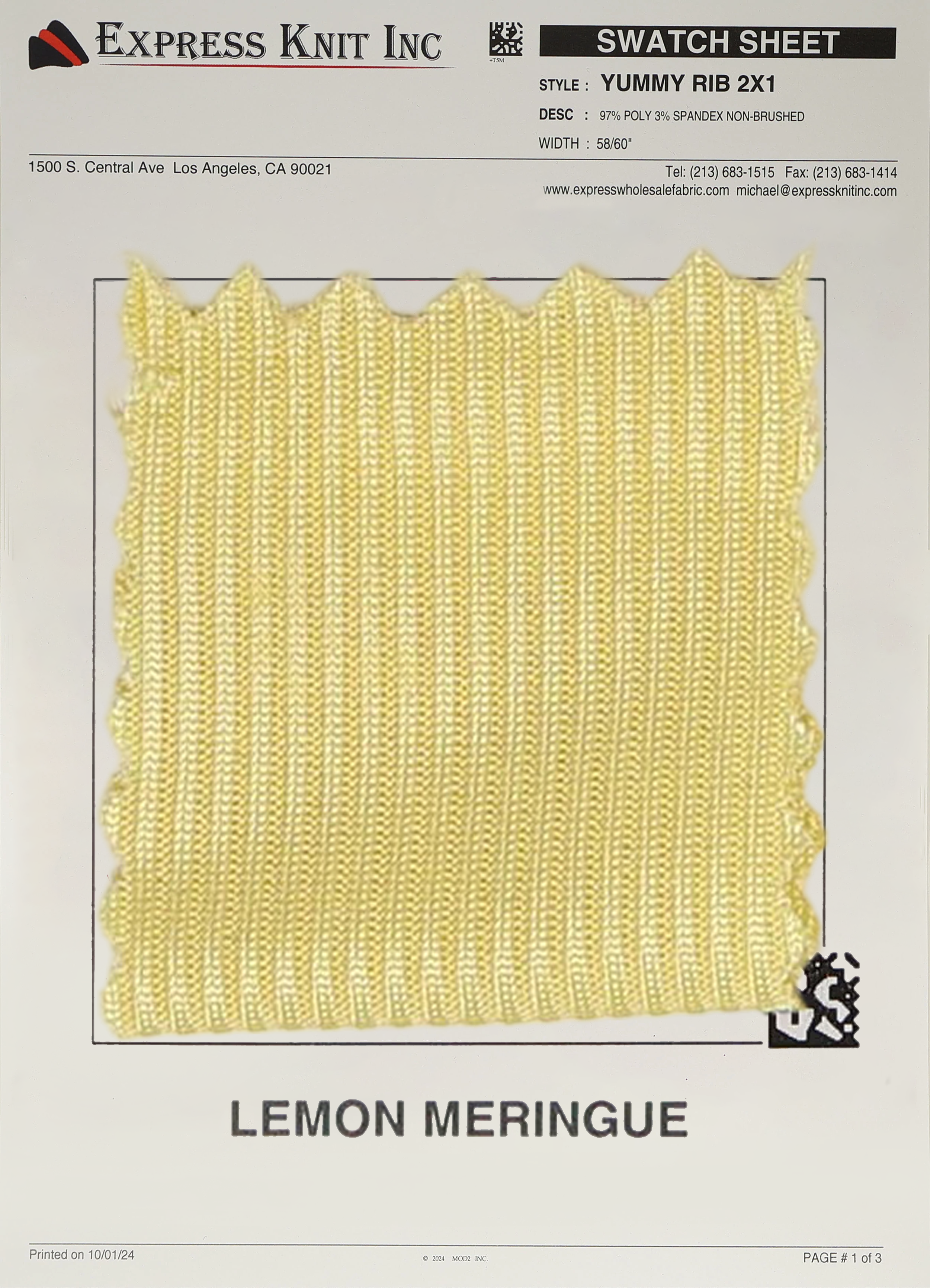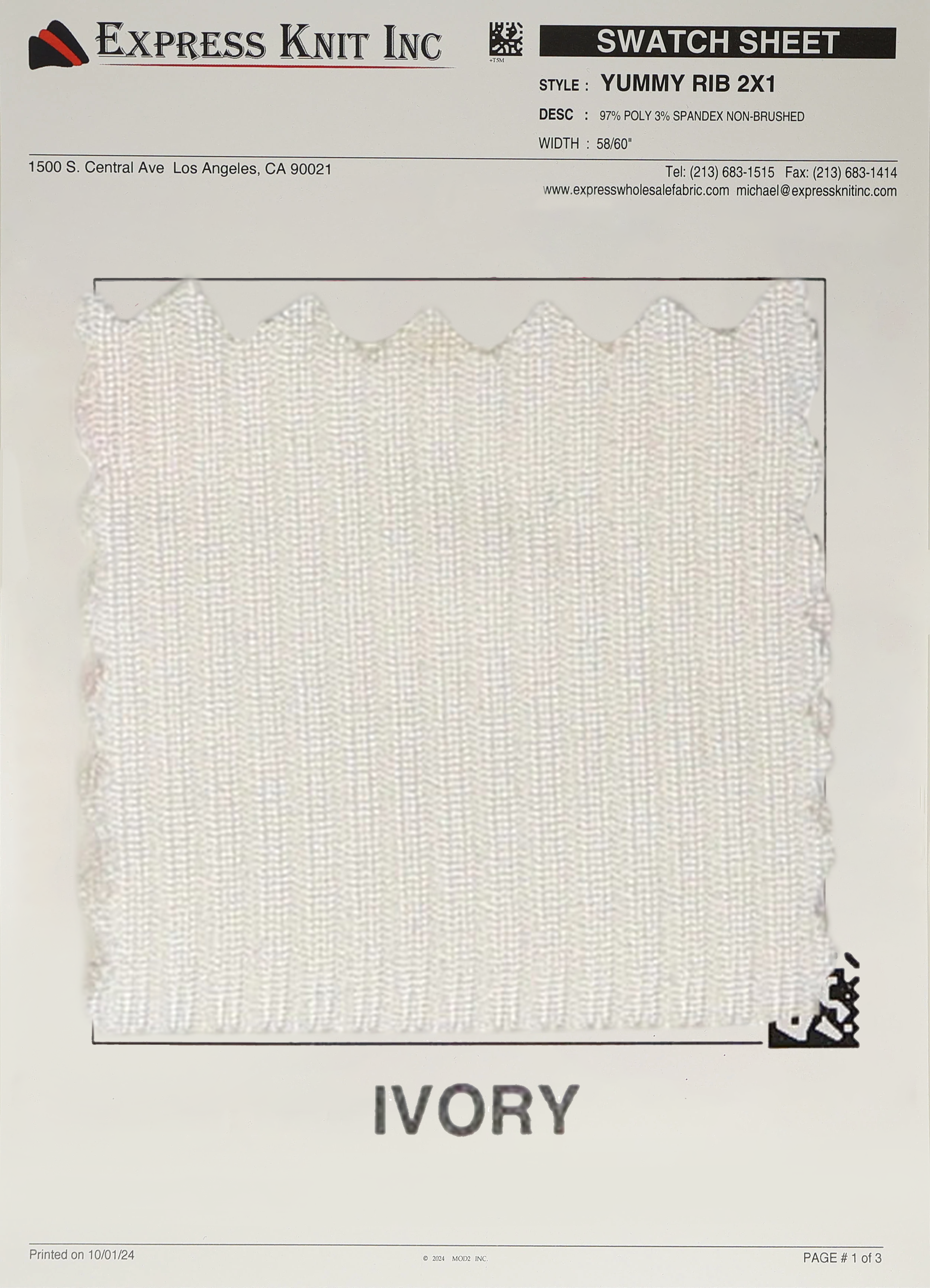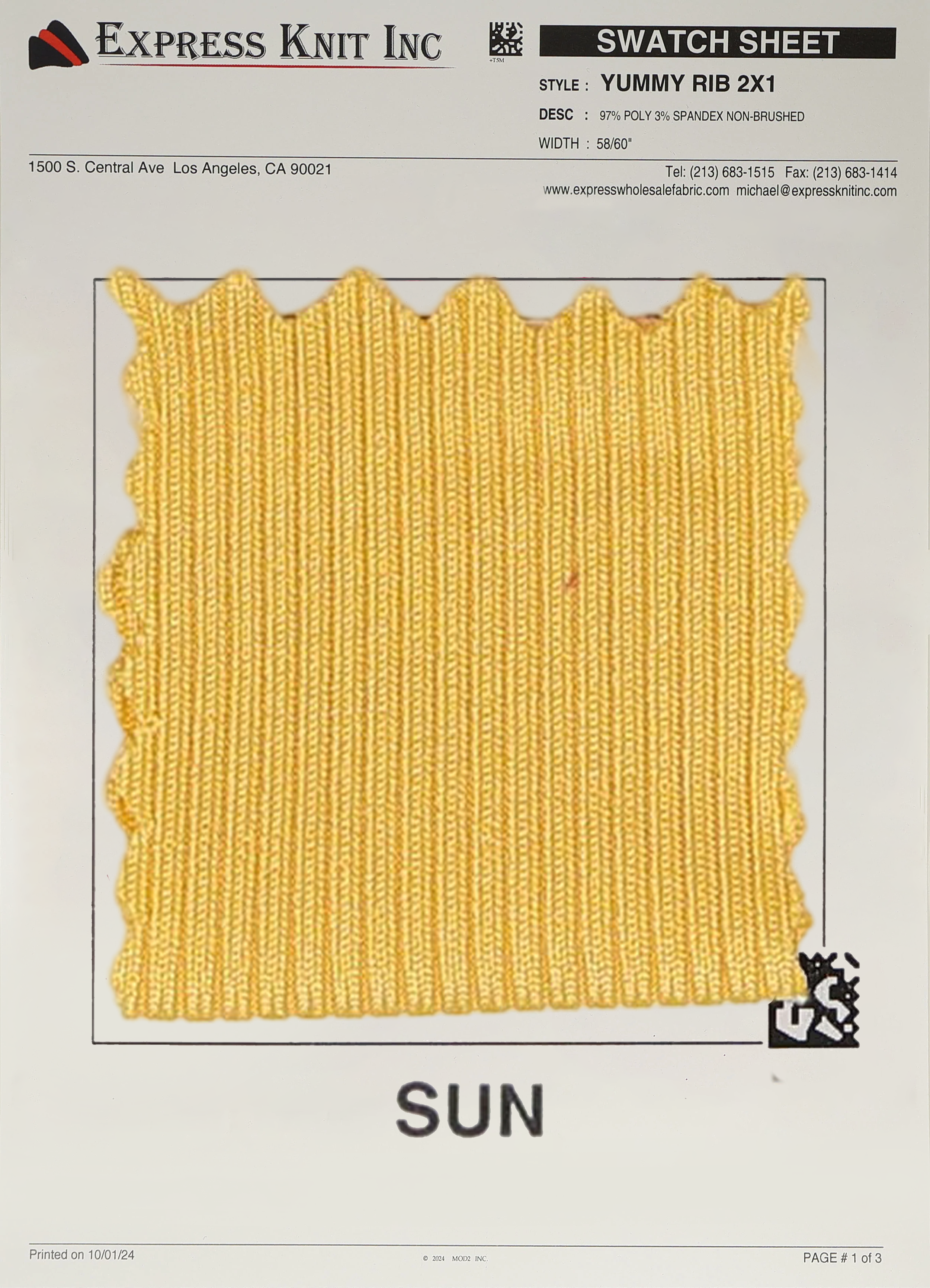 Enhance your wholesale fabric selection with our 2x1 Yummy Rib Knit Fabric, a premium choice for stylish fashion basics, cozy loungewear, and versatile casual designs. Crafted with a blend of 97% Polyester and 3% Spandex, this 200 GSM fabric is lightweight yet durable, featuring a smooth, ribbed texture with a sleek, non-brushed finish.