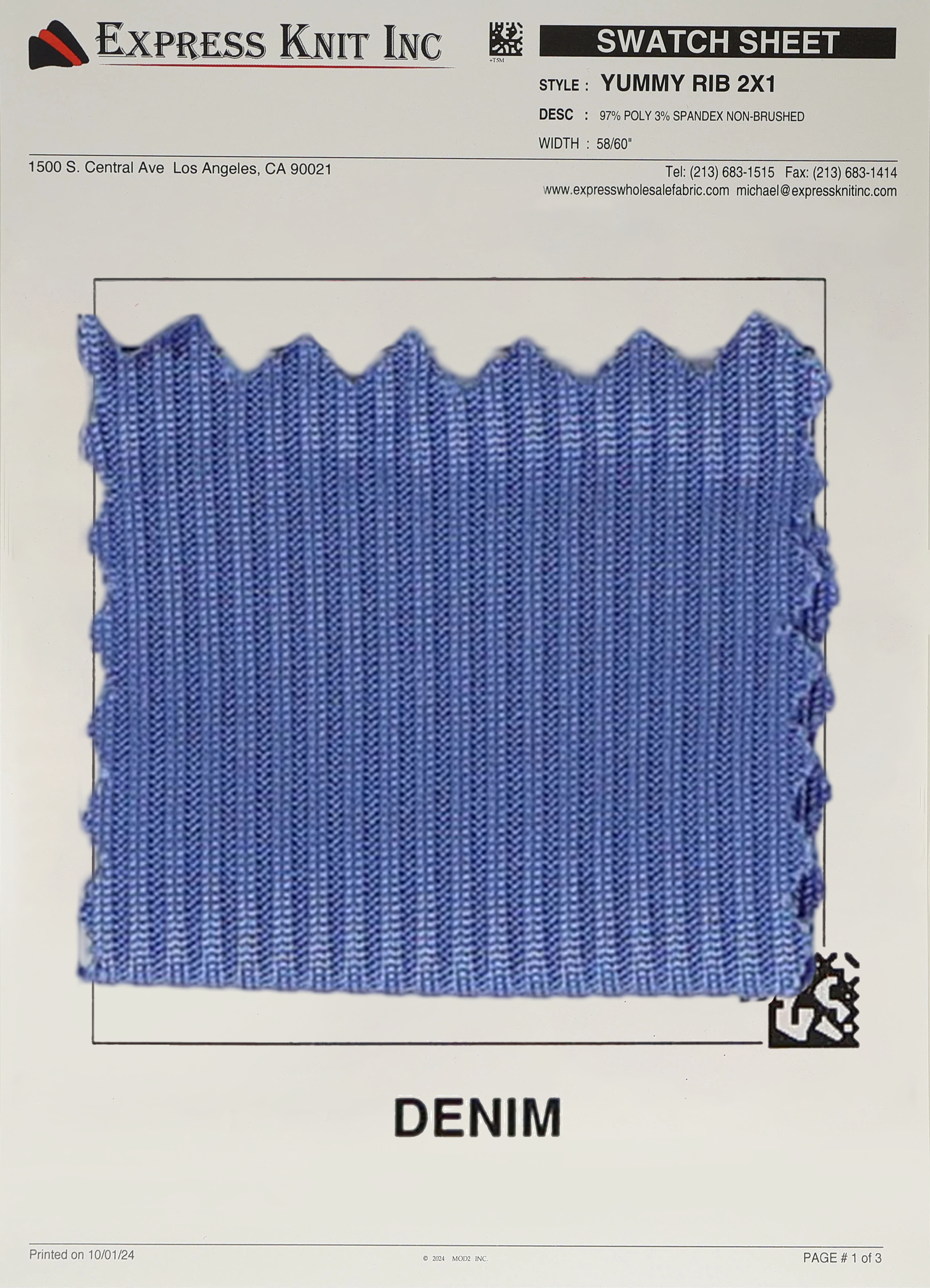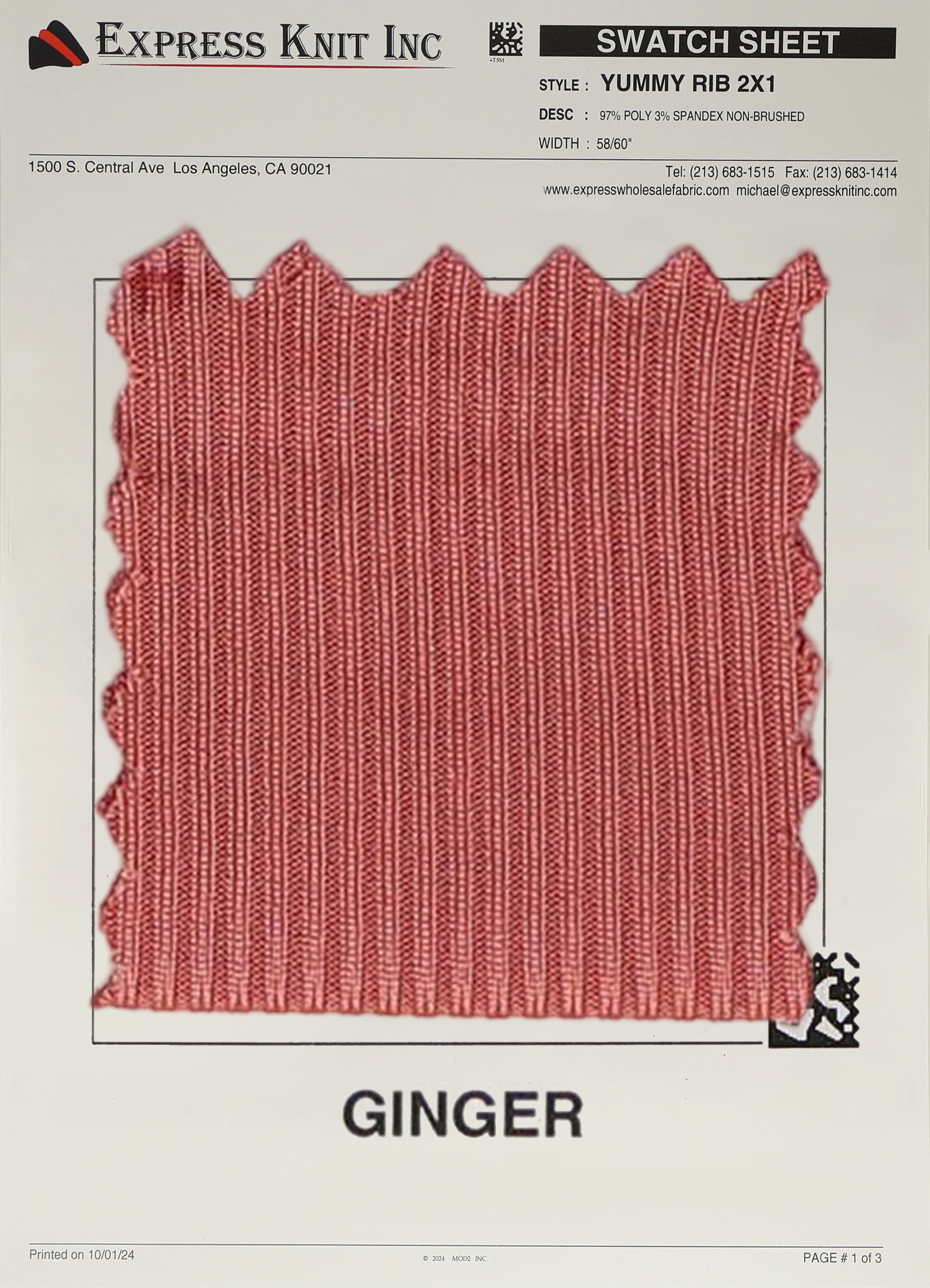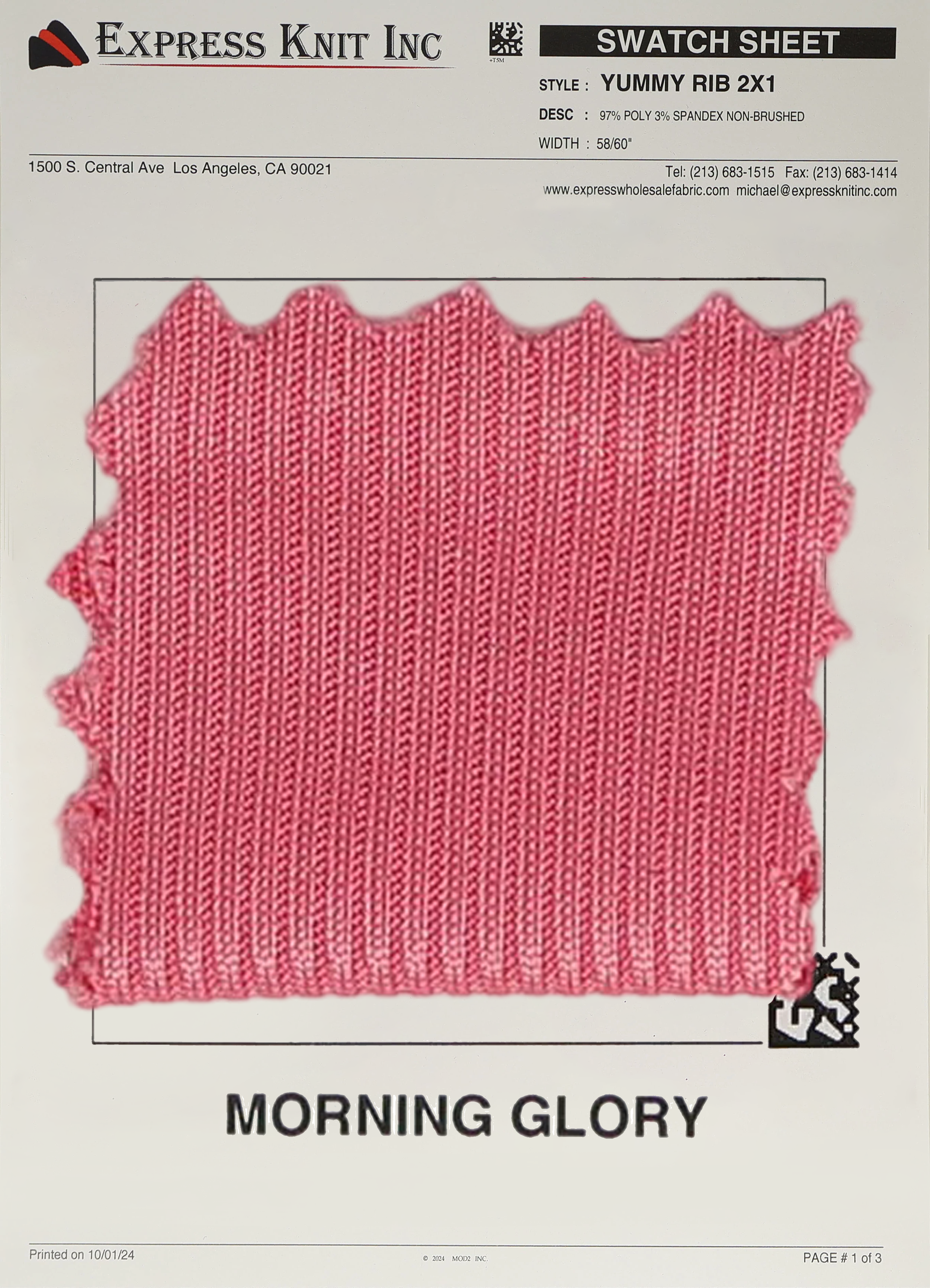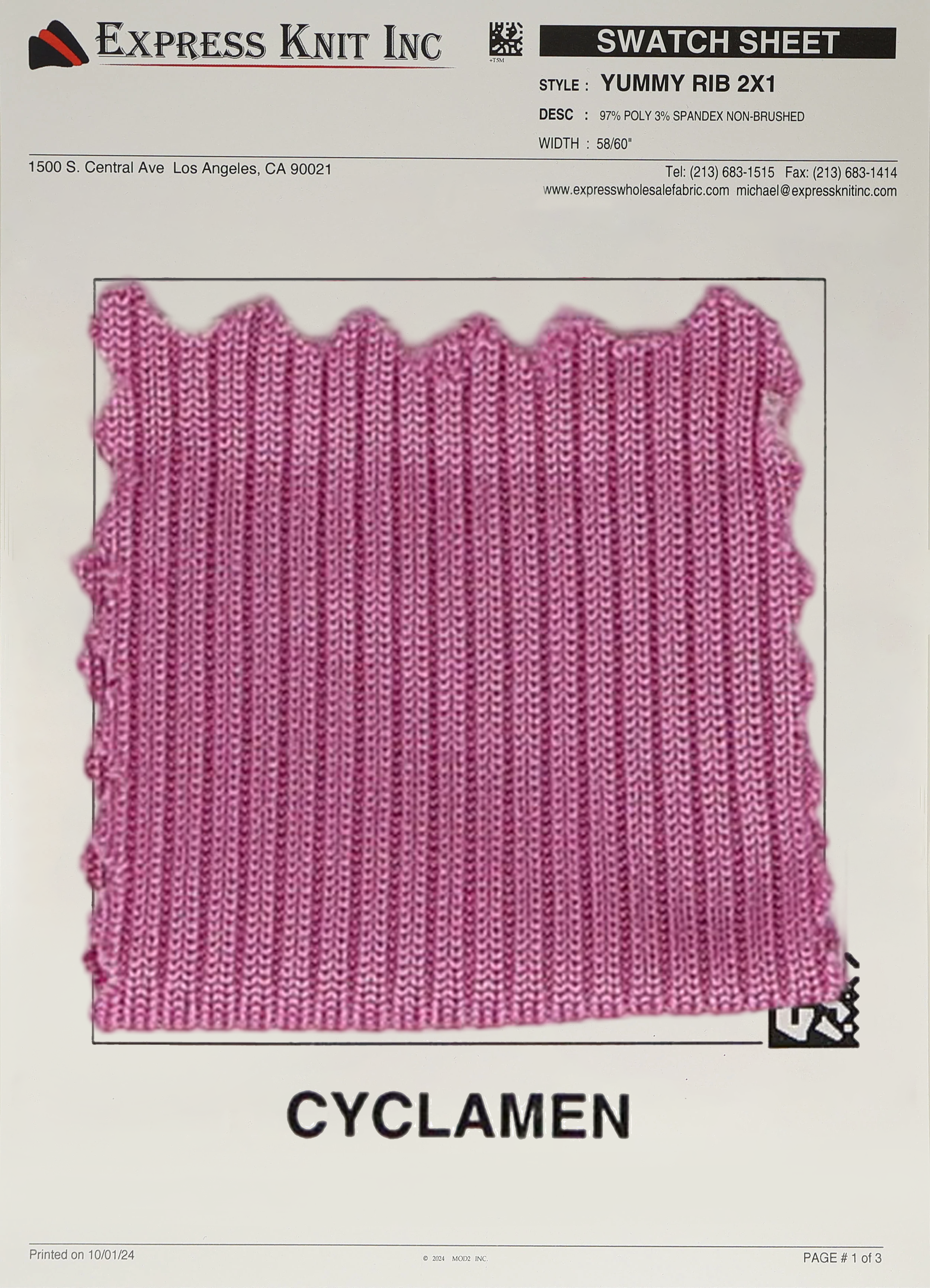 Enhance your wholesale fabric selection with our 2x1 Yummy Rib Knit Fabric, a premium choice for stylish fashion basics, cozy loungewear, and versatile casual designs. Crafted with a blend of 97% Polyester and 3% Spandex, this 200 GSM fabric is lightweight yet durable, featuring a smooth, ribbed texture with a sleek, non-brushed finish.