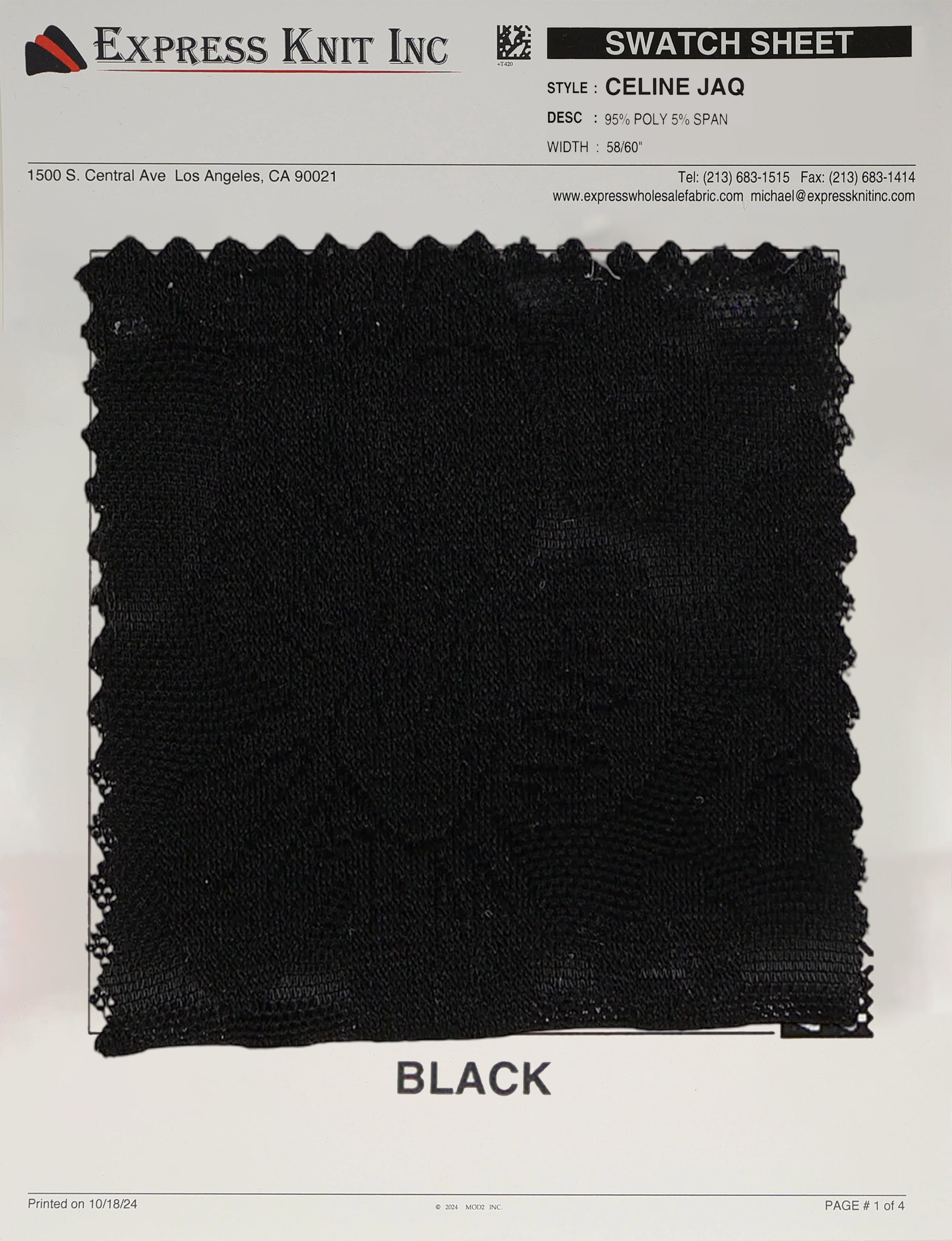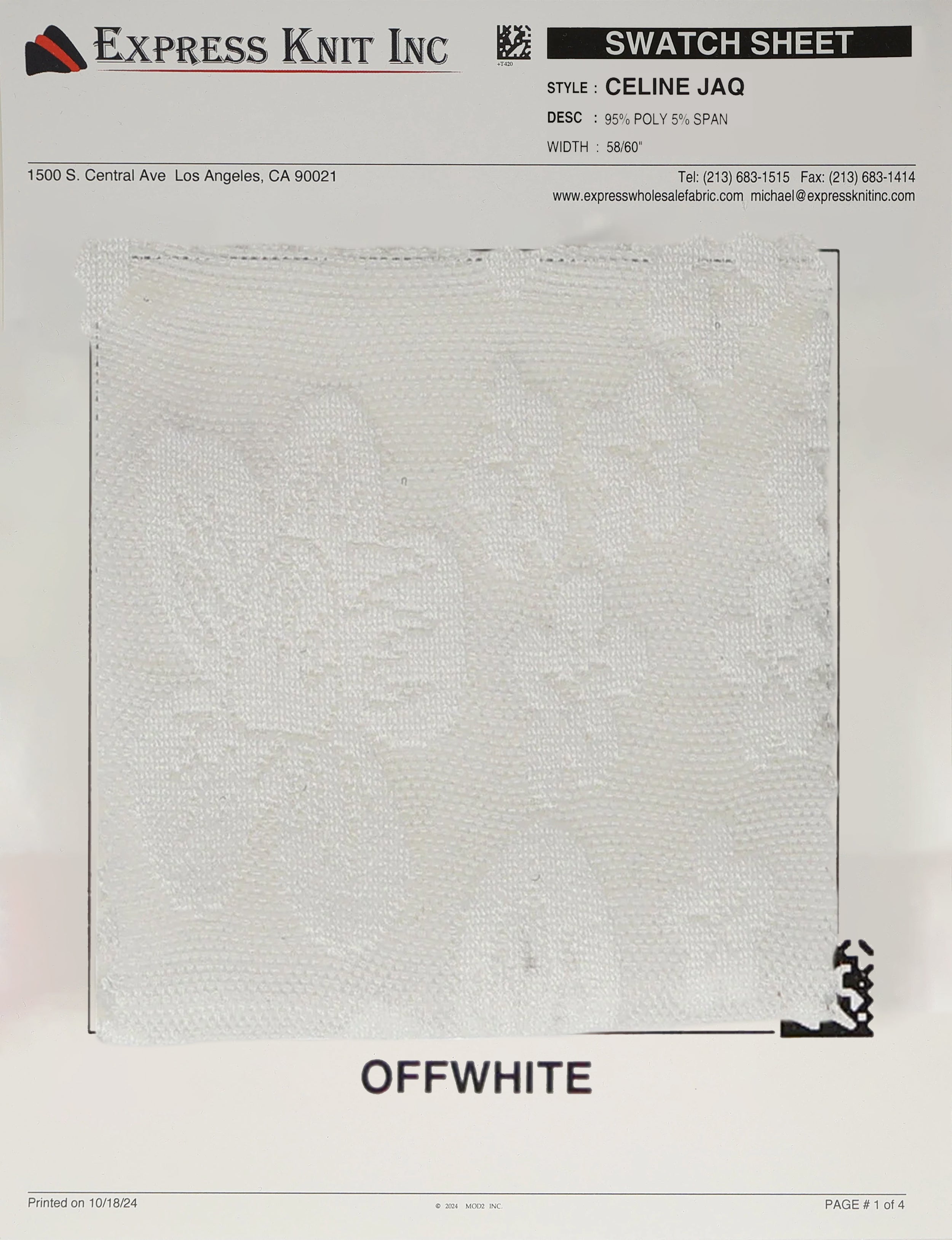 Our Celine Jacquard Floral Fabric, available at wholesale pricing, combines the elegance of an intricate floral pattern with the structure and durability of a polyester-spandex blend. This jacquard fabric offers a soft, textured surface, allowing the floral design to subtly stand out, adding depth and sophistication to any garment. The 2-way stretch ensures comfort and flexibility, making this fabric perfect for both fitted and flowing styles. The 58-60 inch width allows for efficient use in larger projects, ideal for designers and brands seeking quality jacquard with a touch of stretch.