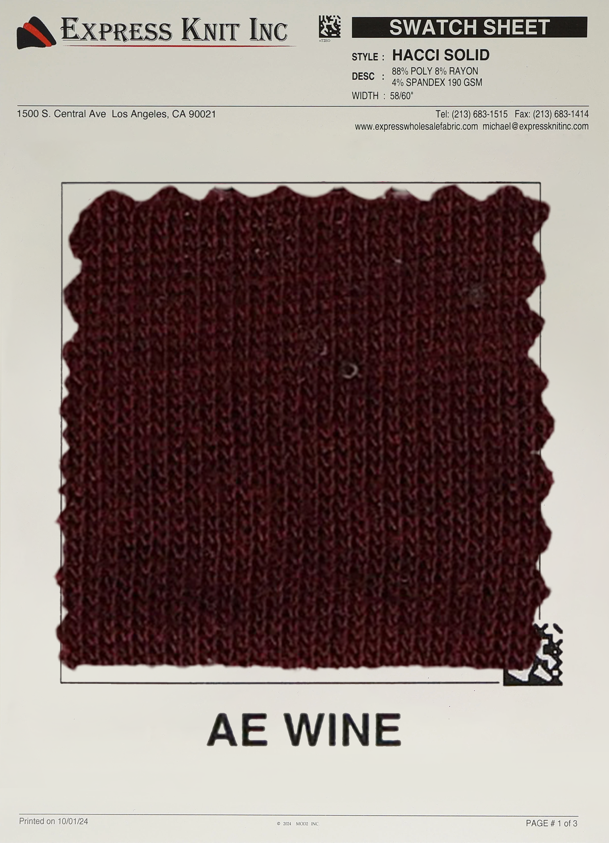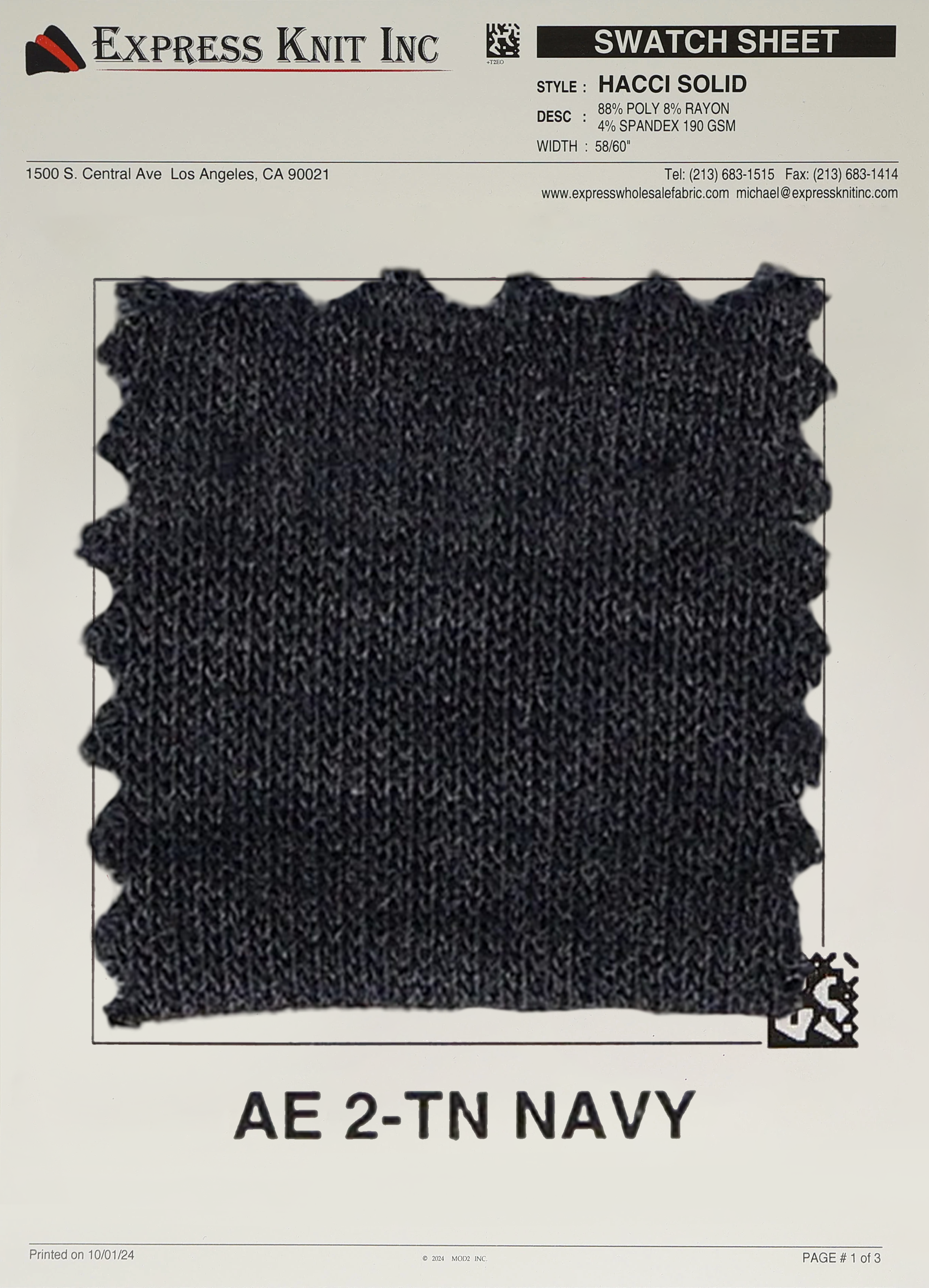 Add comfort and style to your wholesale fabric lineup with our Hacci Solid Fabric, available in a wide range of colors such as Ivory, H. Grey, Oatmeal, Rose, Peach, Mint, Denim, Coral, Ruby, Yam Mauve, Ash Cappuccino, Olive, Yam Mustard, Dark Teal, Burgundy, Brown, Coco, Plum, Hunter Green, AE Dark Red, AE Wine, Ash Tobacco, AE 2-Tone Navy, 2-Tone Rust, 2-Tone Charcoal, and Black. This premium fabric blend of 86% polyester, 8% rayon, and 4% spandex offers a soft, stretchy, and durable material with a 2-way stretch. With a mid-weight 190 GSM and a generous 58/60-inch width, this fabric is ideal for crafting cozy, everyday garments that retain their shape and feel great on the skin.