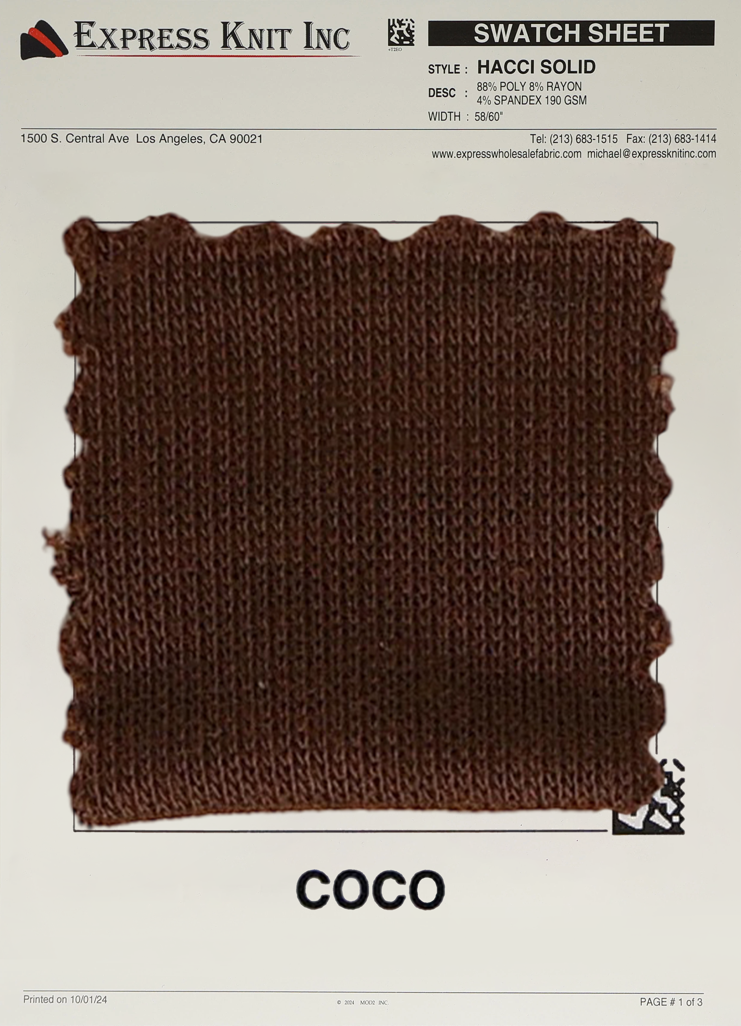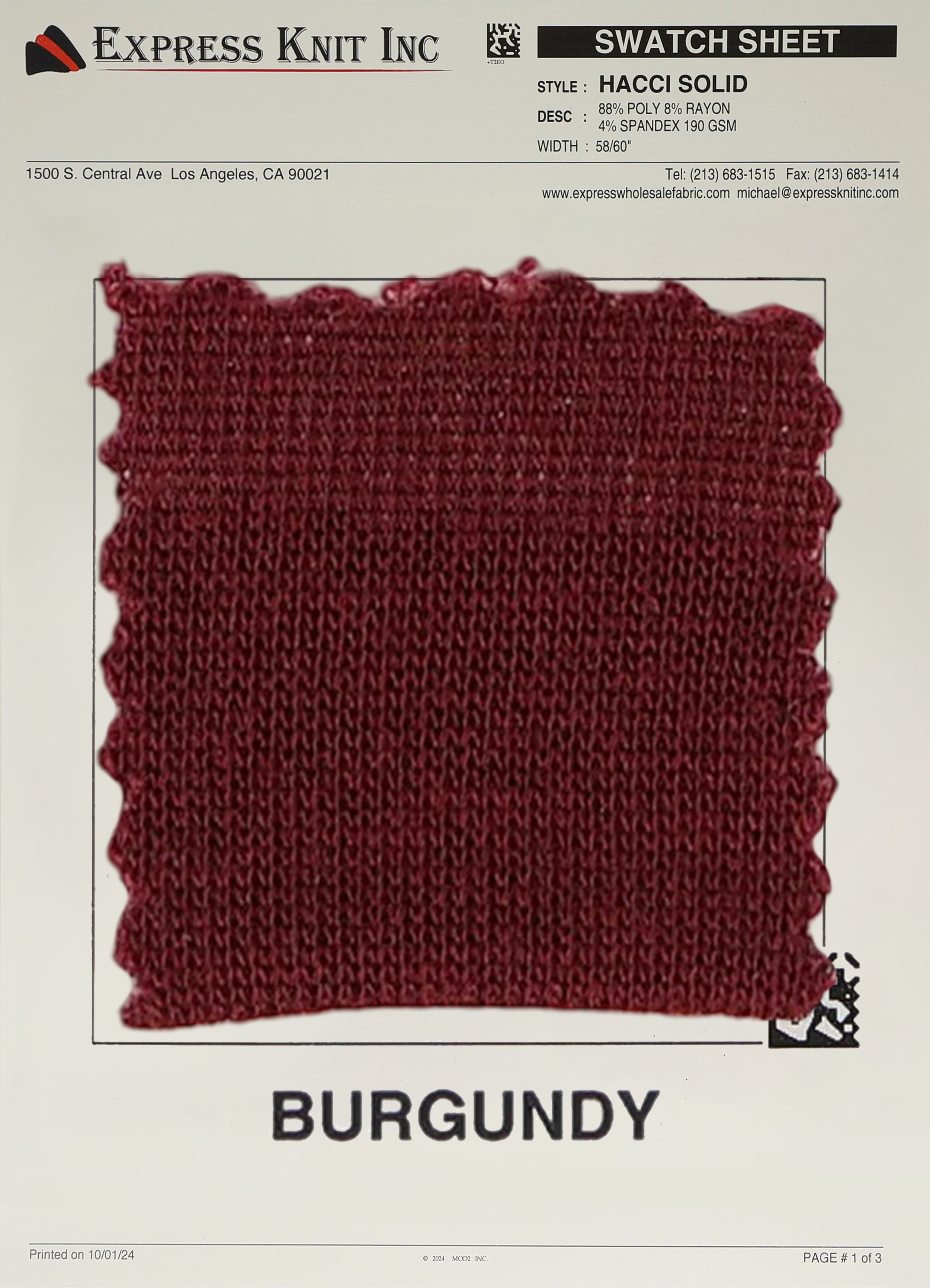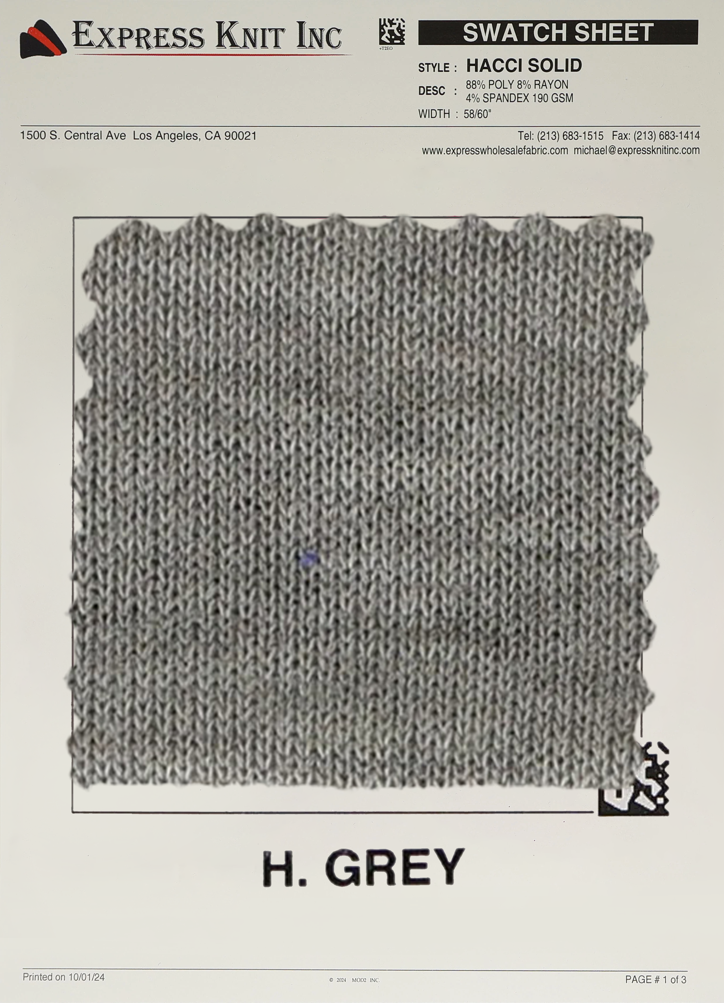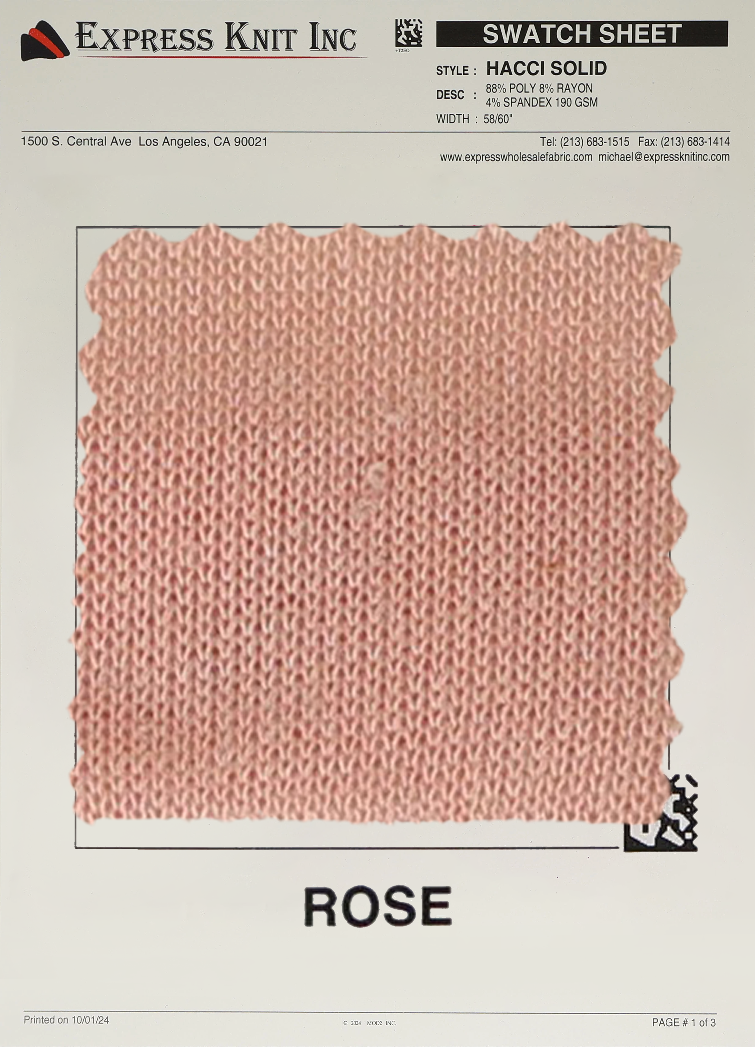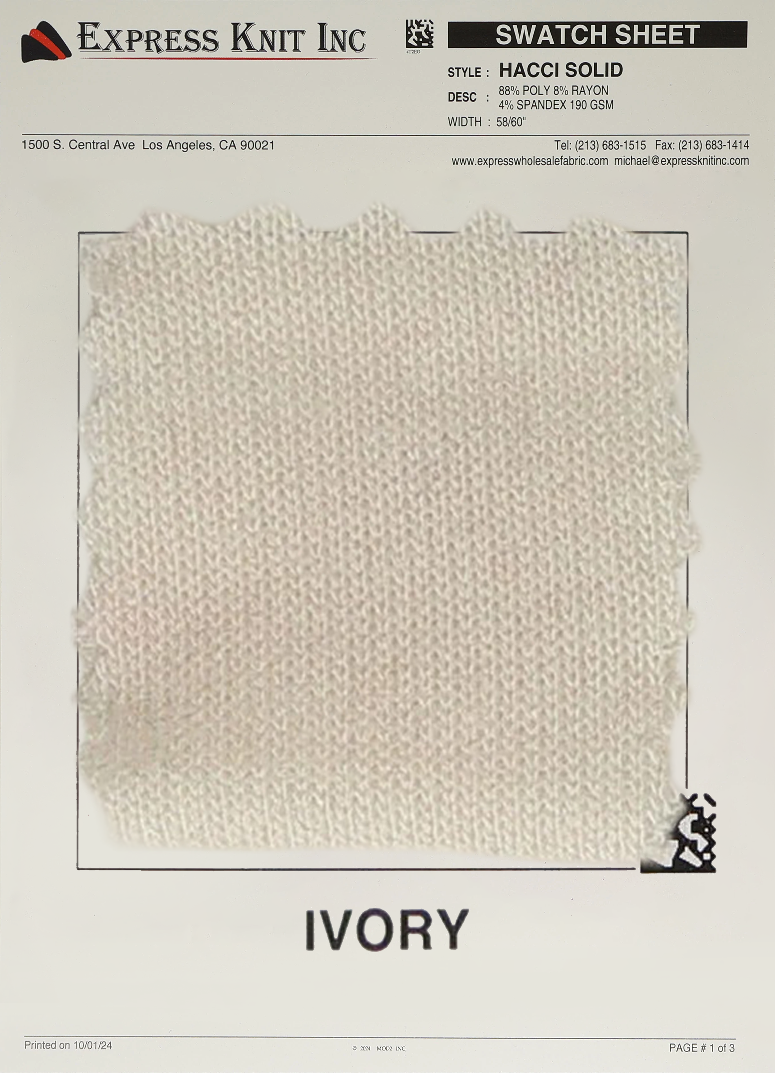 Stock up on Hacci Solid Fabric for your wholesale collection and offer your customers a go-to fabric for comfortable, stylish basics. Contact us today for wholesale pricing and bulk order inquiries to add this versatile, high-quality fabric to your inventory.