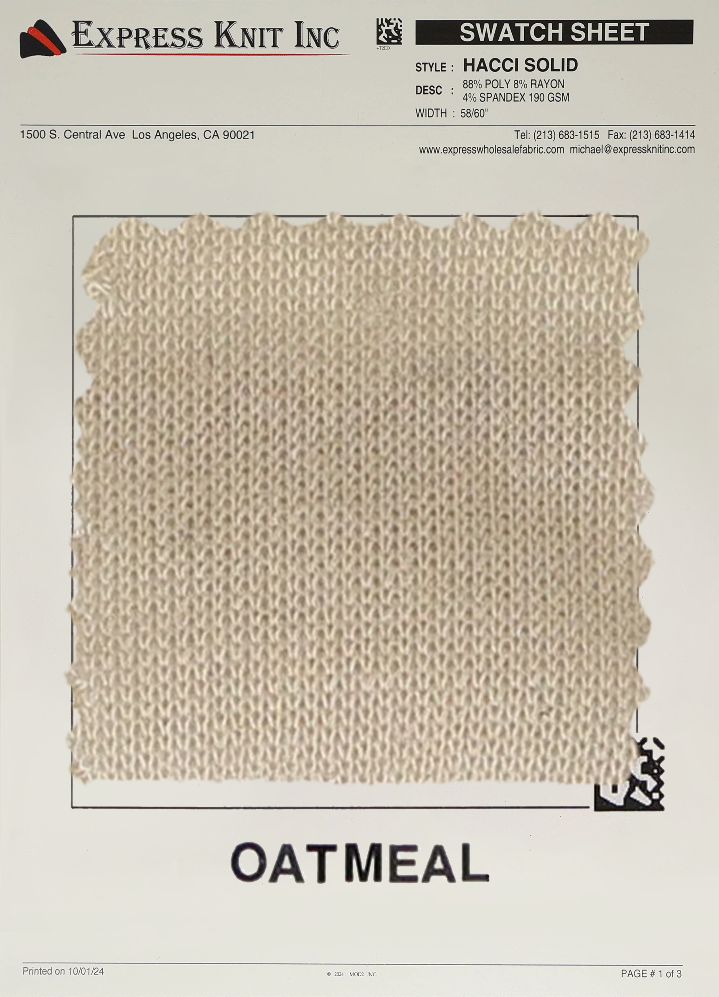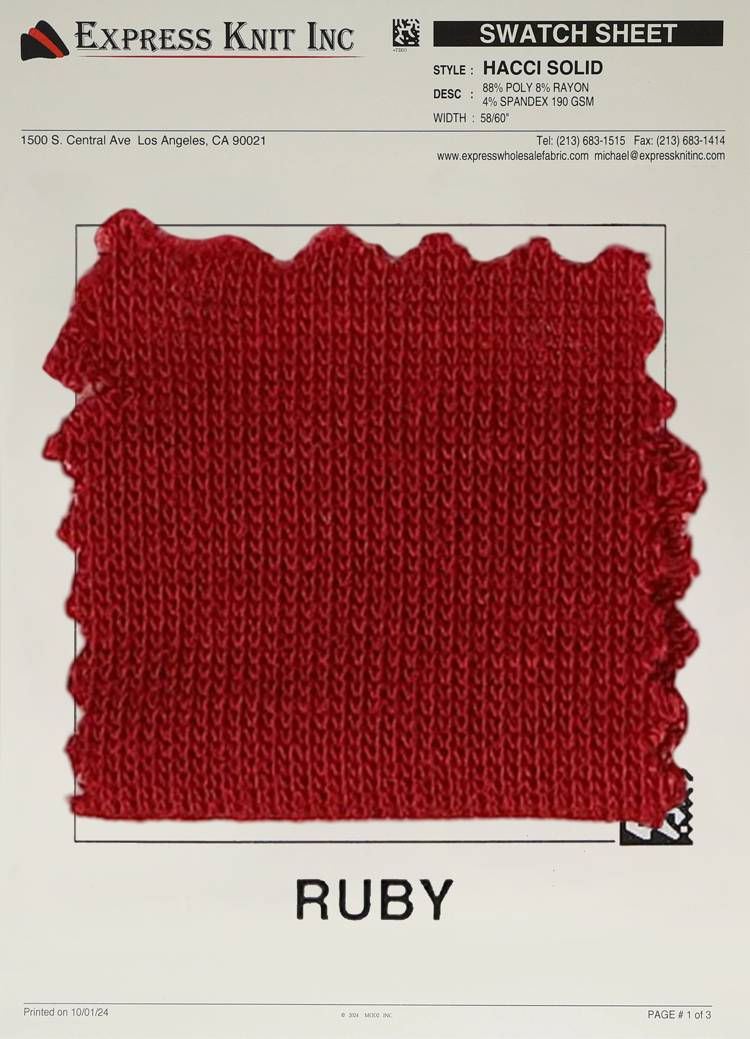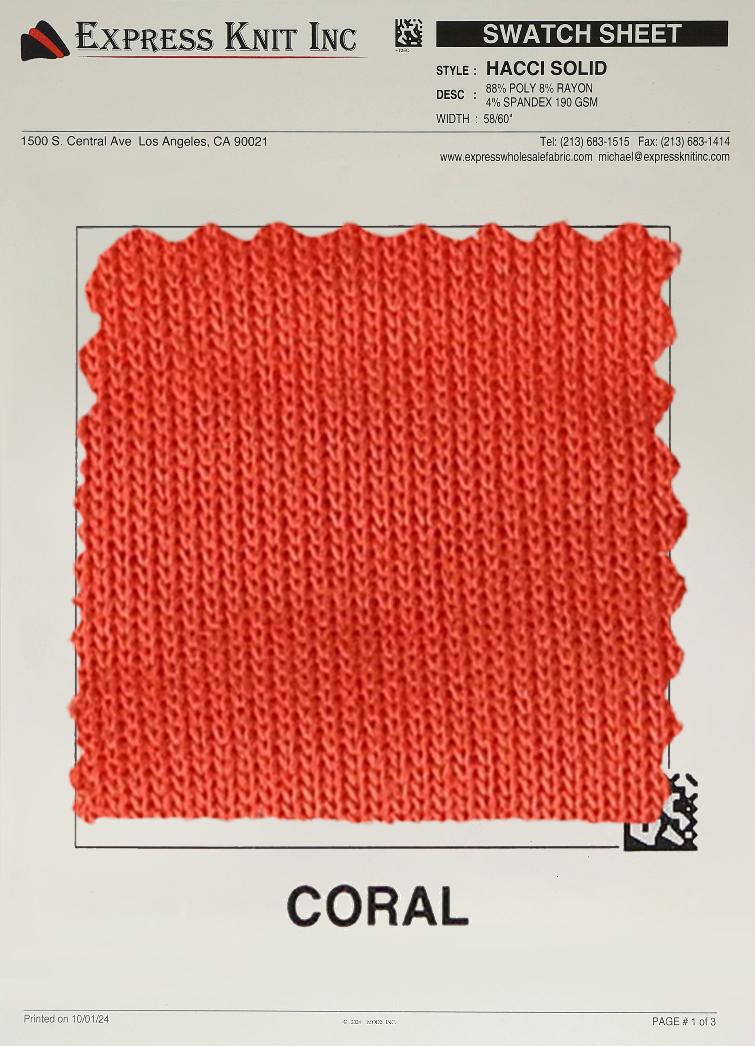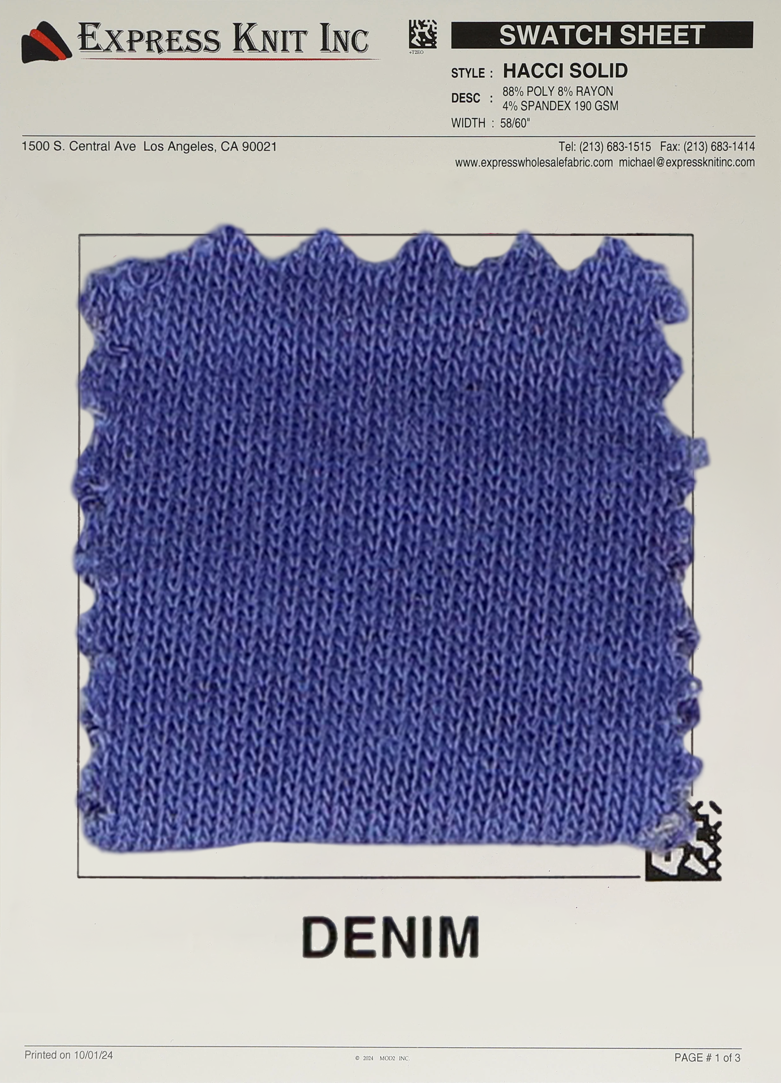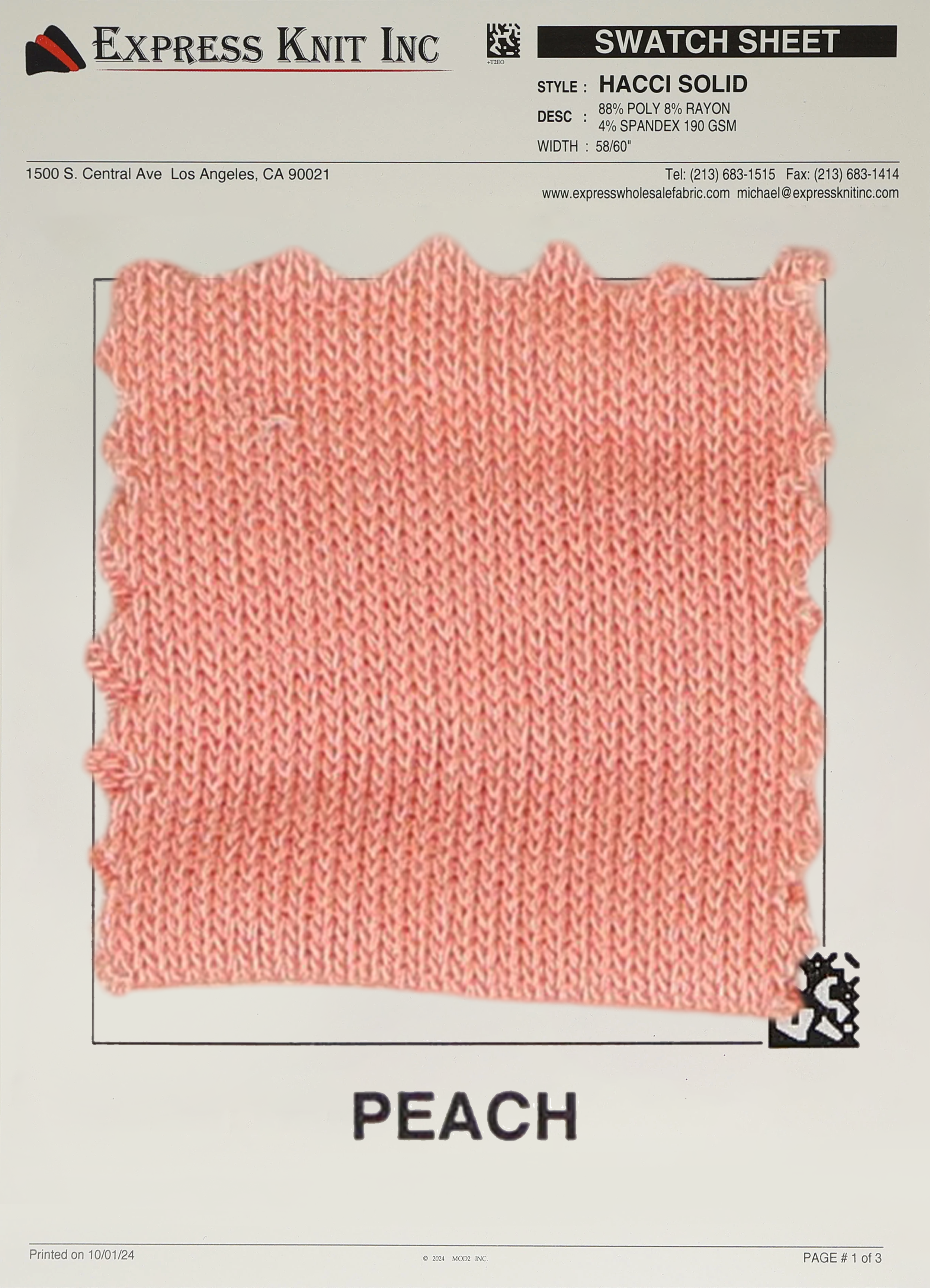 Stock up on Hacci Solid Fabric for your wholesale collection and offer your customers a go-to fabric for comfortable, stylish basics. Contact us today for wholesale pricing and bulk order inquiries to add this versatile, high-quality fabric to your inventory.