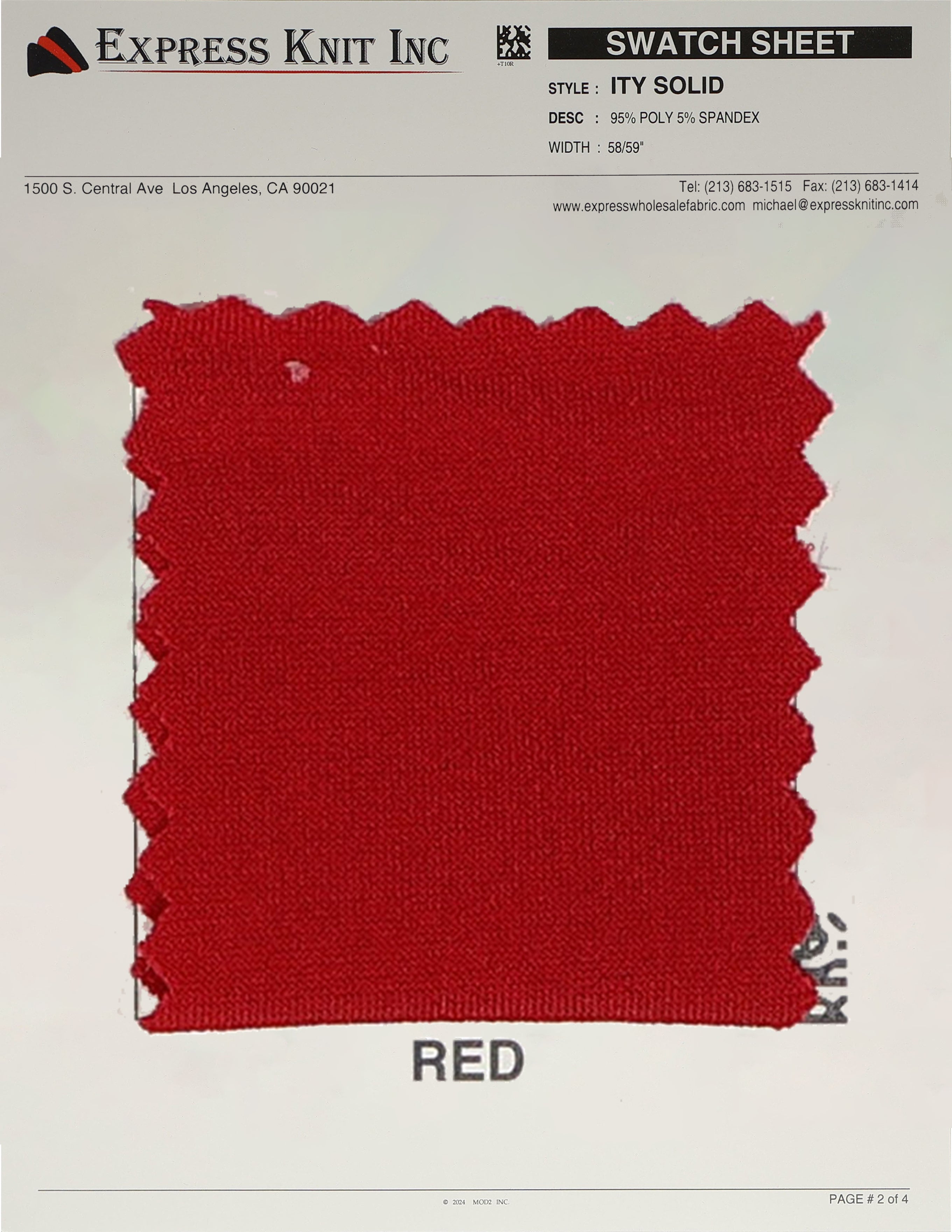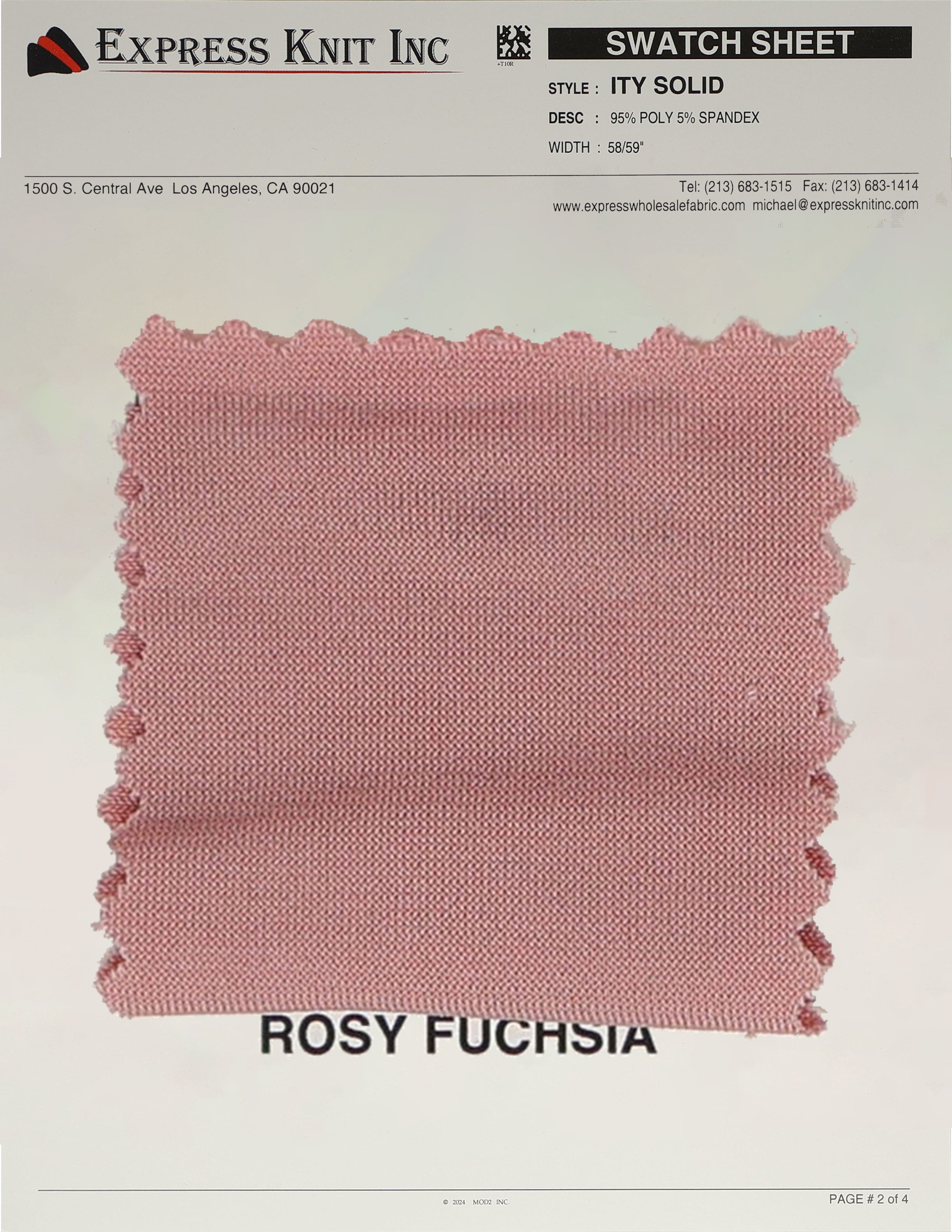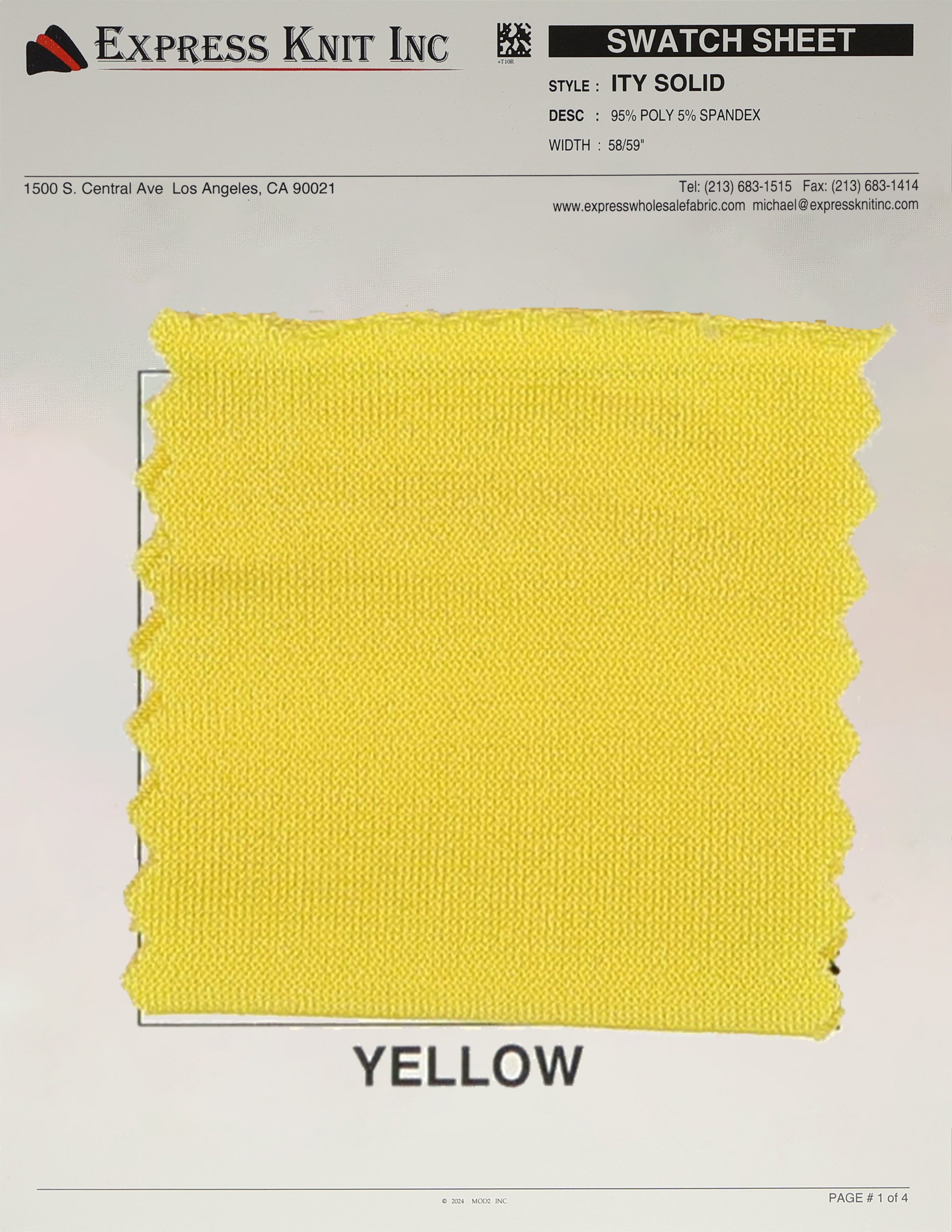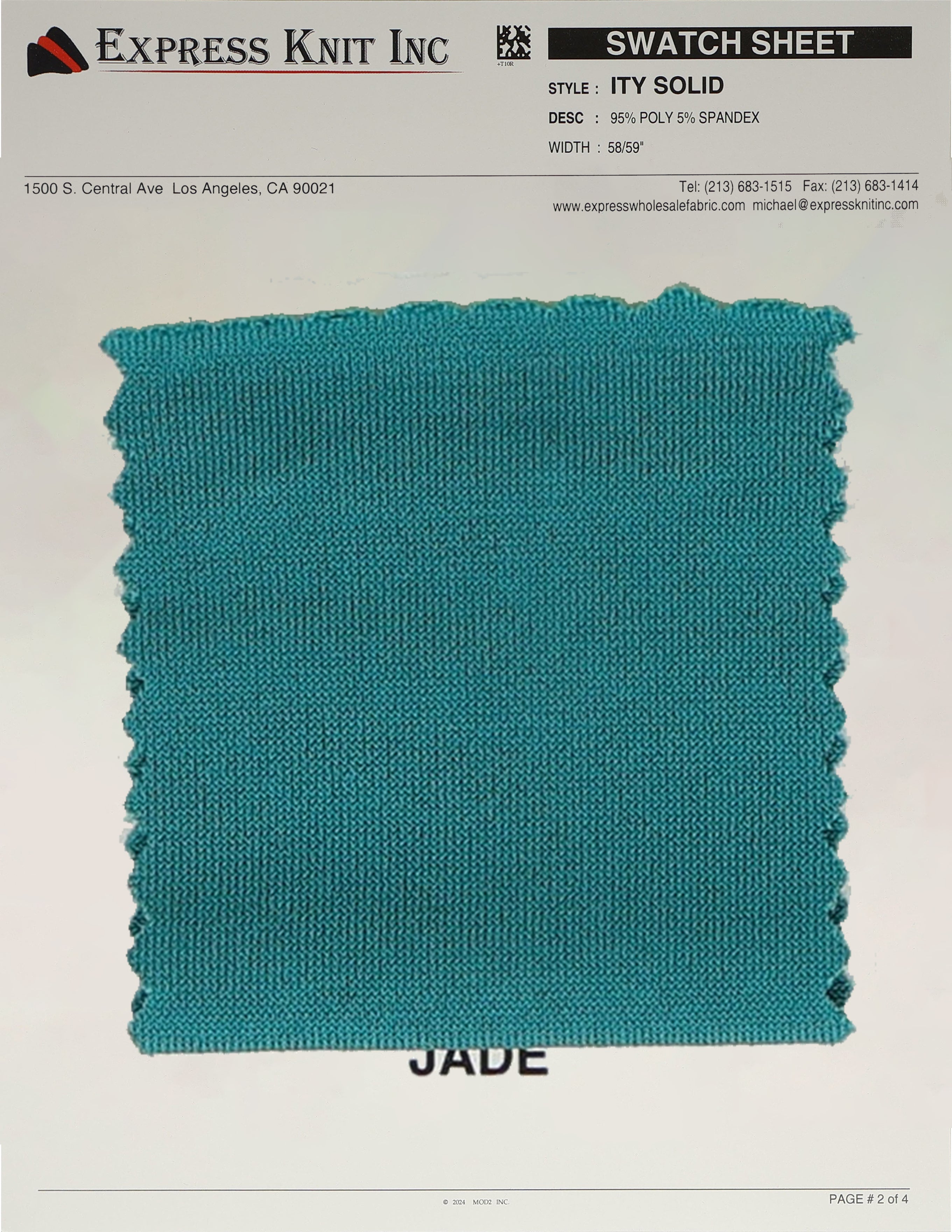 Our ITY Solid Fabric, available at wholesale prices, is a luxurious stretch knit designed for versatility and style. Made with 95% polyester and 5% spandex, it offers a soft, silky surface and fluid drape, perfect for creating flowing, elegant garments. With its lightweight yet durable structure, this fabric is ideal for layering, loungewear, professional attire, and more. The 2-way stretch adds comfort and flexibility, ensuring a perfect fit for various designs. Its 58-59 inch width makes it ideal for efficient cutting and bulk projects.