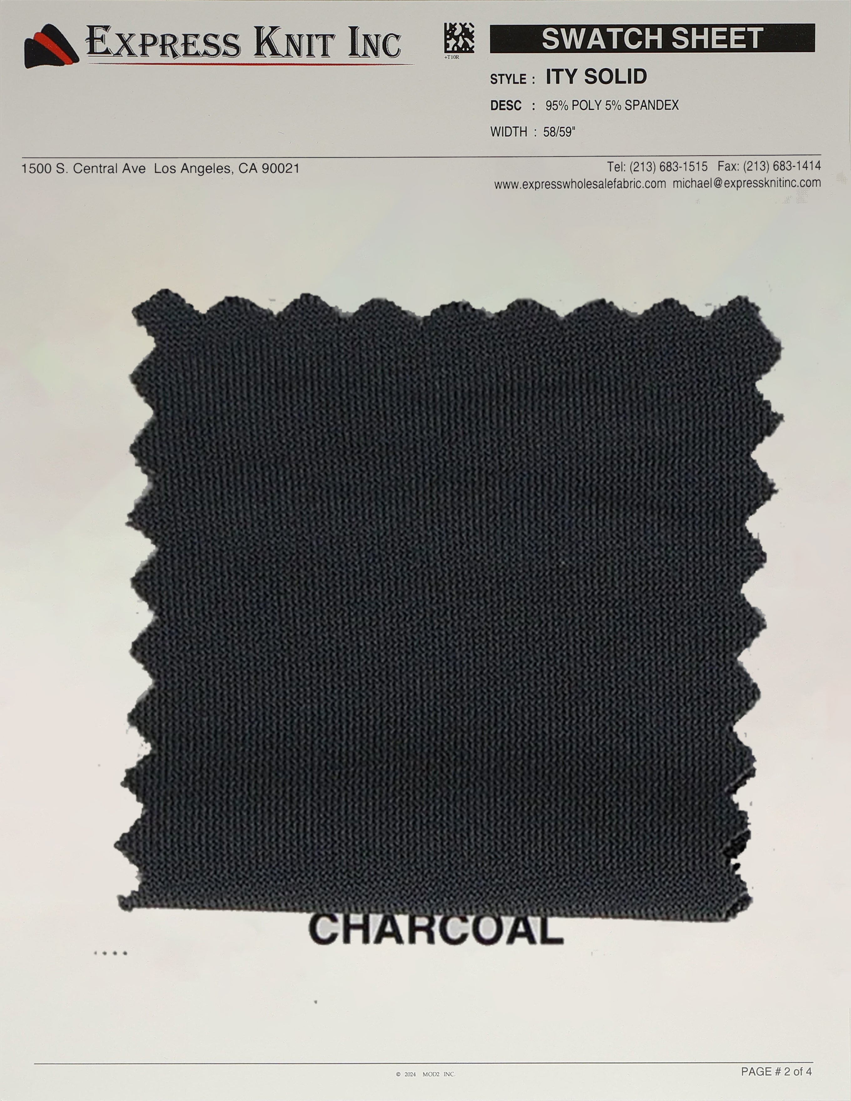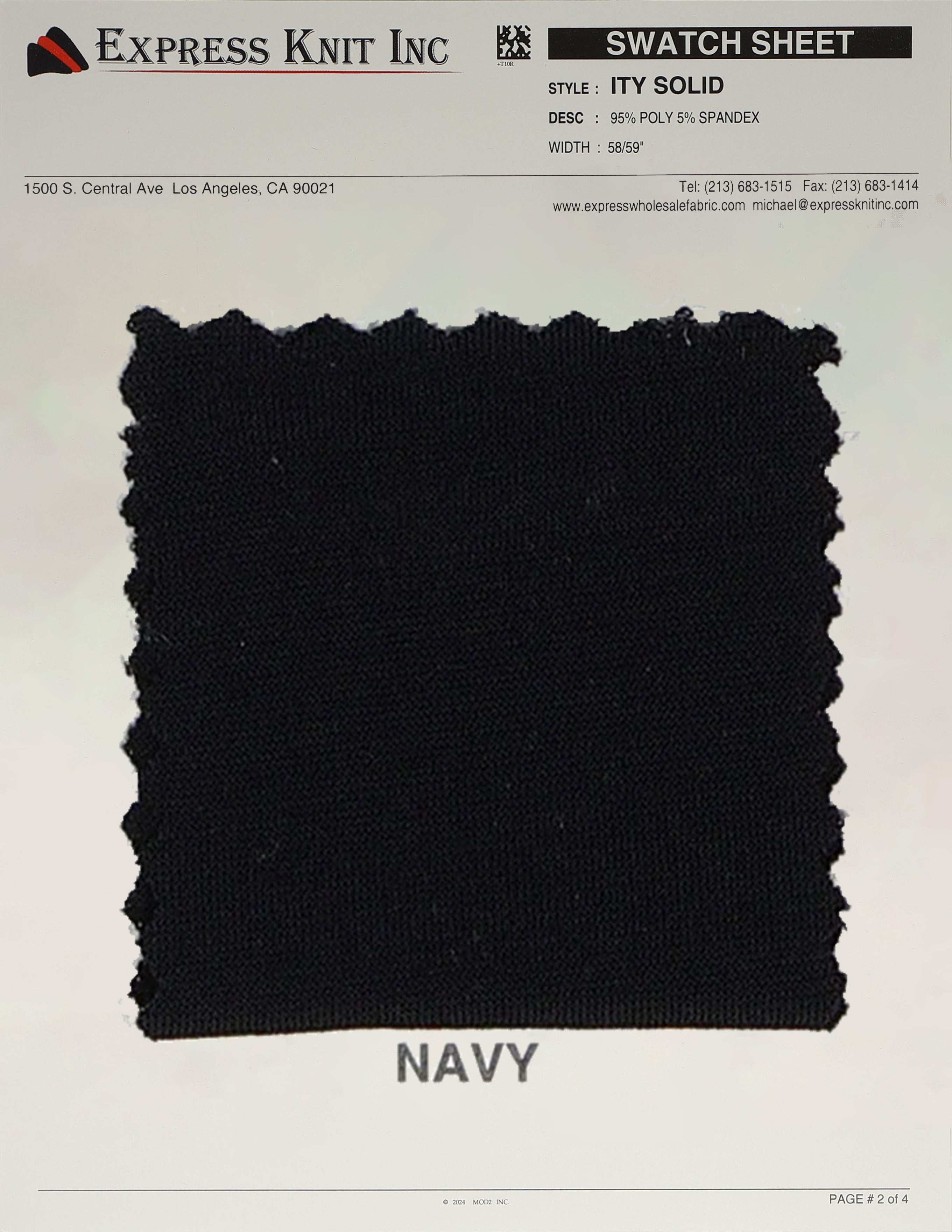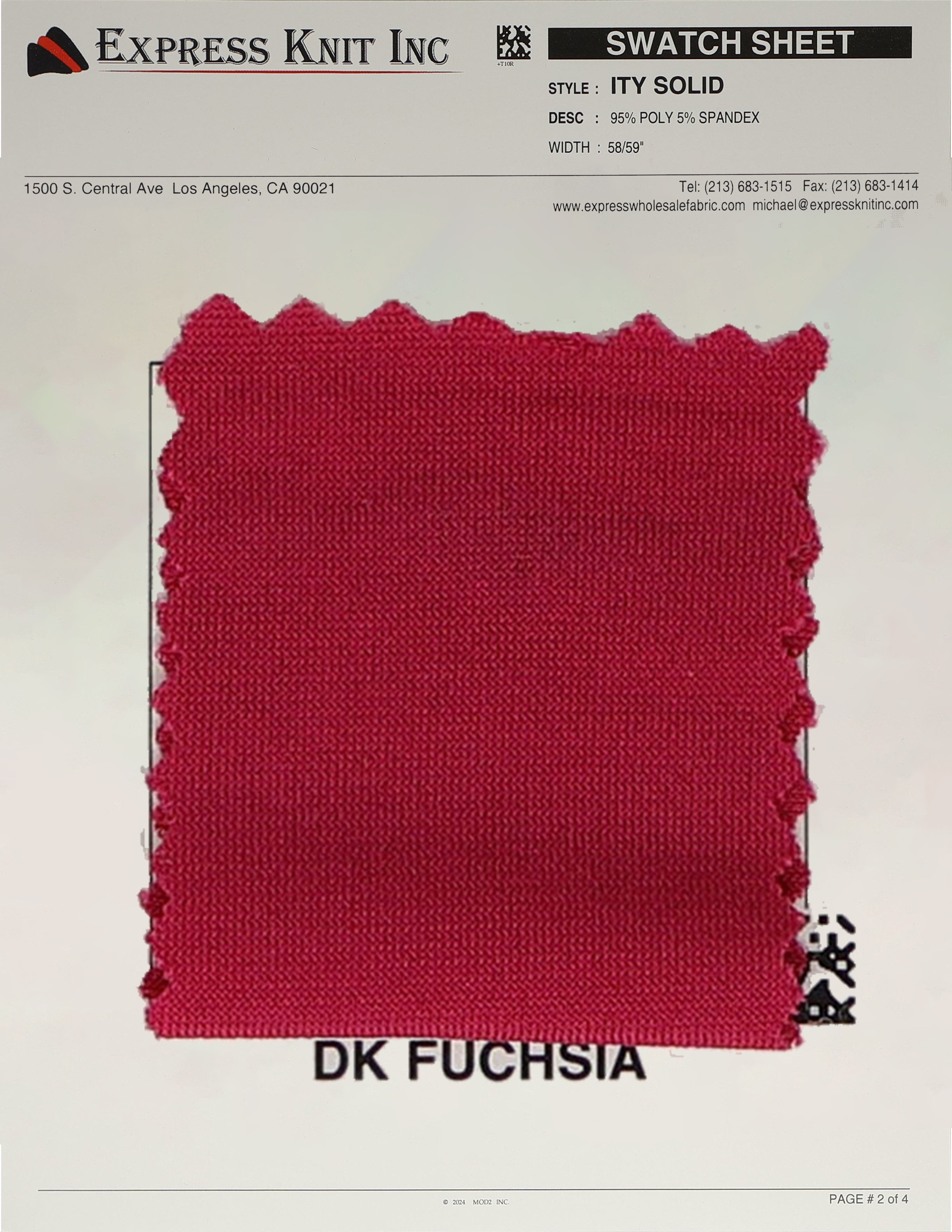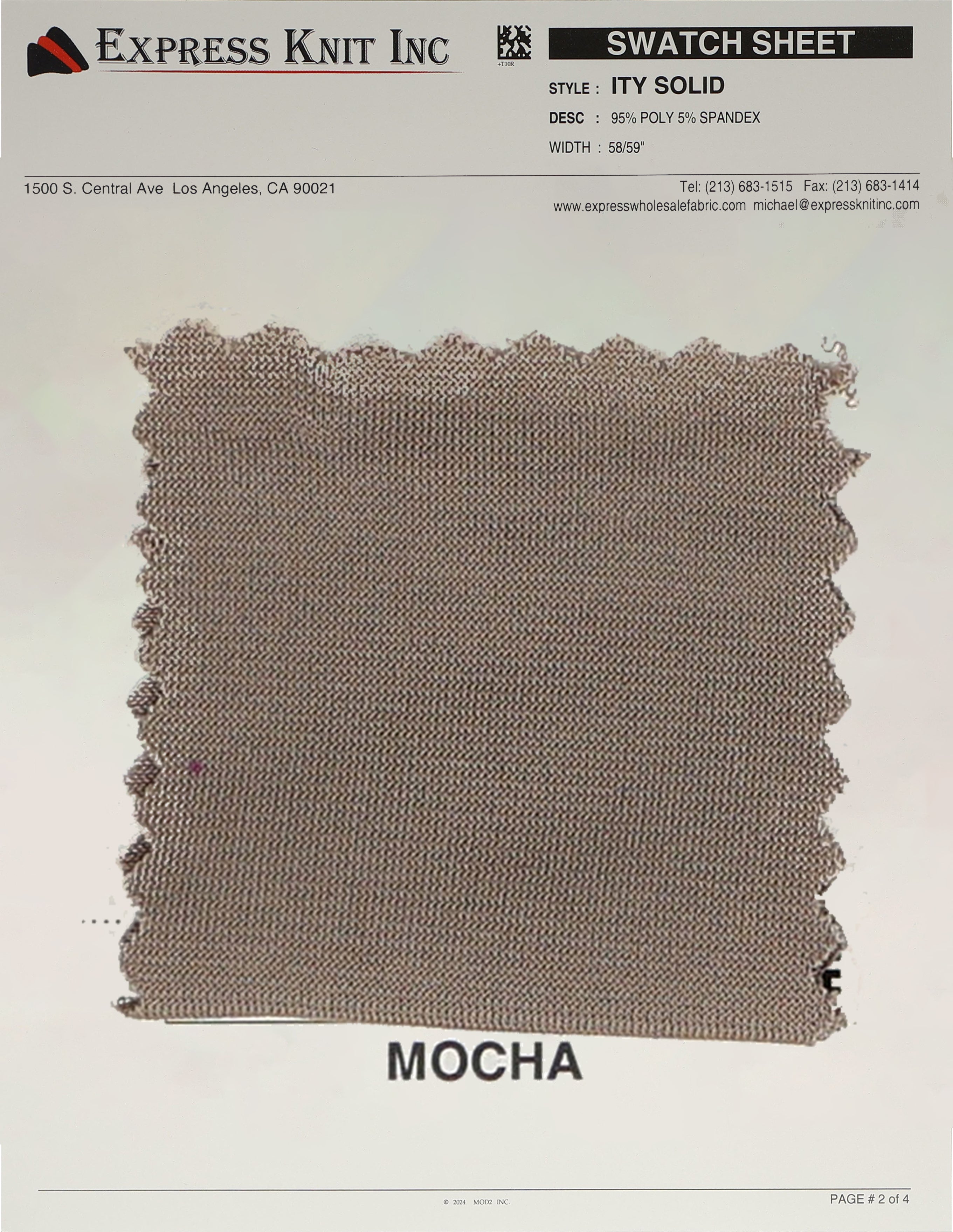 Our ITY Solid Fabric, available at wholesale prices, is a luxurious stretch knit designed for versatility and style. Made with 95% polyester and 5% spandex, it offers a soft, silky surface and fluid drape, perfect for creating flowing, elegant garments. With its lightweight yet durable structure, this fabric is ideal for layering, loungewear, professional attire, and more. The 2-way stretch adds comfort and flexibility, ensuring a perfect fit for various designs. Its 58-59 inch width makes it ideal for efficient cutting and bulk projects.