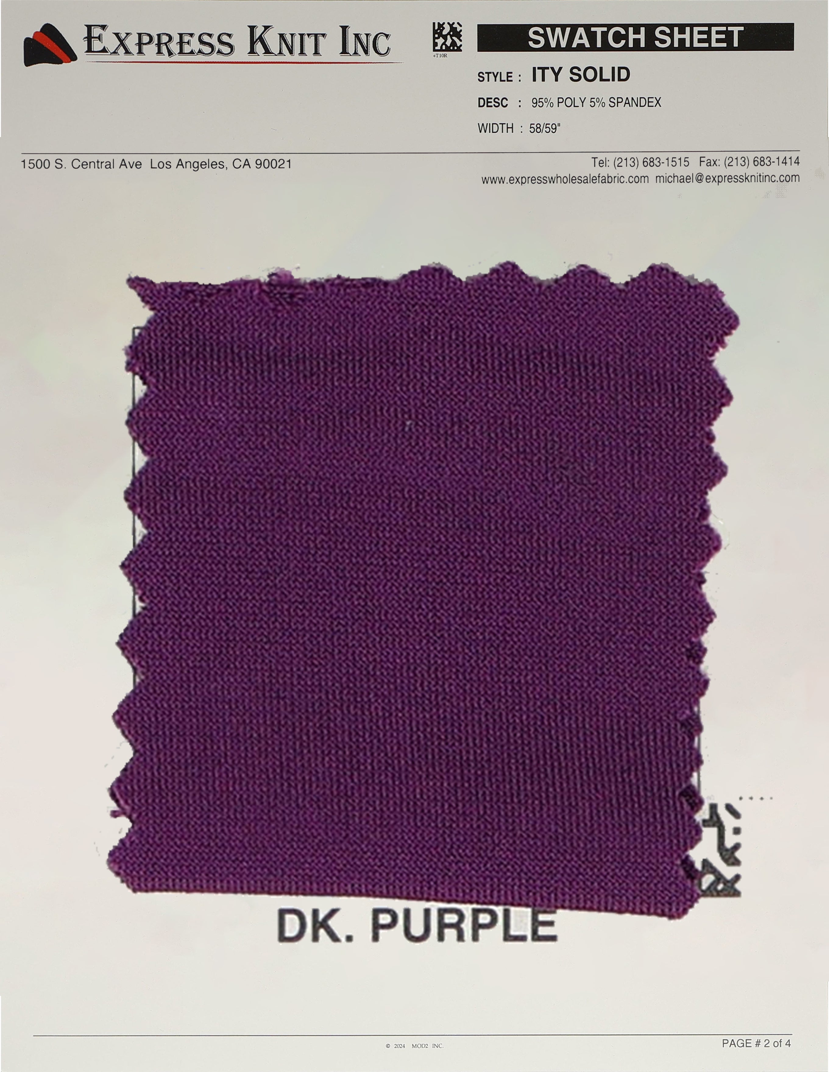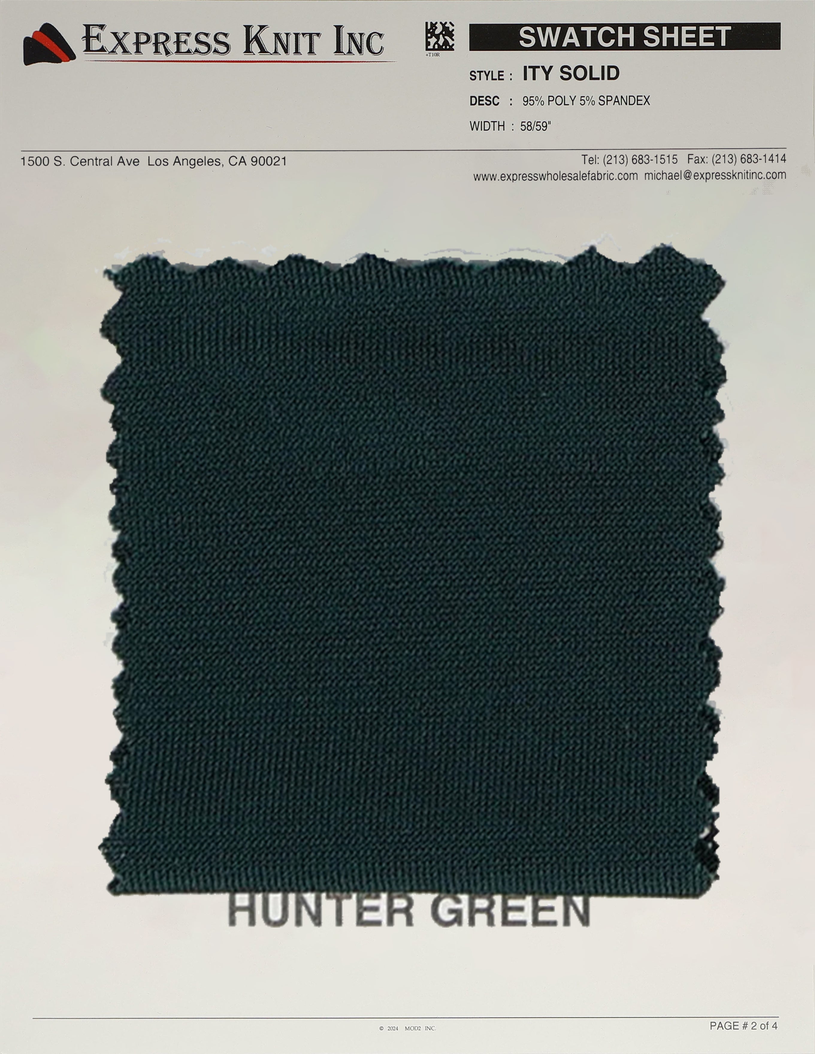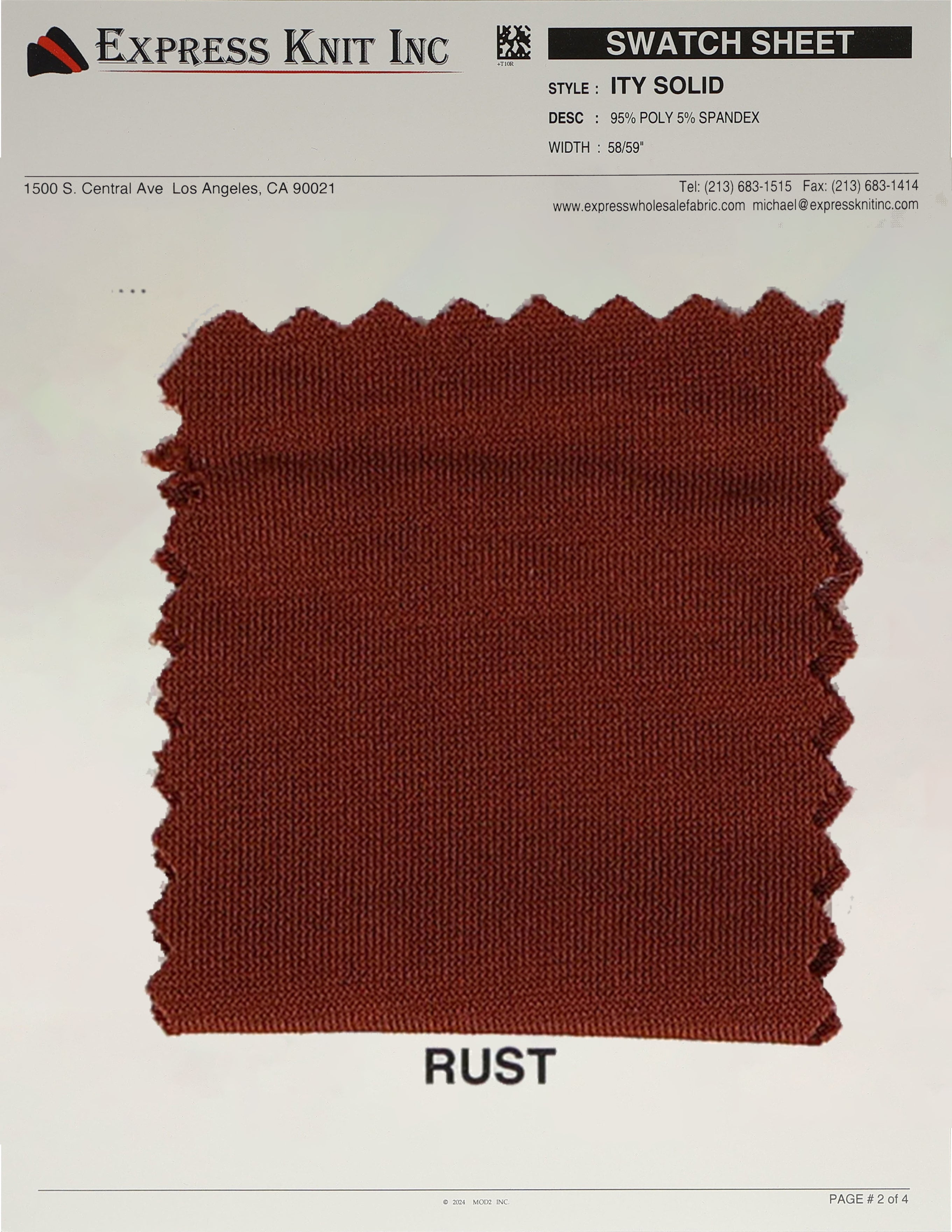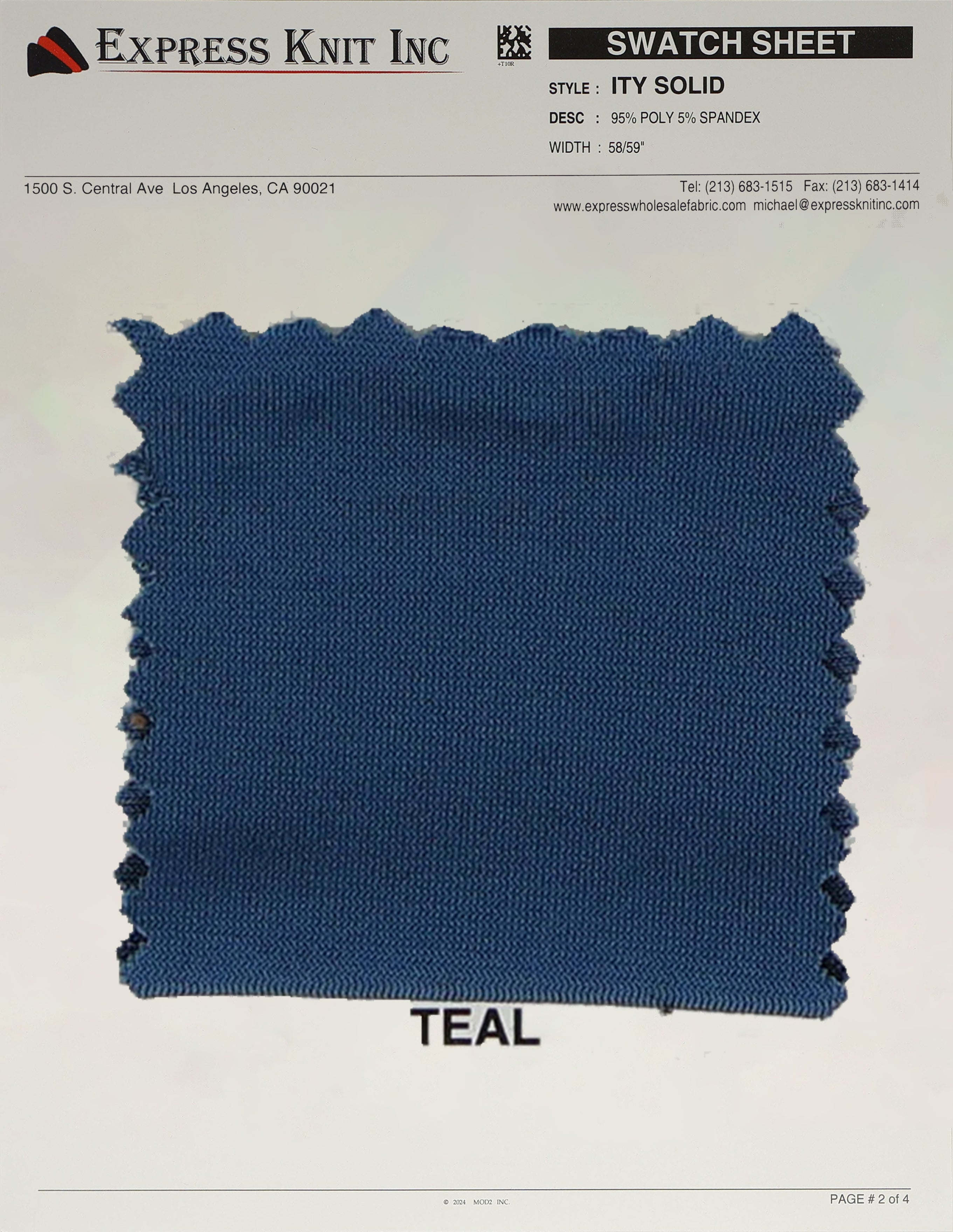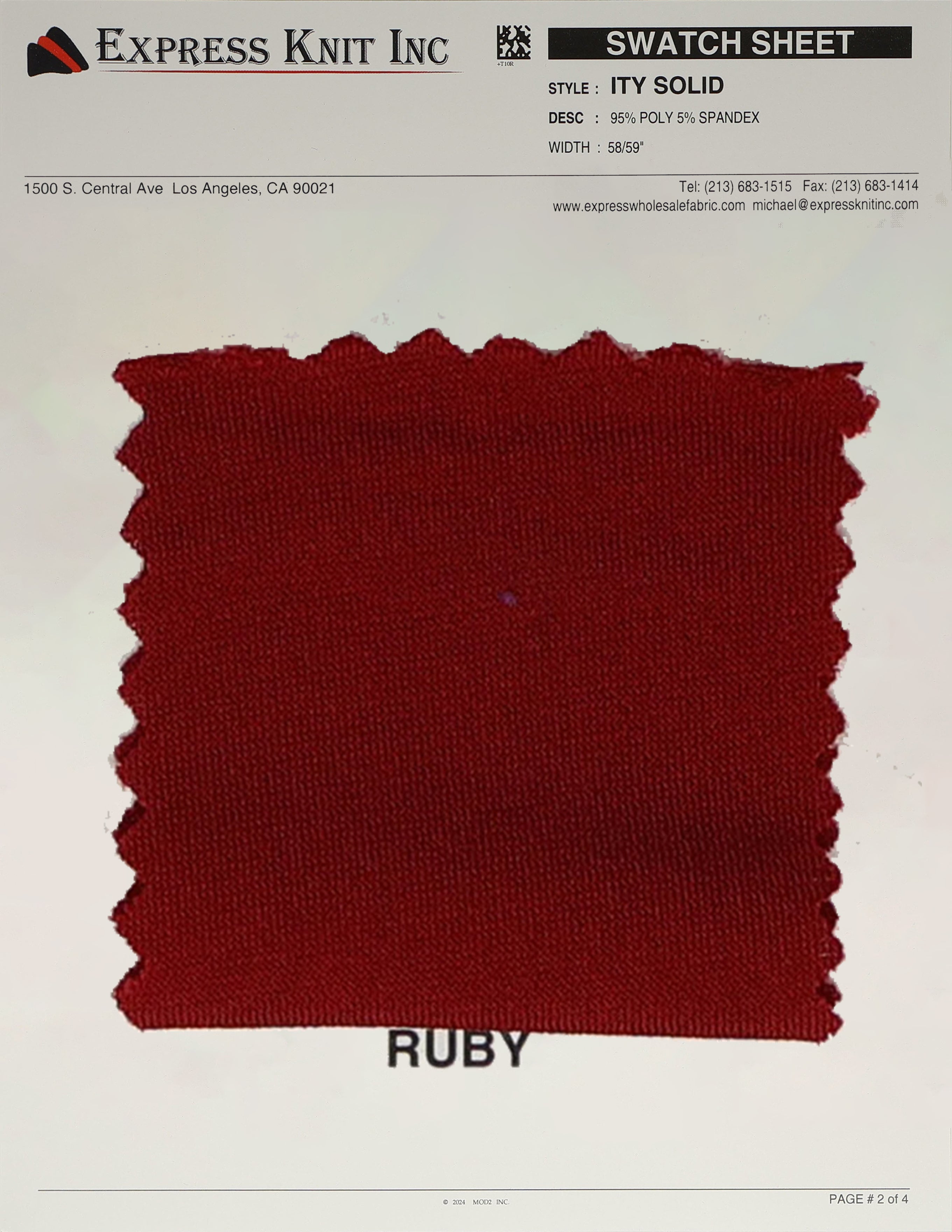 Our ITY Solid Fabric, available at wholesale prices, is a luxurious stretch knit designed for versatility and style. Made with 95% polyester and 5% spandex, it offers a soft, silky surface and fluid drape, perfect for creating flowing, elegant garments. With its lightweight yet durable structure, this fabric is ideal for layering, loungewear, professional attire, and more. The 2-way stretch adds comfort and flexibility, ensuring a perfect fit for various designs. Its 58-59 inch width makes it ideal for efficient cutting and bulk projects.