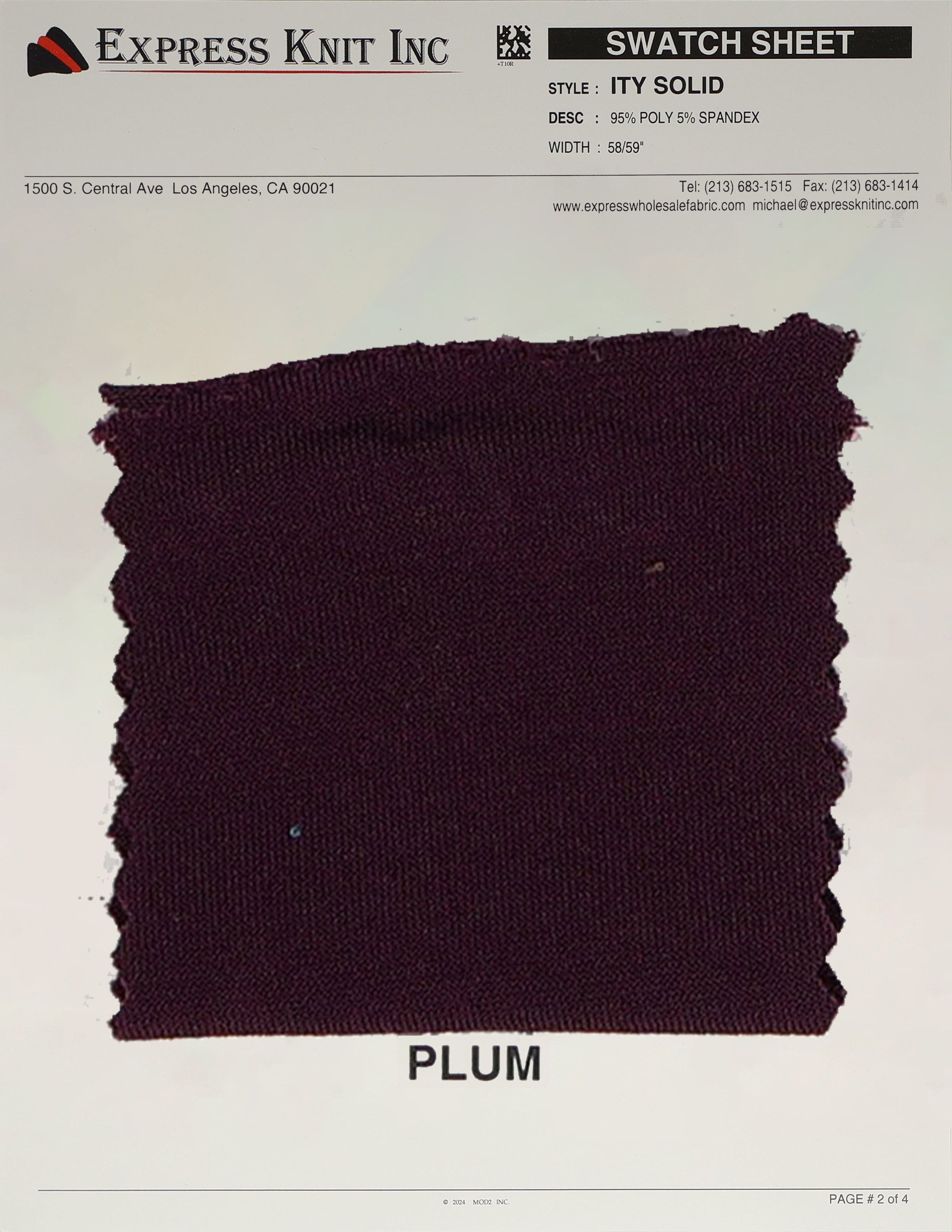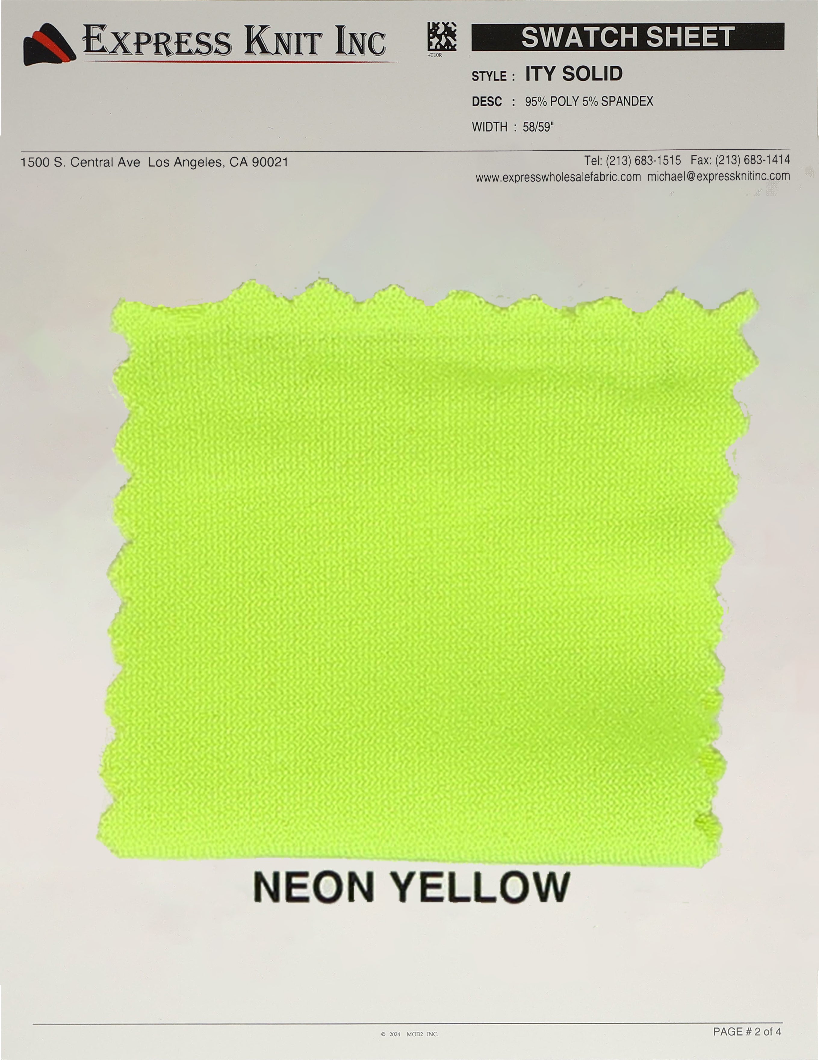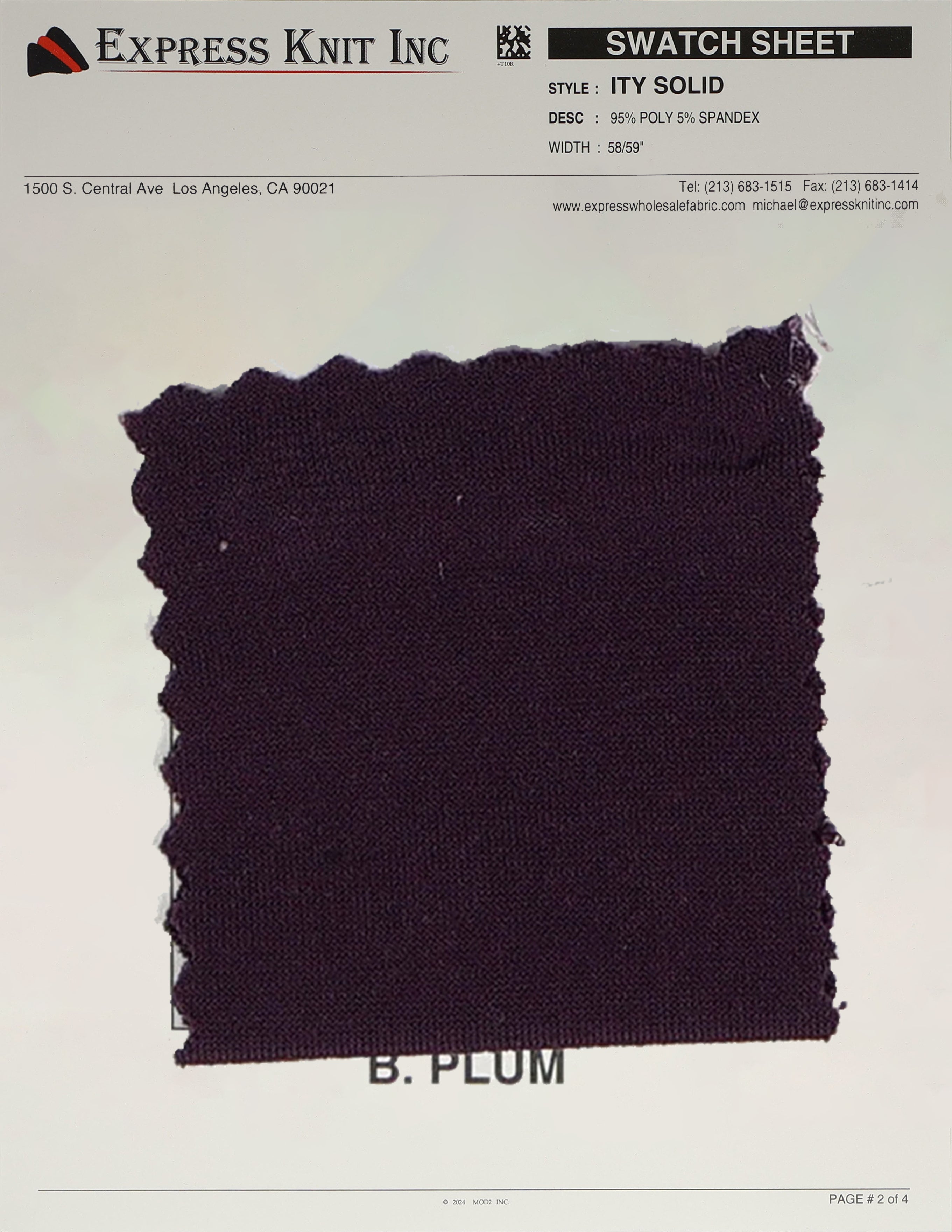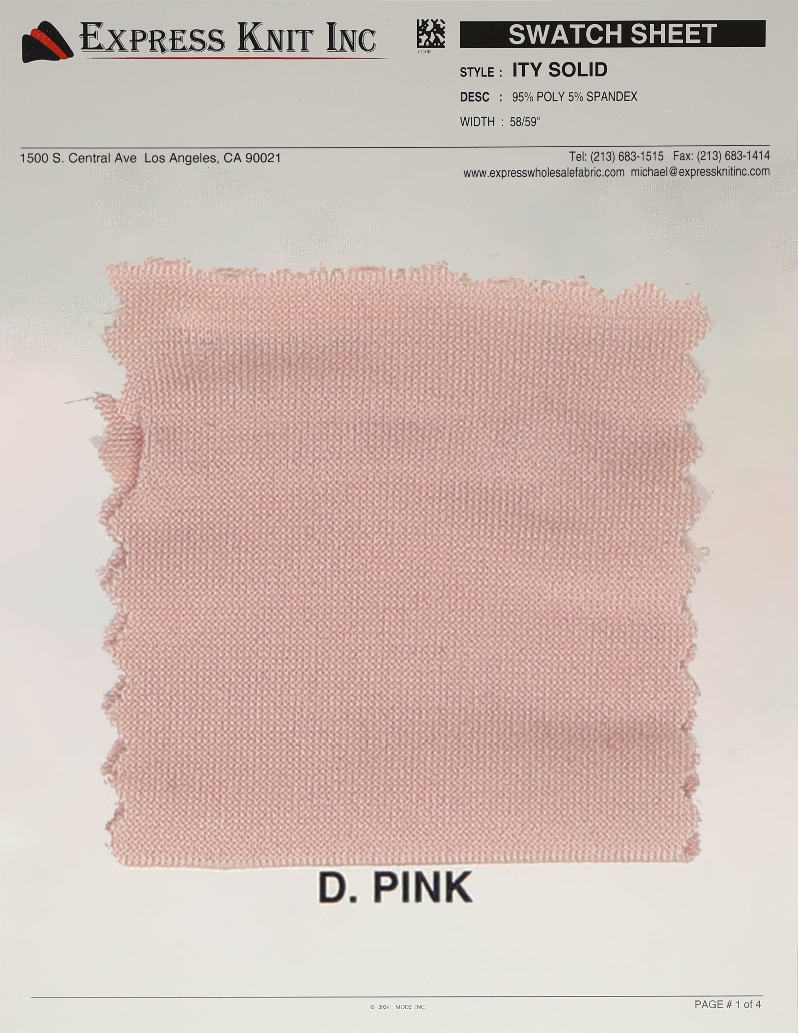 Our ITY Solid Fabric, available at wholesale prices, is a luxurious stretch knit designed for versatility and style. Made with 95% polyester and 5% spandex, it offers a soft, silky surface and fluid drape, perfect for creating flowing, elegant garments. With its lightweight yet durable structure, this fabric is ideal for layering, loungewear, professional attire, and more. The 2-way stretch adds comfort and flexibility, ensuring a perfect fit for various designs. Its 58-59 inch width makes it ideal for efficient cutting and bulk projects.