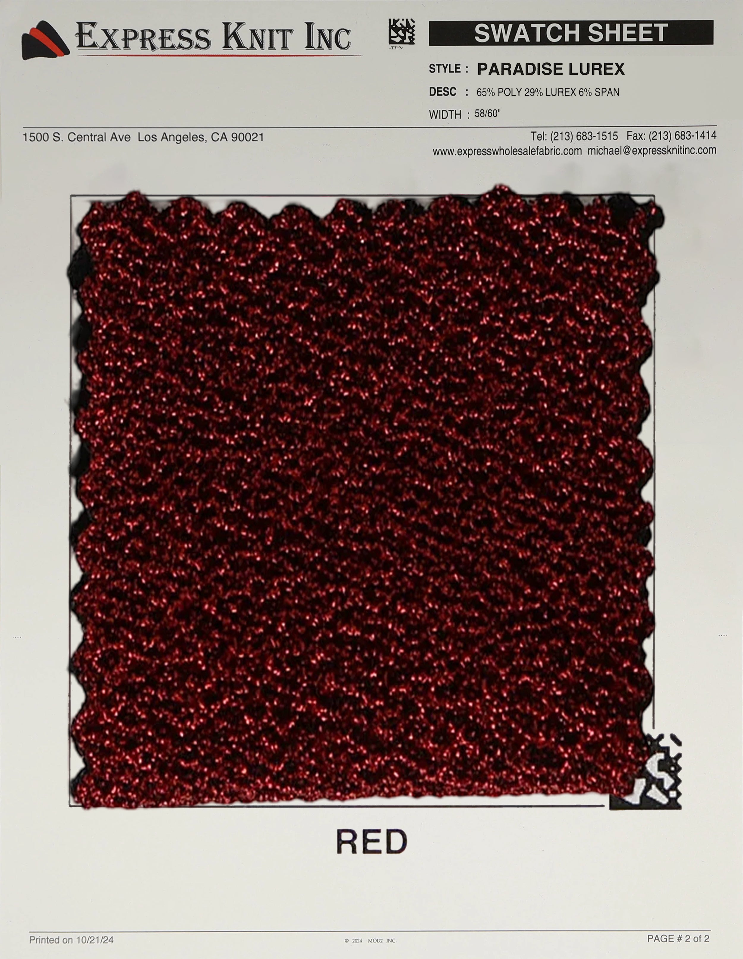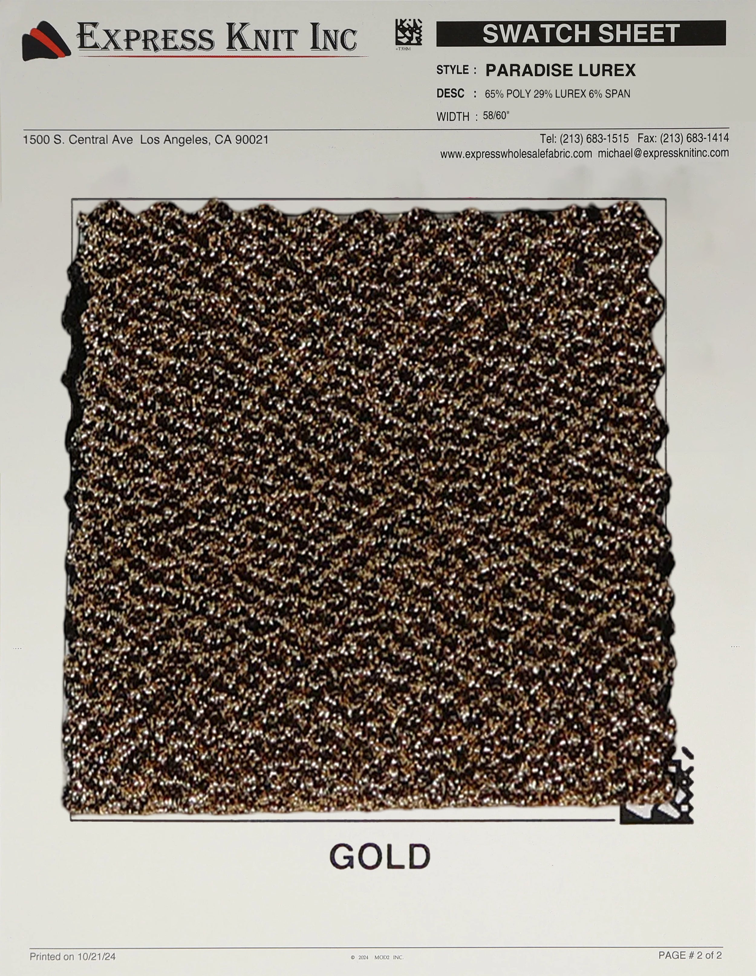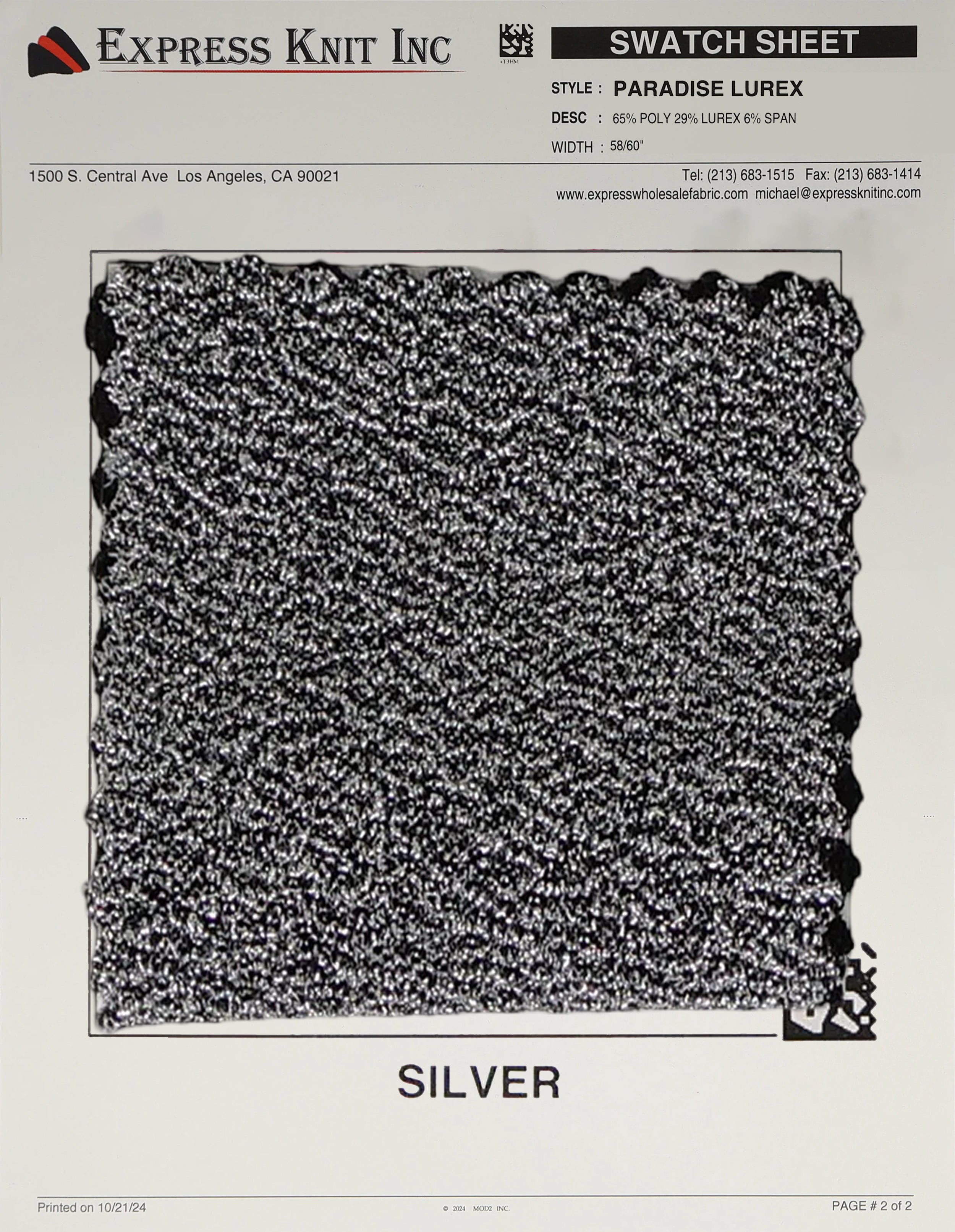 Wholesale Paradise Lurex Fabric - 65% Polyester, 29% Lurex, 6% Spandex, 58/60 Inches Wide