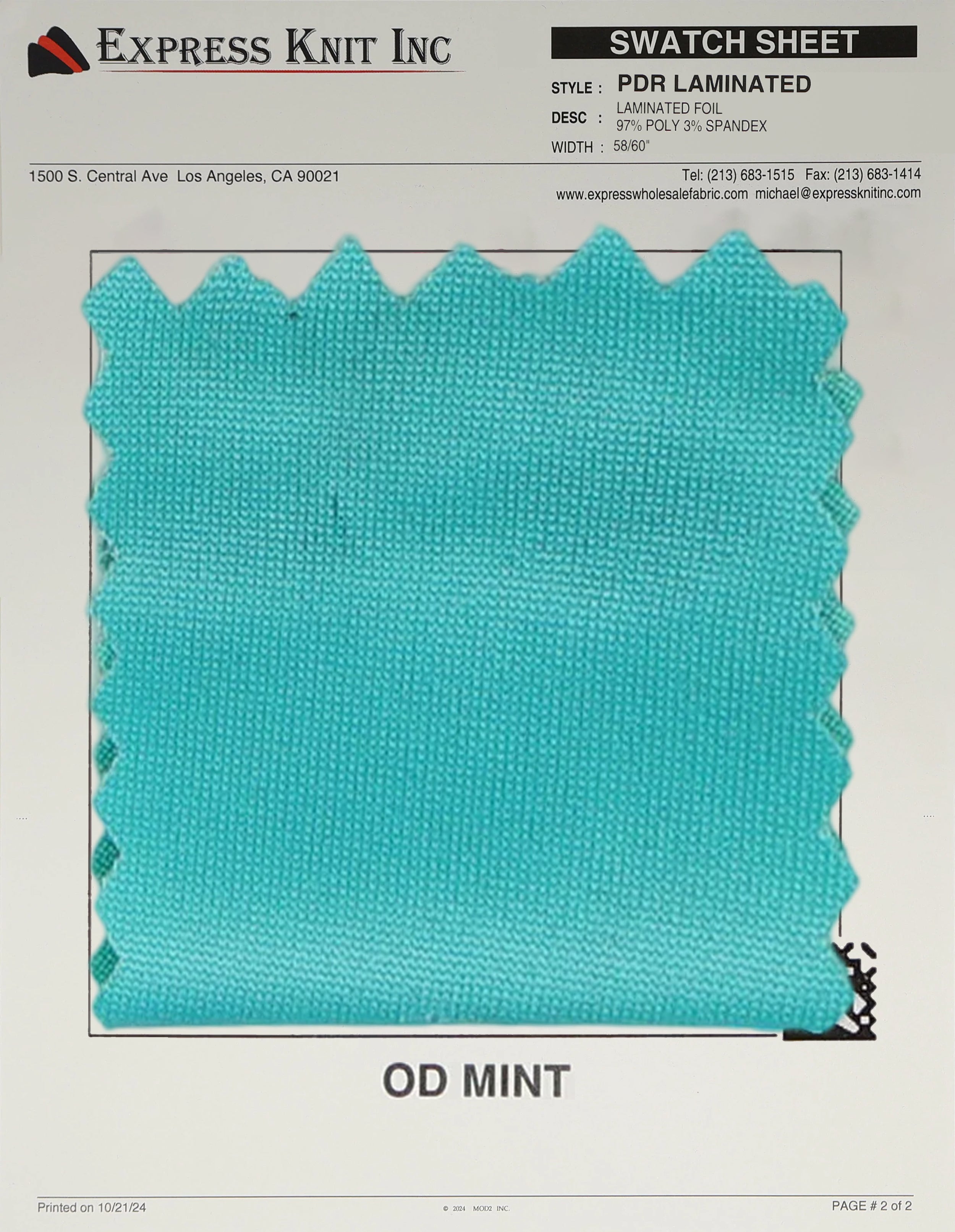 Elevate your fabric inventory with our dazzling PDR Laminated Foil Fabric, the perfect choice for high-impact fashion and design projects. Crafted with 97% polyester and 3% spandex, this medium-weight 190 GSM fabric offers a striking laminated foil finish that delivers durability, flexibility, and an eye-catching shimmer. Ideal for creating bold statement pieces, this fabric is perfect for designers, apparel manufacturers, and wholesale buyers looking for a fabric that stands out.