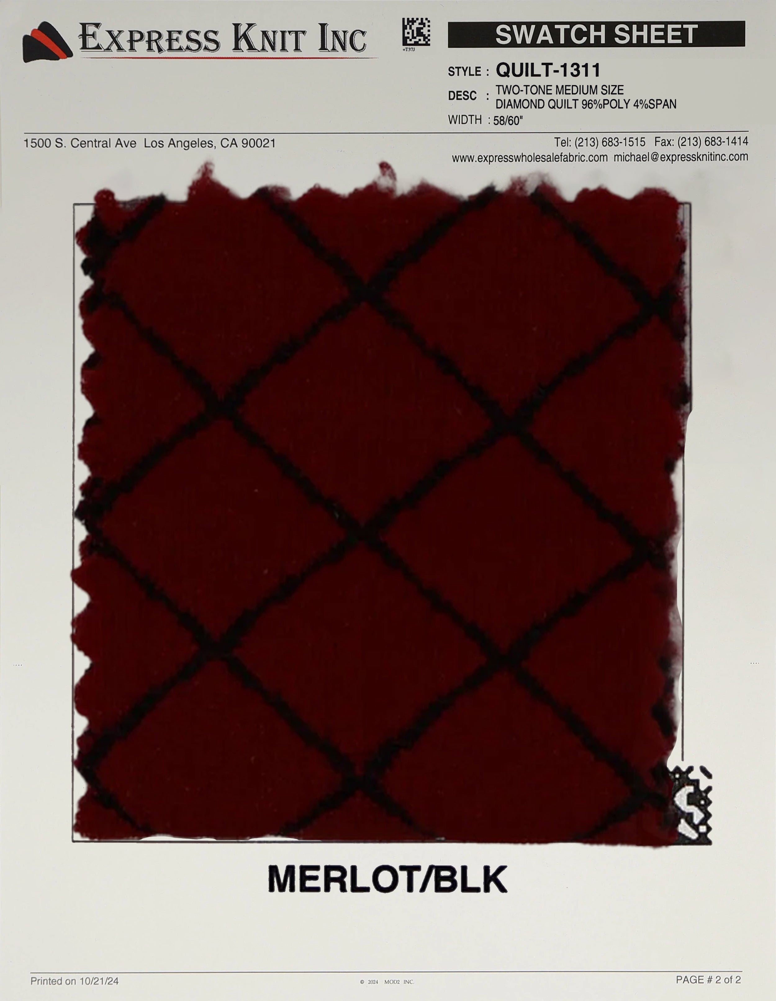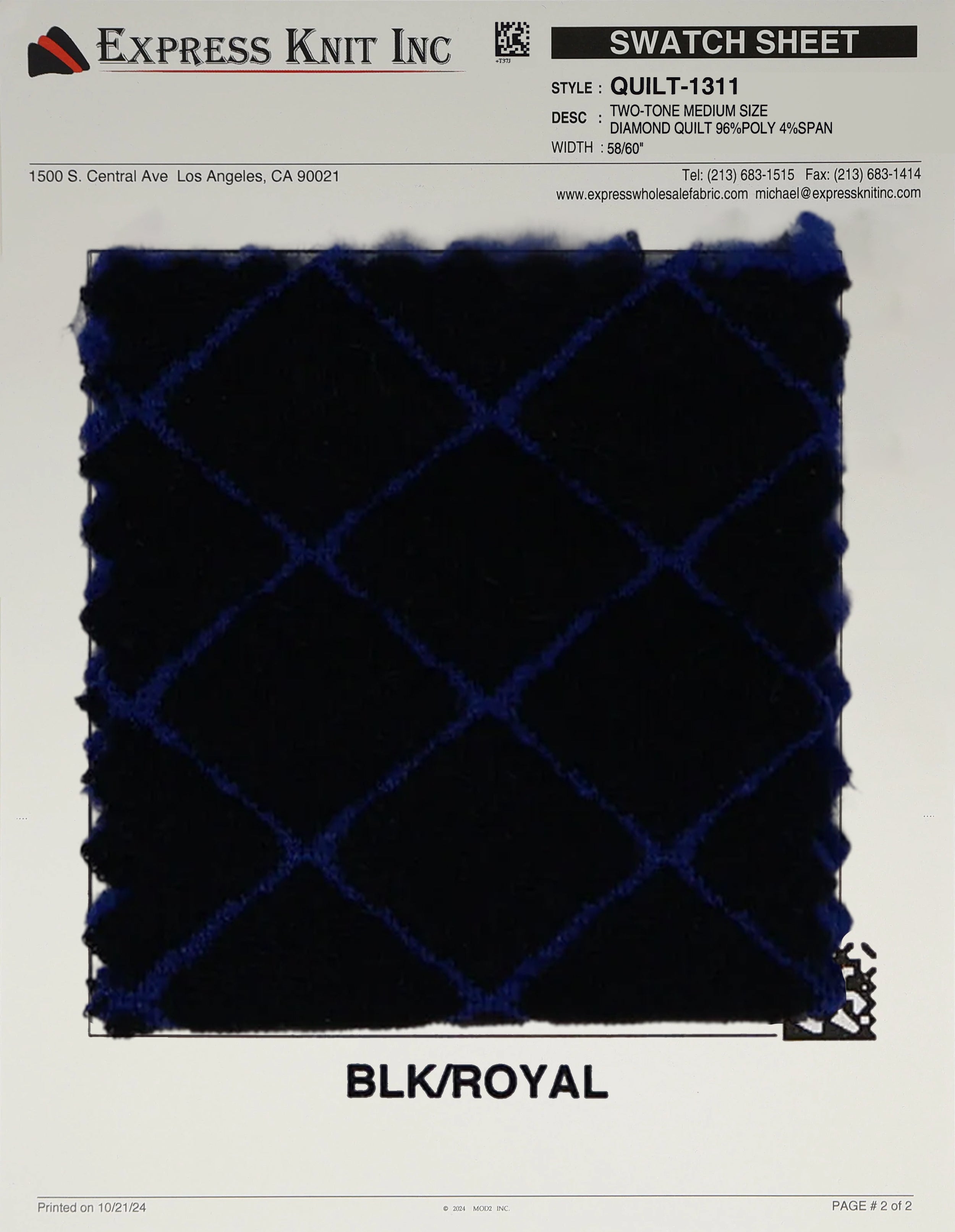 Enhance your fabric collection with Two-Tone Diamond Quilt Fabric, a wholesale fabric designed for fashion-forward, durable creations. Perfect for fashion designers, decorators, and DIY enthusiasts looking to add texture and sophistication to their projects.