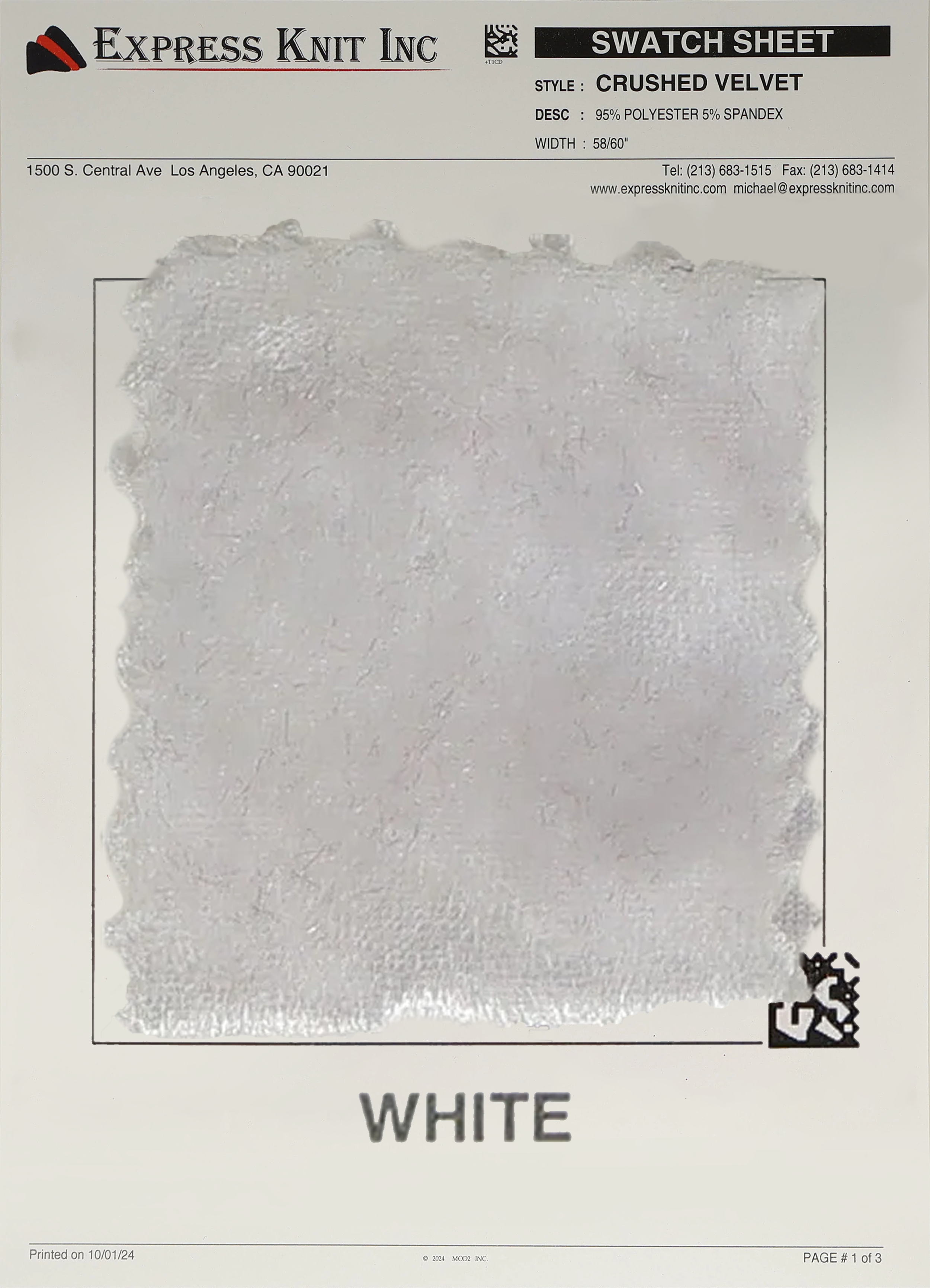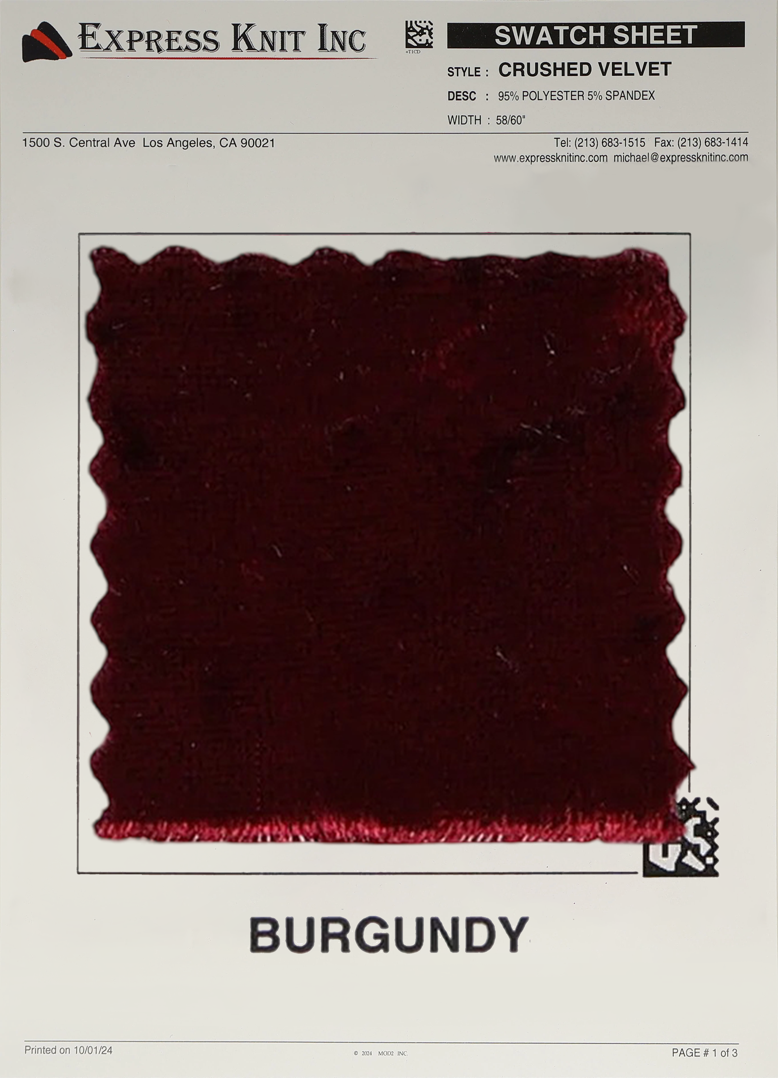 Our Crushed Velvet Fabric brings luxury and functionality together. Its opulent crushed texture and soft stretch make it perfect for crafting chic apparel and sophisticated home décor. The polyester-spandex blend provides durability, comfort, and a hint of stretch, ensuring a balance of structure and elegance for versatile applications.