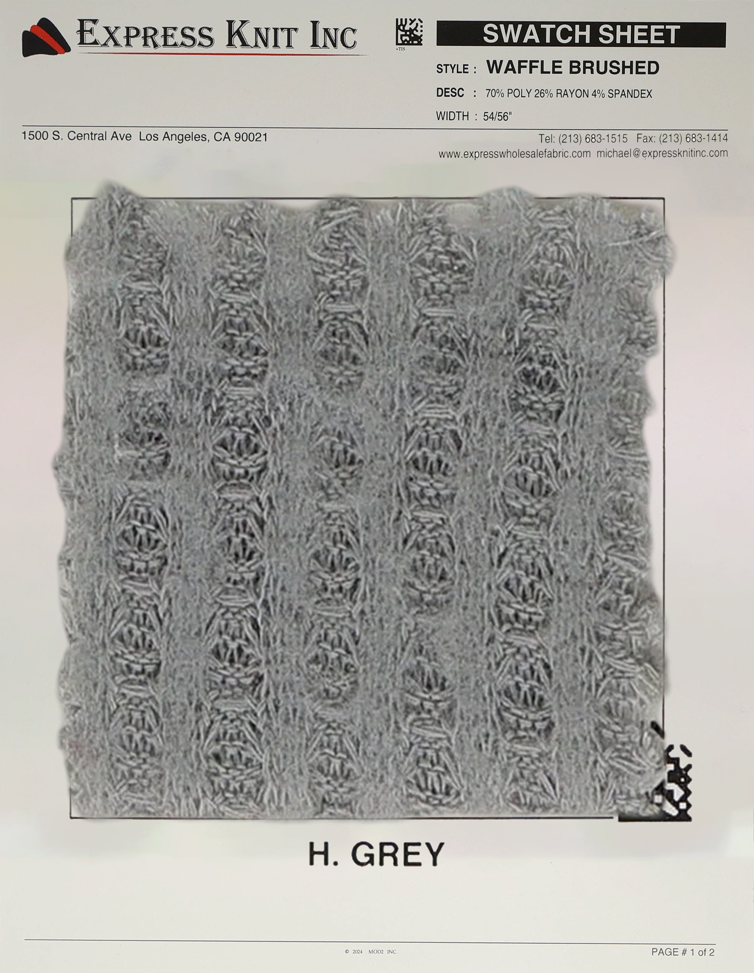 • Soft Brushed Waffle Texture: The waffle-knit pattern with a brushed finish provides a plush, cozy feel, perfect for comfortable, stylish garments.