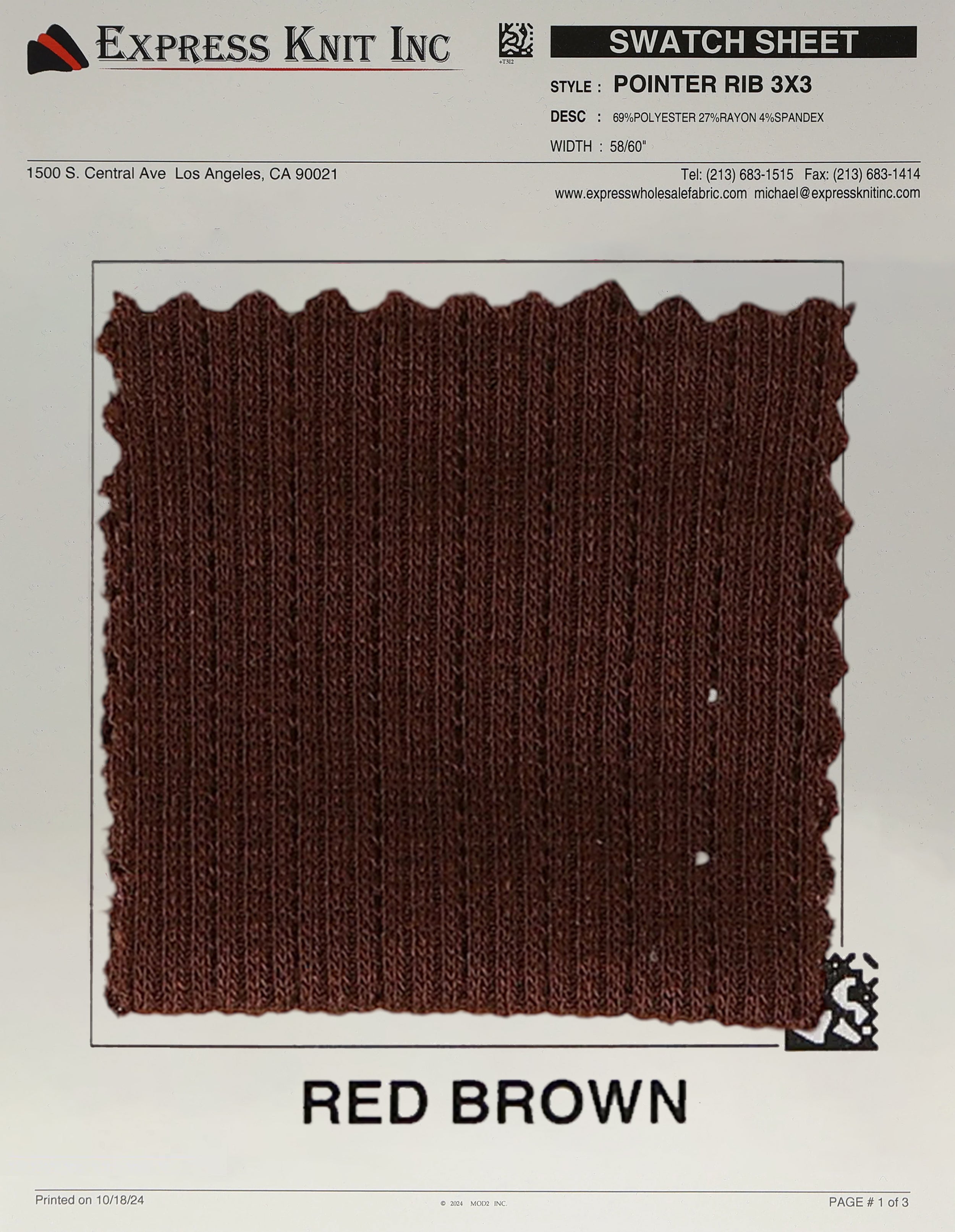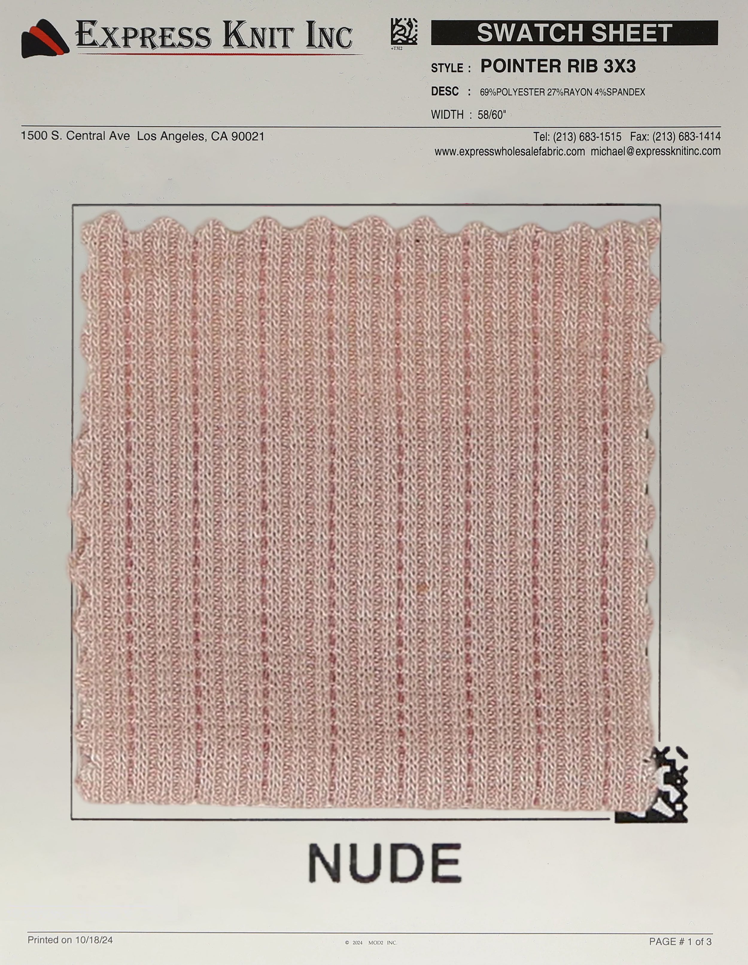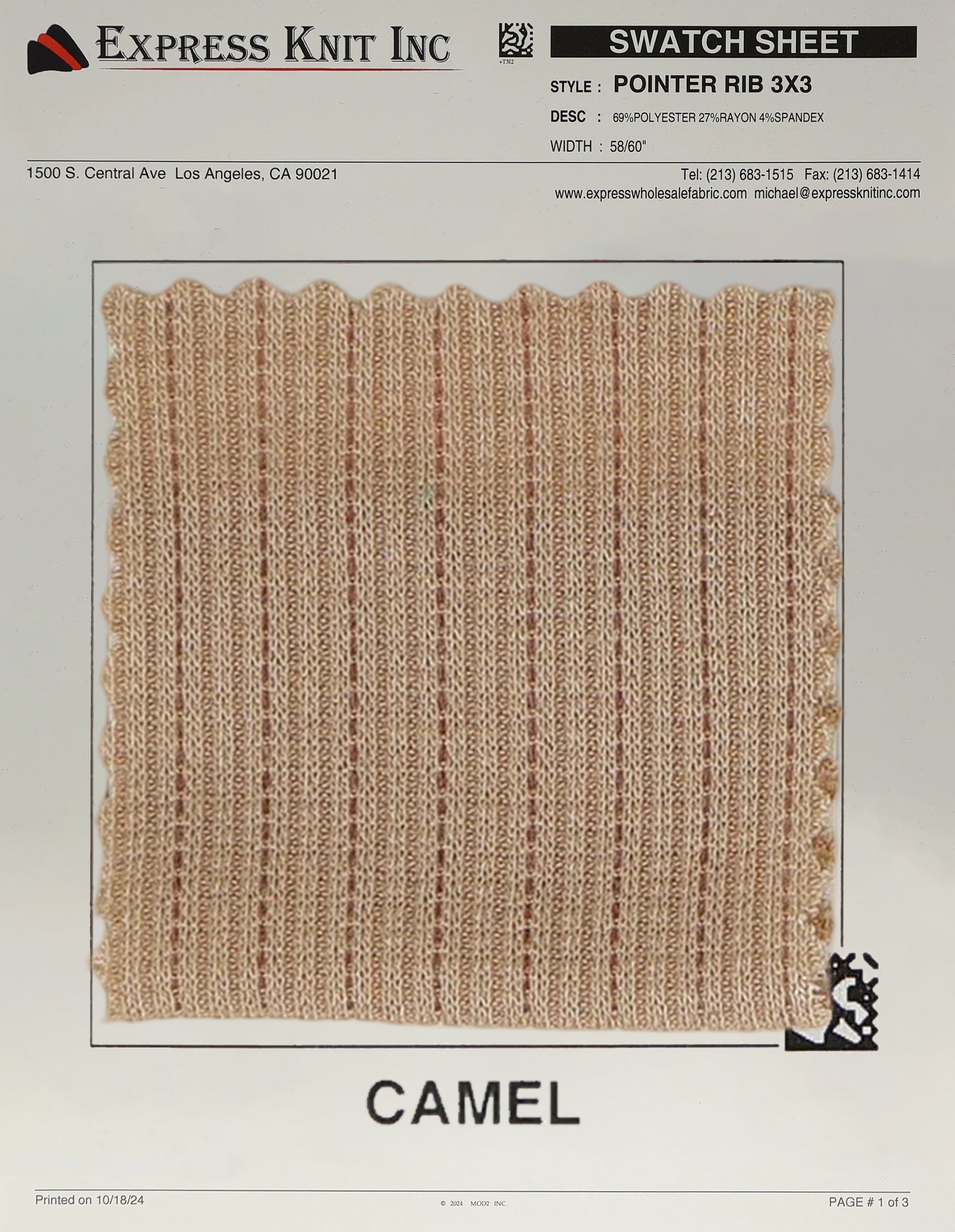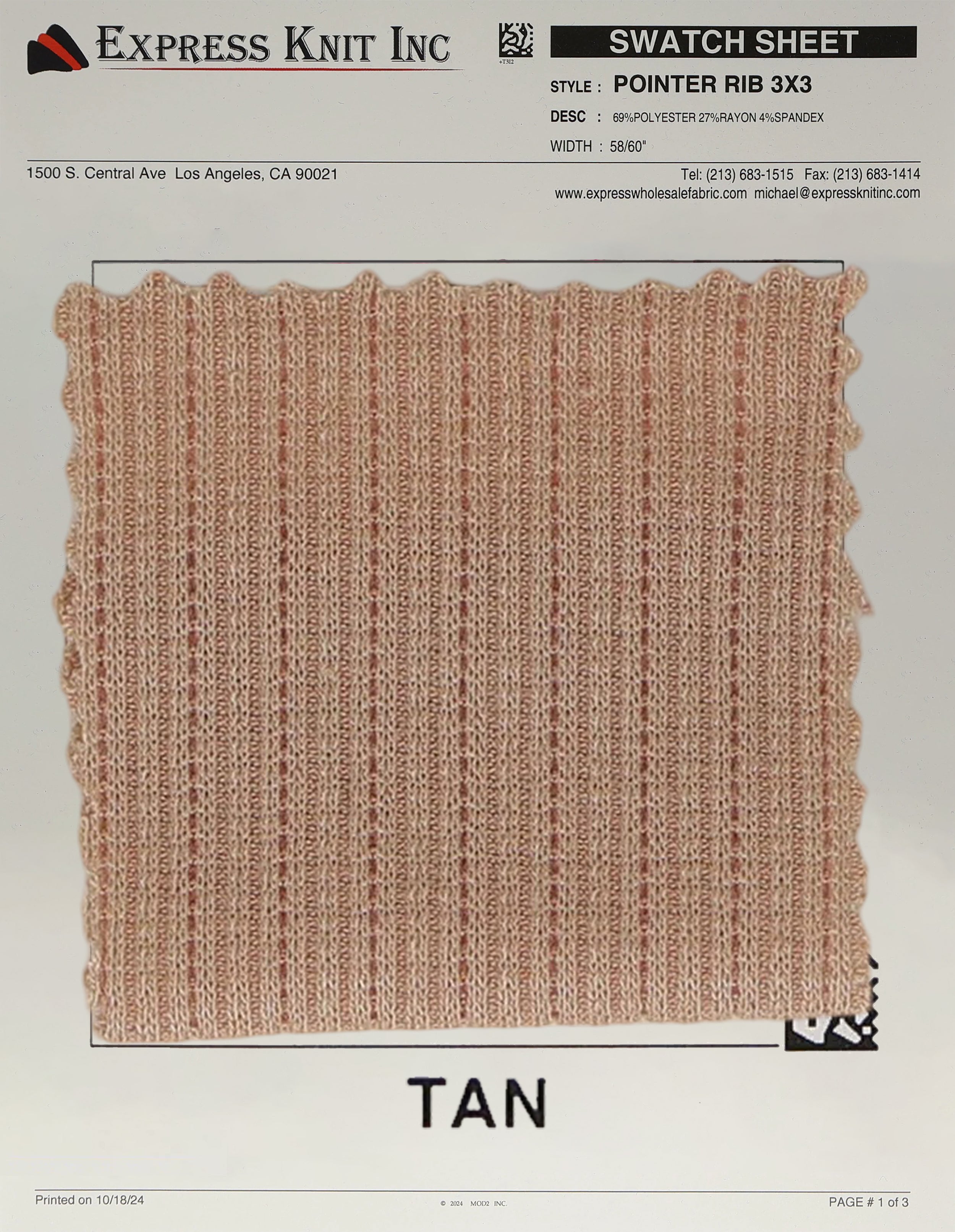 Enhance your fabric selection with our Pointer Rib 3x3 Fabric, a stylish ribbed knit that offers both comfort and stretch. This fabric is crafted from a high-quality blend of 69% polyester, 27% rayon, and 4% spandex, delivering softness, durability, and flexibility. At 180 GSM, this medium-weight fabric provides a cozy feel without being too heavy, making it ideal for year-round wear. With its 3x3 rib texture and a generous width of 58/60 inches, this fabric is perfect for creating fitted, comfortable garments that retain their shape.