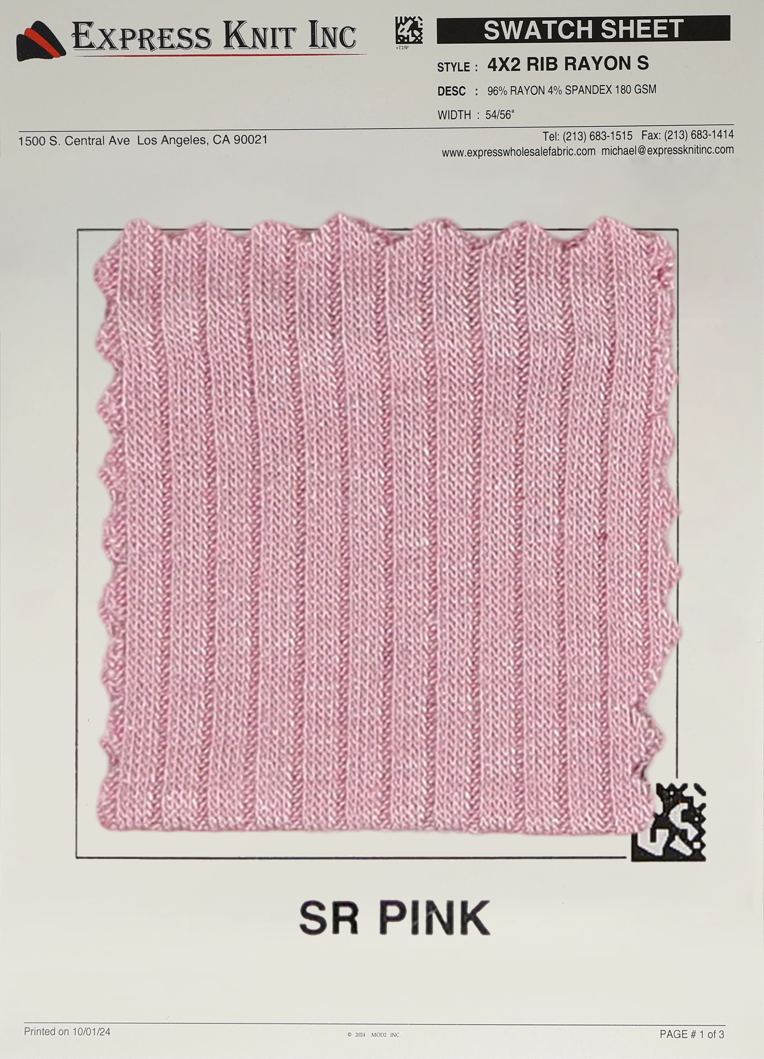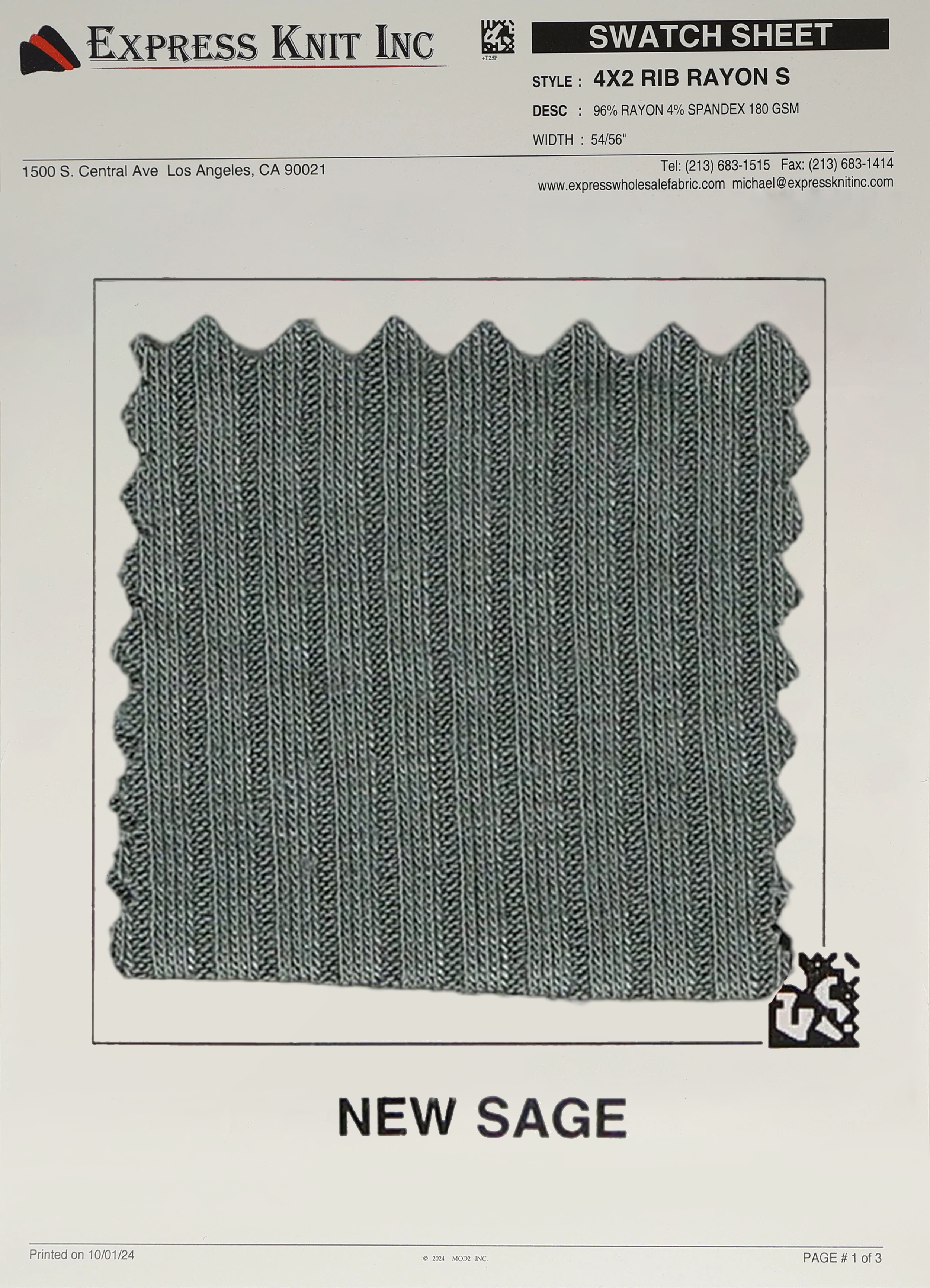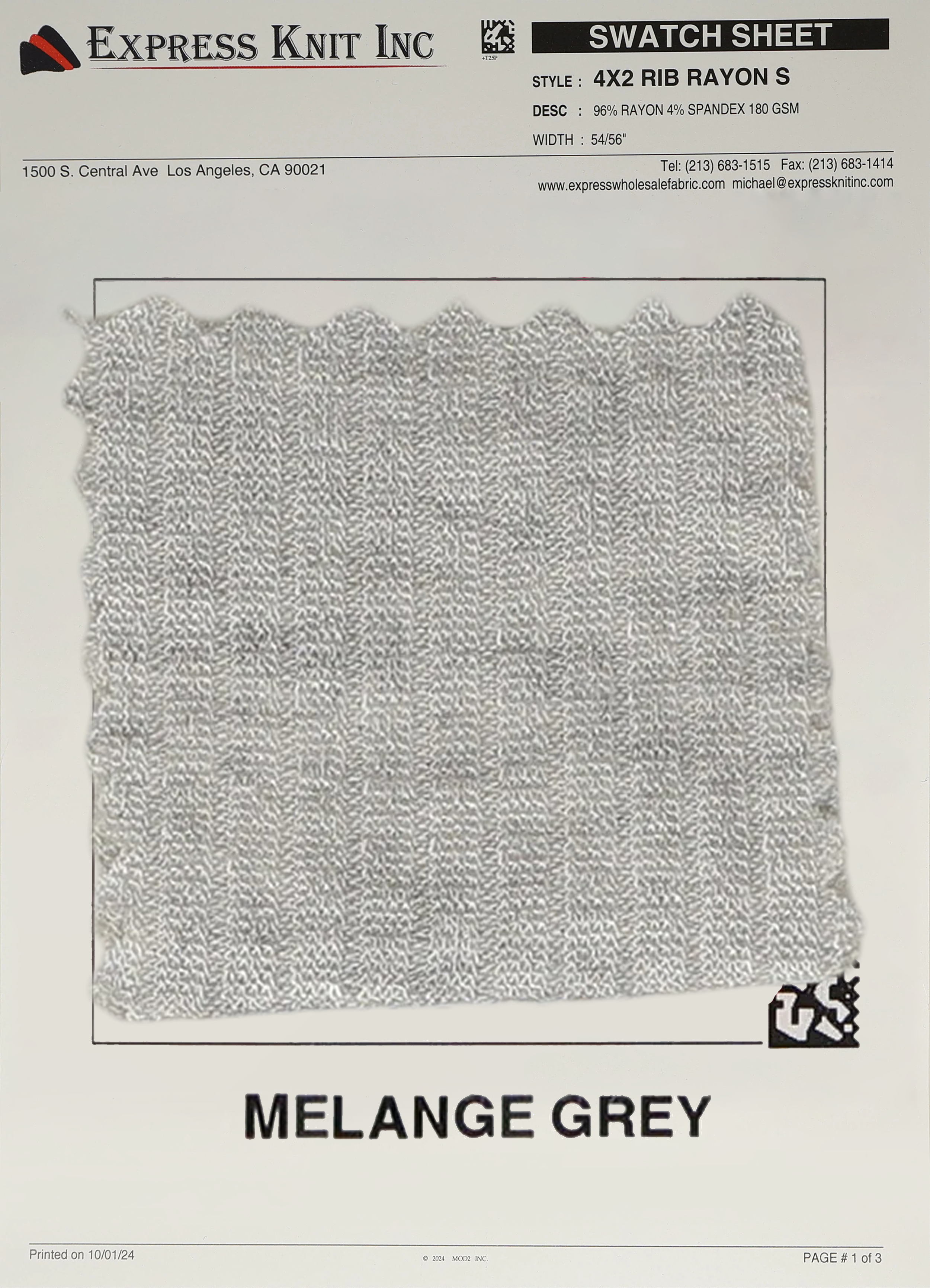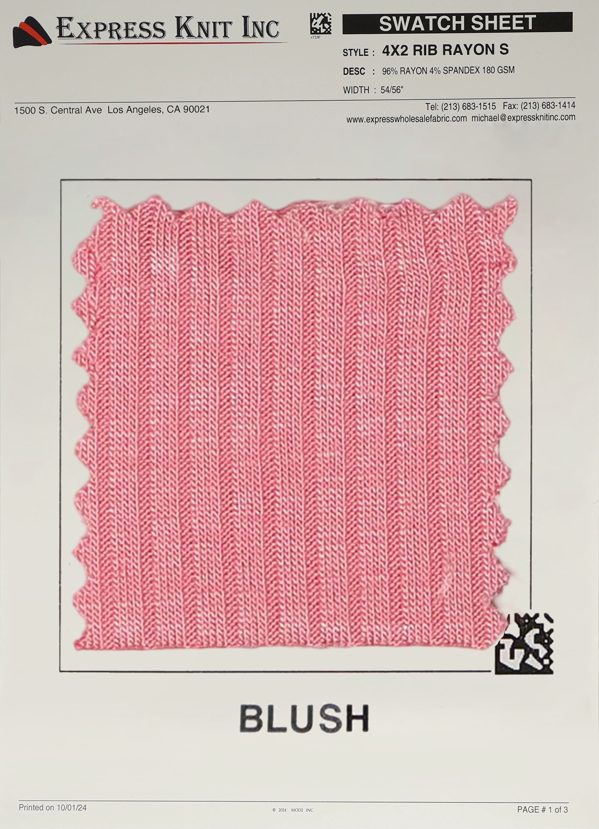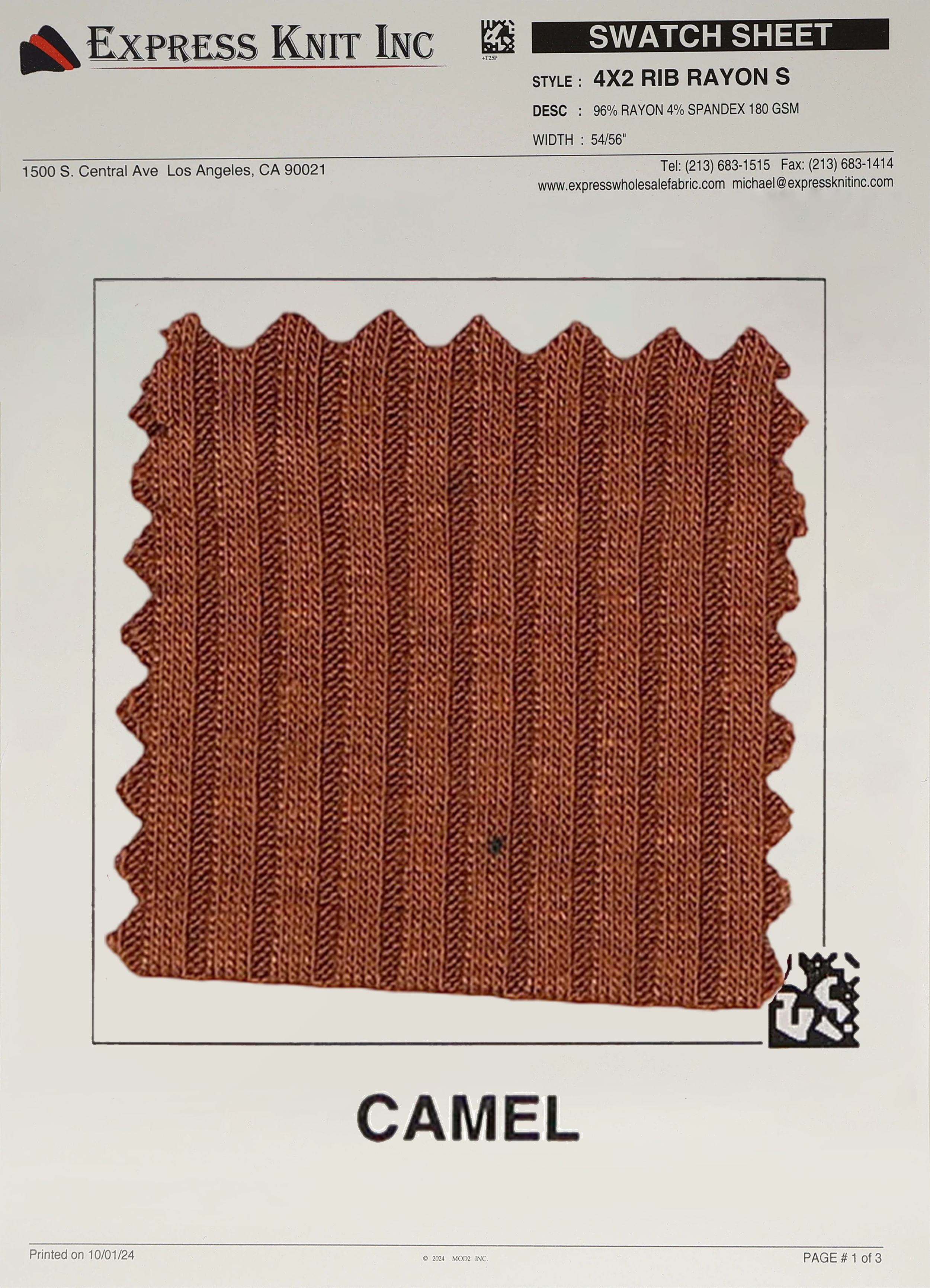 Elevate your inventory with our 4x2 Rib Rayon Spandex Knit Solid Fabric, crafted for luxurious softness, stretch, and style. With 96% Rayon and 4% Spandex, this fabric provides a lightweight, breathable feel at 180 GSM, ideal for creating comfortable and versatile garments. Its 4x2 rib texture adds depth and detail, while the 54-56 inch width makes it perfect for bulk orders and larger projects.