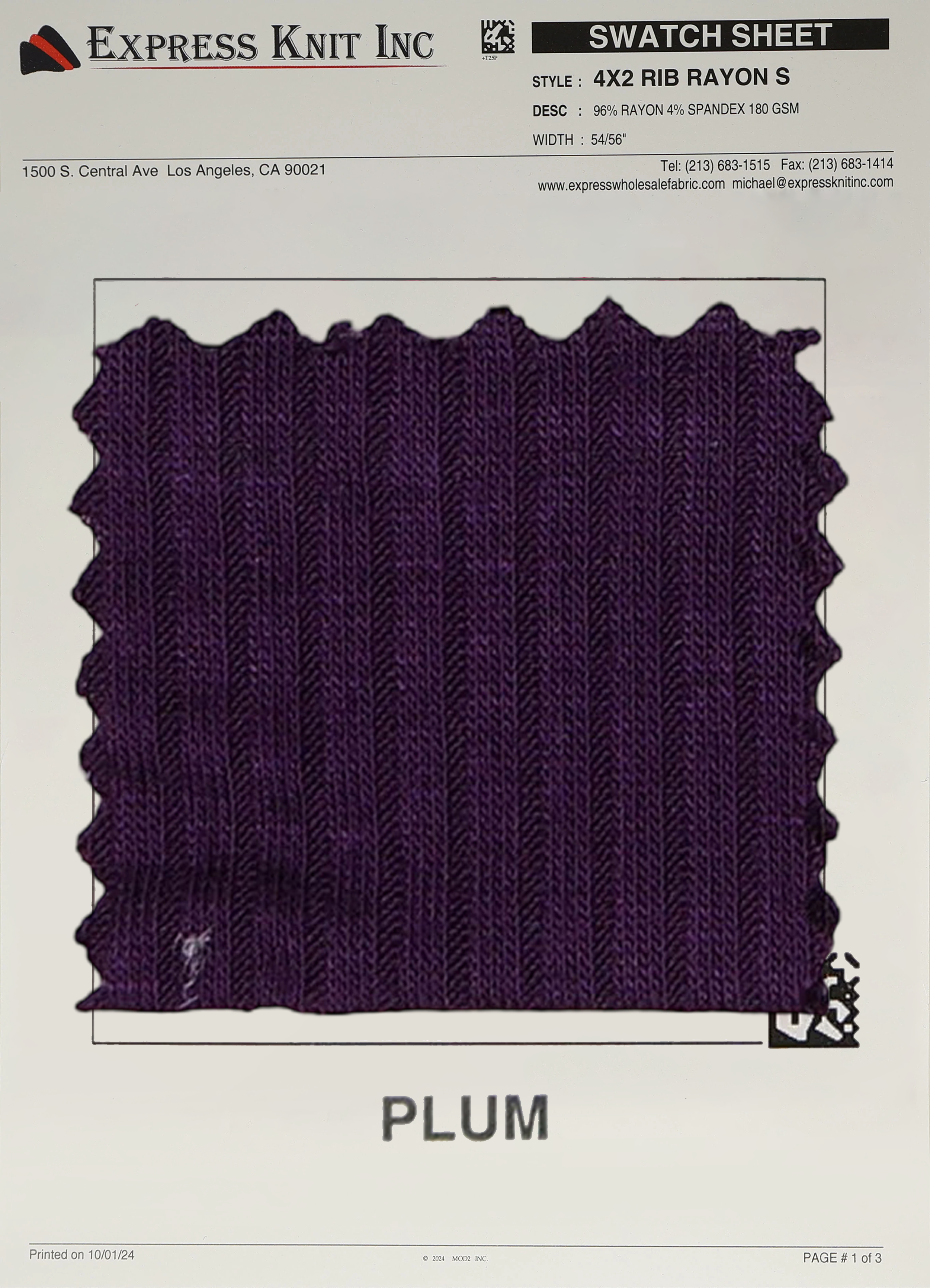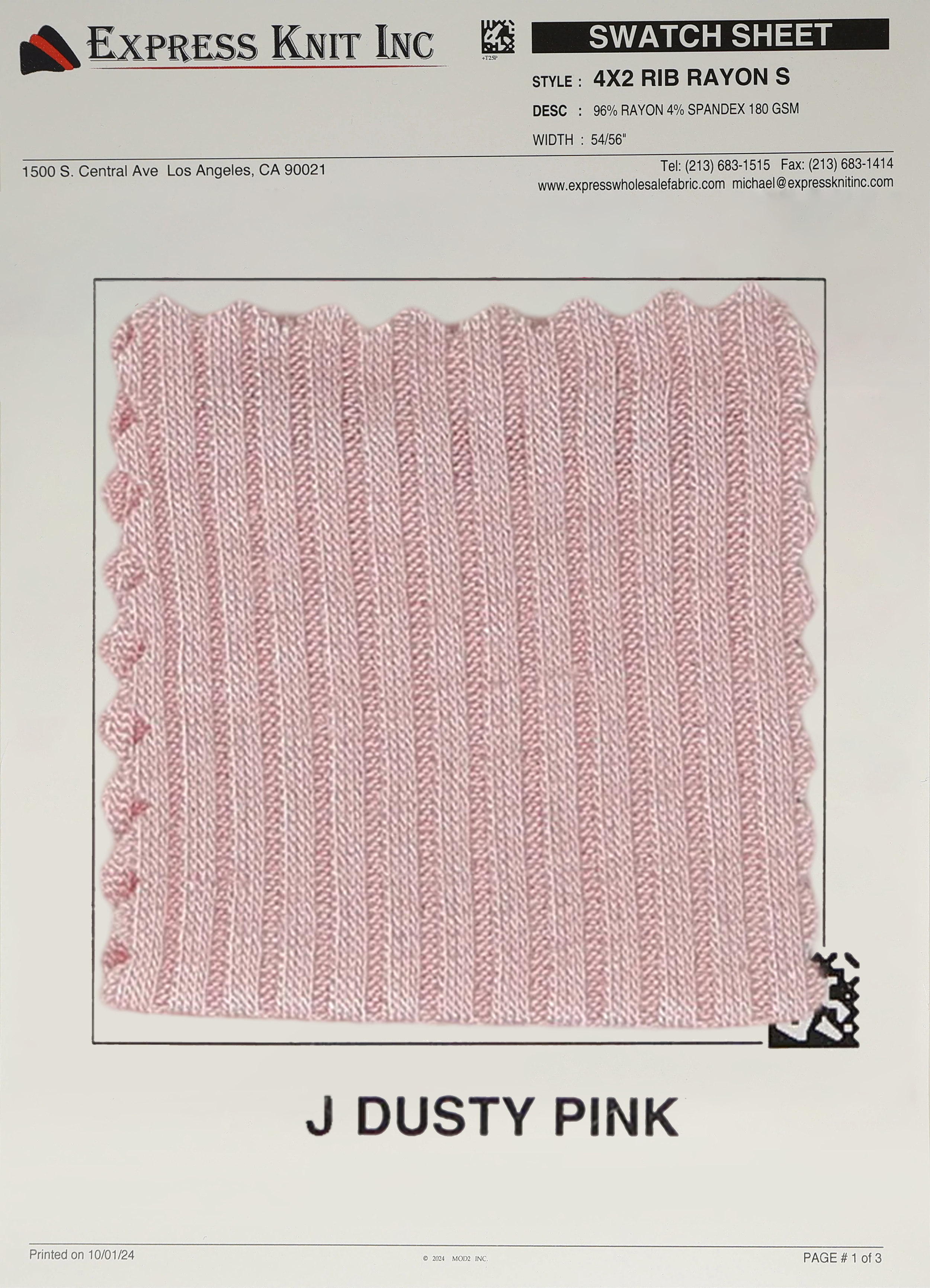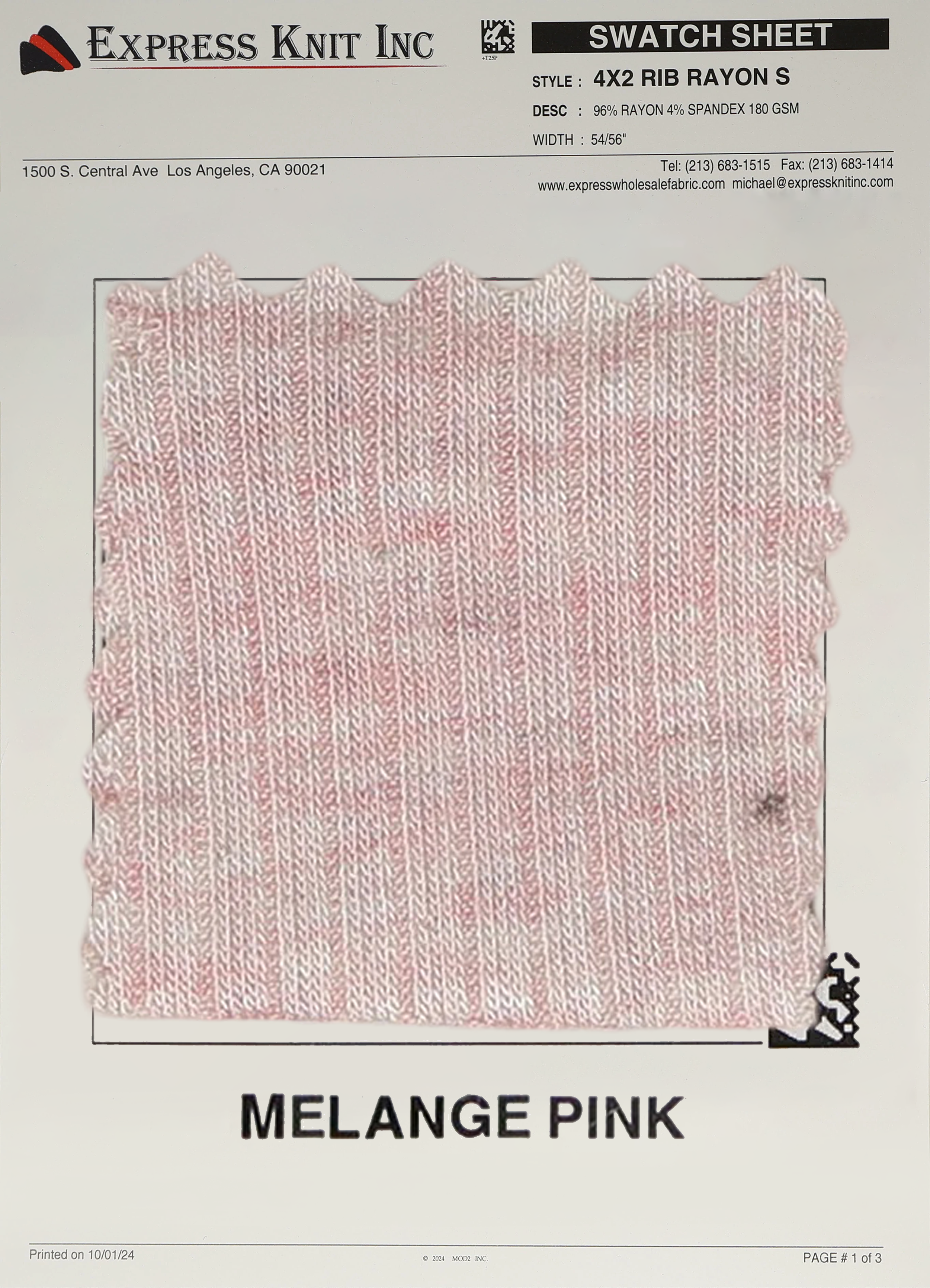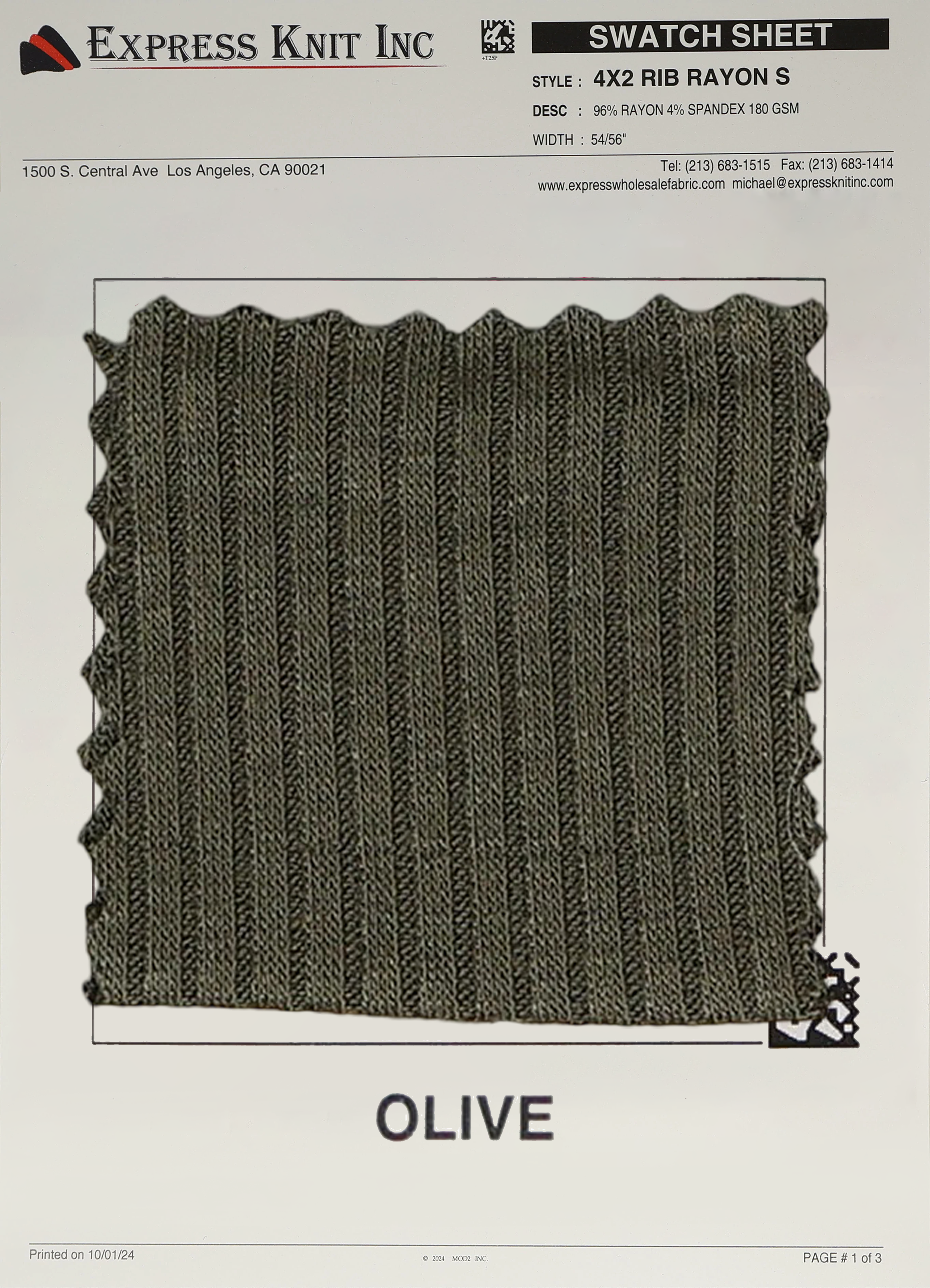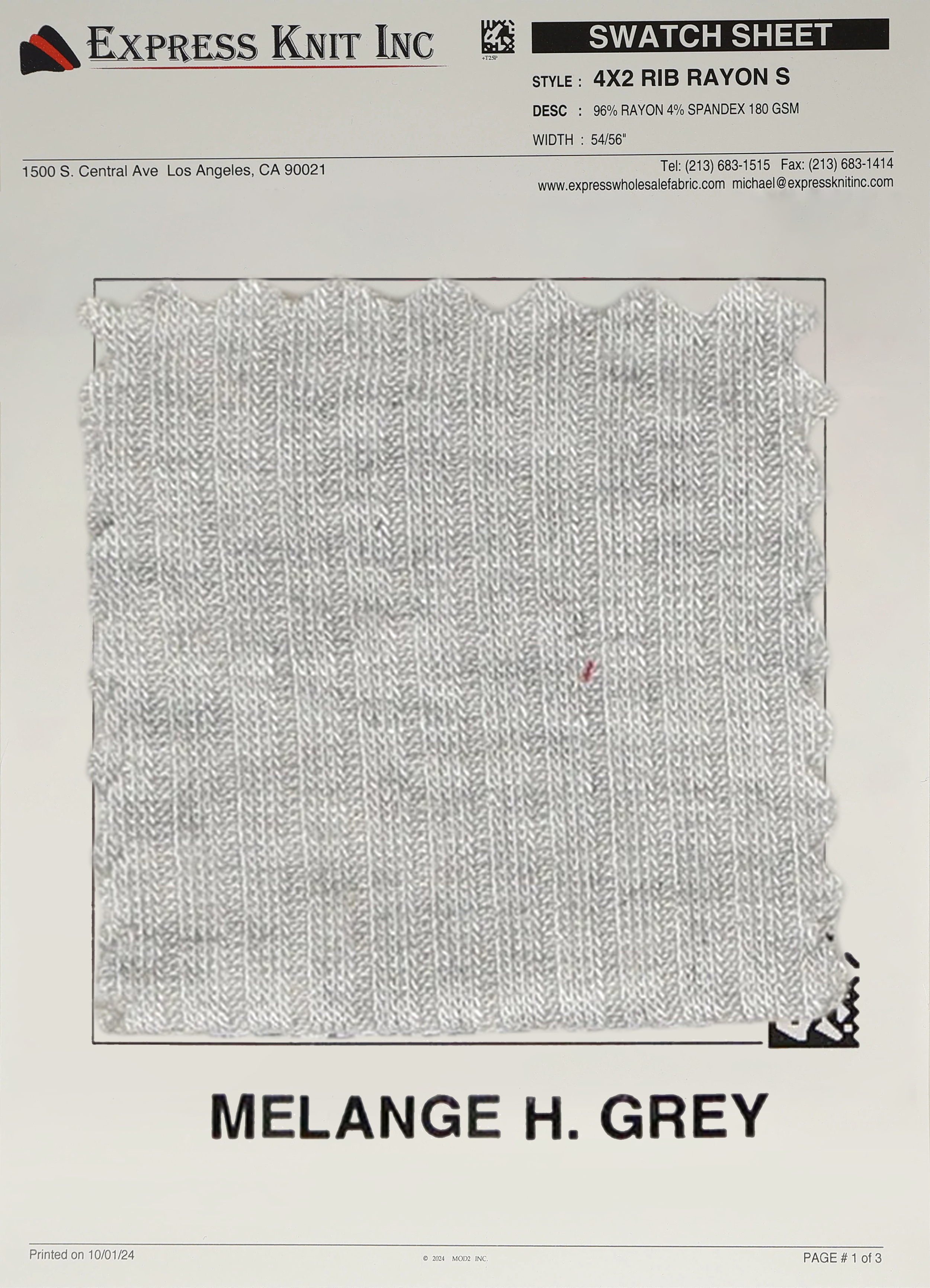 Elevate your inventory with our 4x2 Rib Rayon Spandex Knit Solid Fabric, crafted for luxurious softness, stretch, and style. With 96% Rayon and 4% Spandex, this fabric provides a lightweight, breathable feel at 180 GSM, ideal for creating comfortable and versatile garments. Its 4x2 rib texture adds depth and detail, while the 54-56 inch width makes it perfect for bulk orders and larger projects.