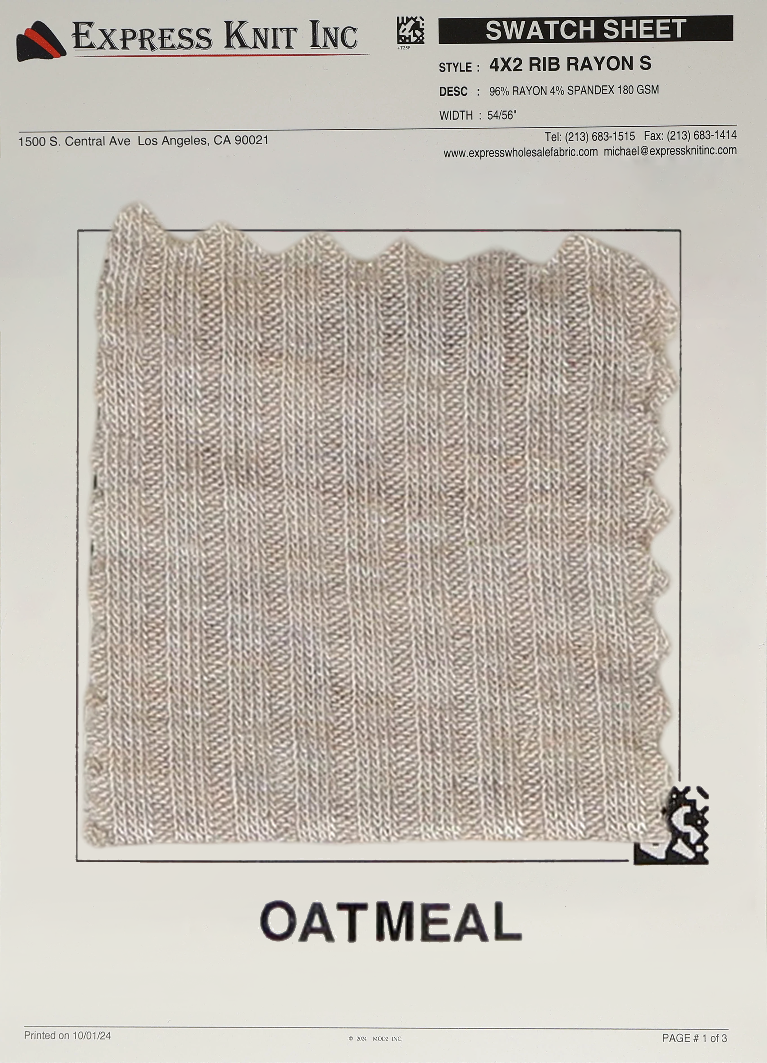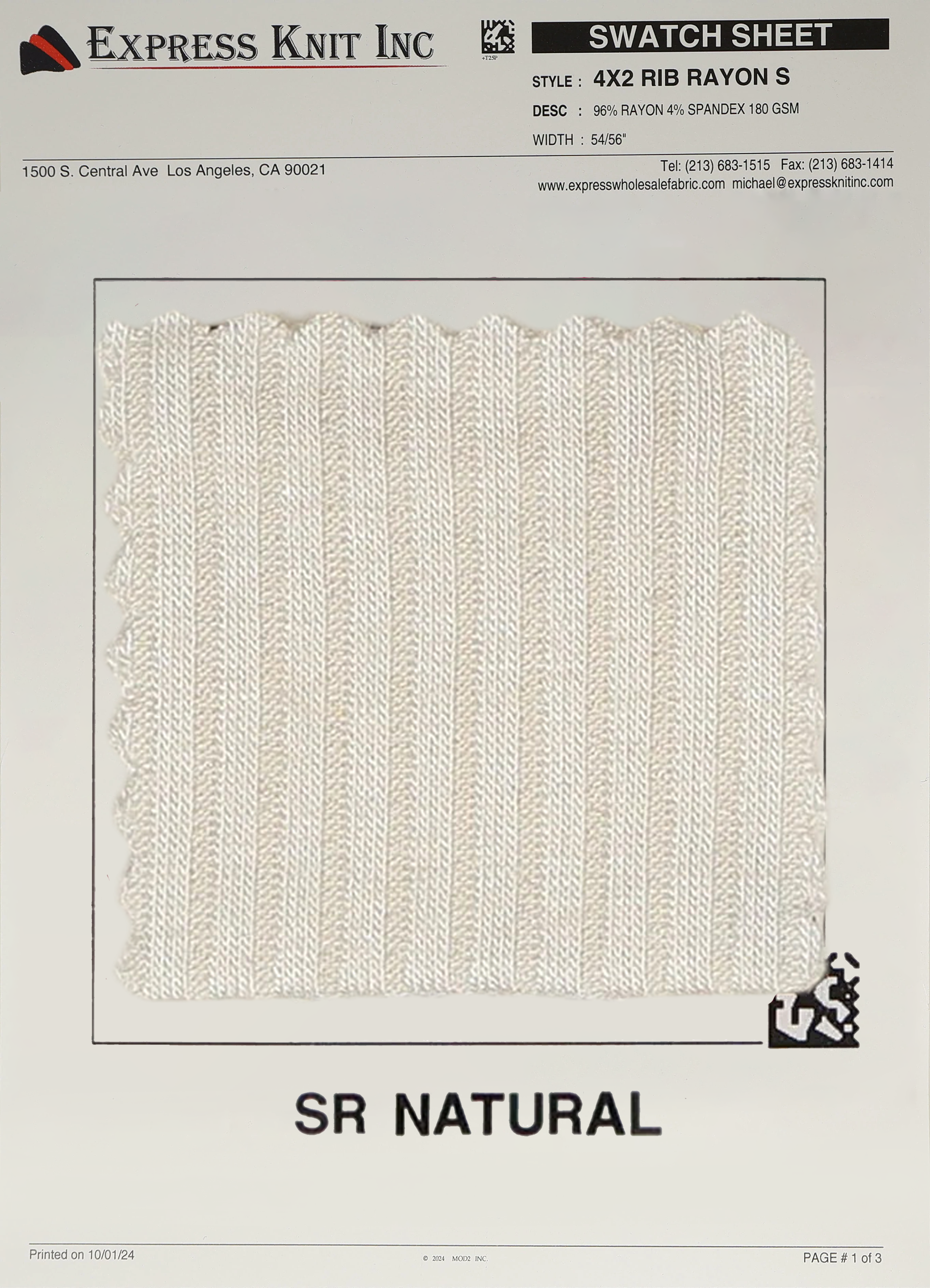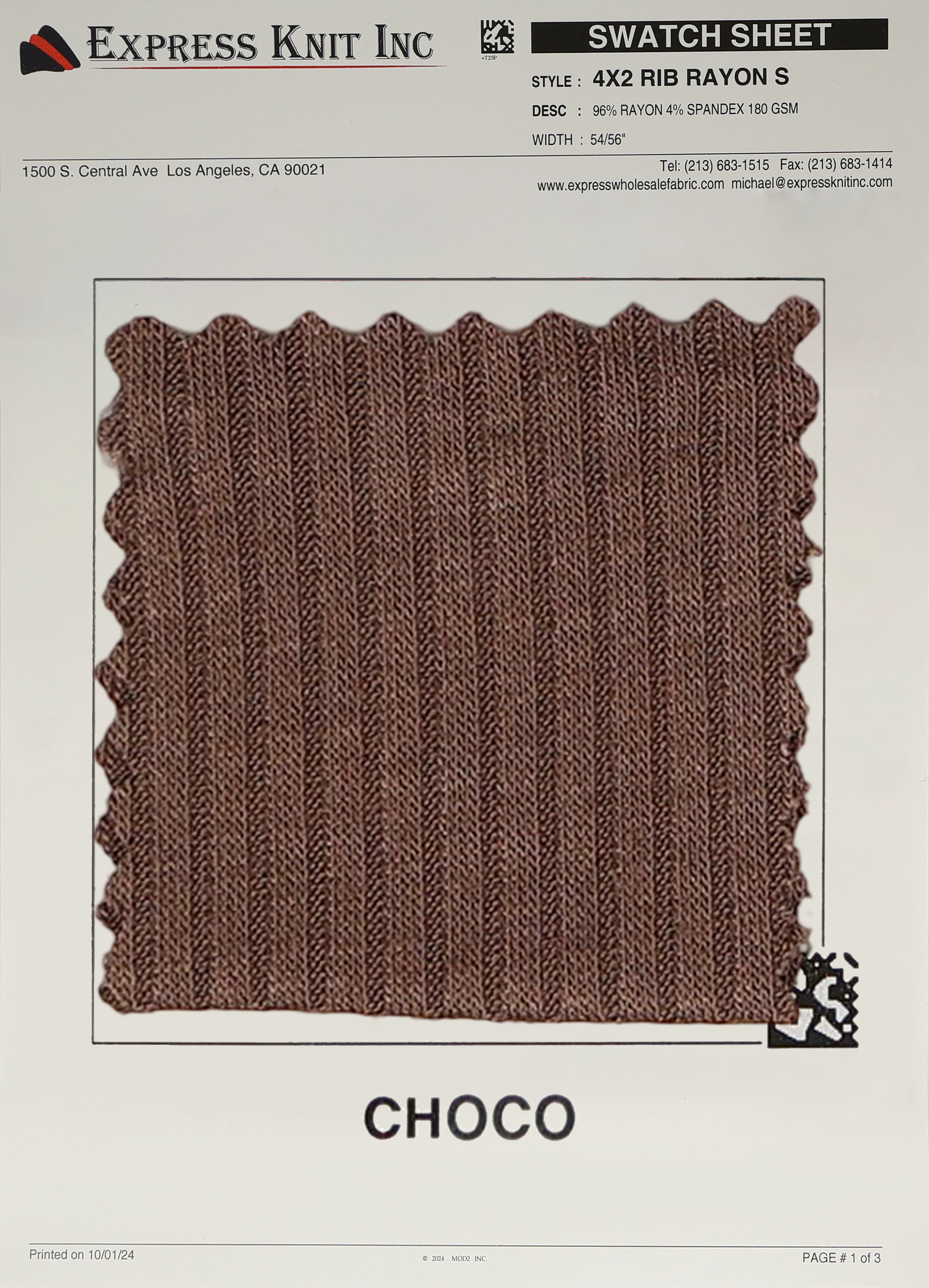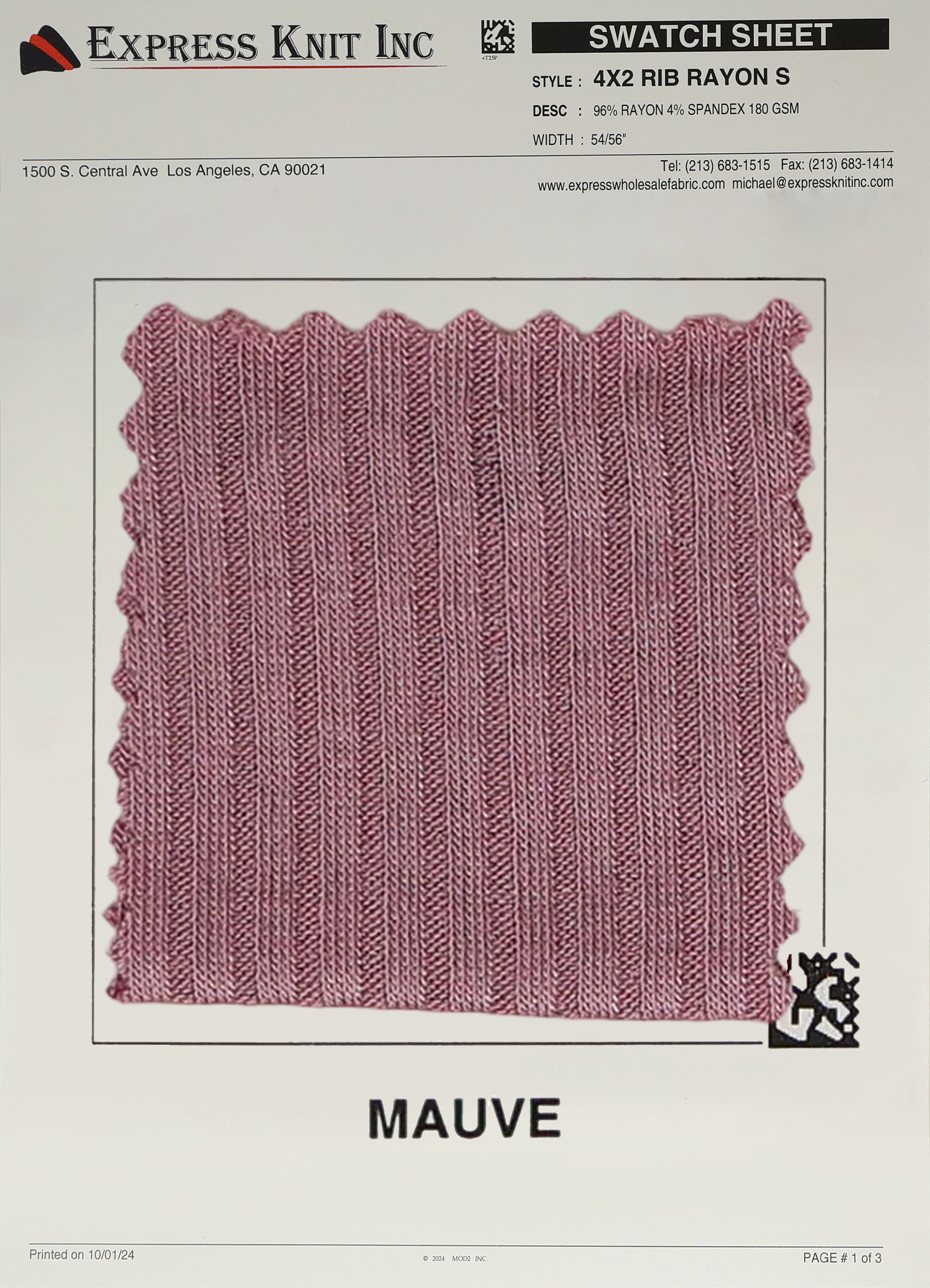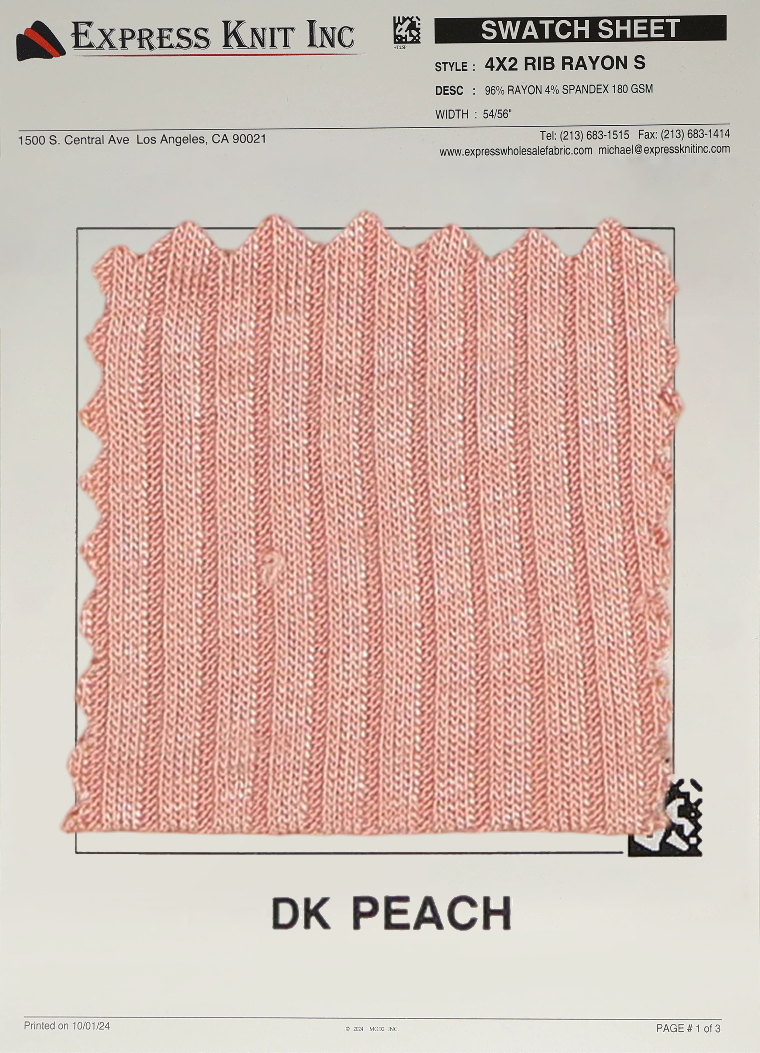 Elevate your inventory with our 4x2 Rib Rayon Spandex Knit Solid Fabric, crafted for luxurious softness, stretch, and style. With 96% Rayon and 4% Spandex, this fabric provides a lightweight, breathable feel at 180 GSM, ideal for creating comfortable and versatile garments. Its 4x2 rib texture adds depth and detail, while the 54-56 inch width makes it perfect for bulk orders and larger projects.