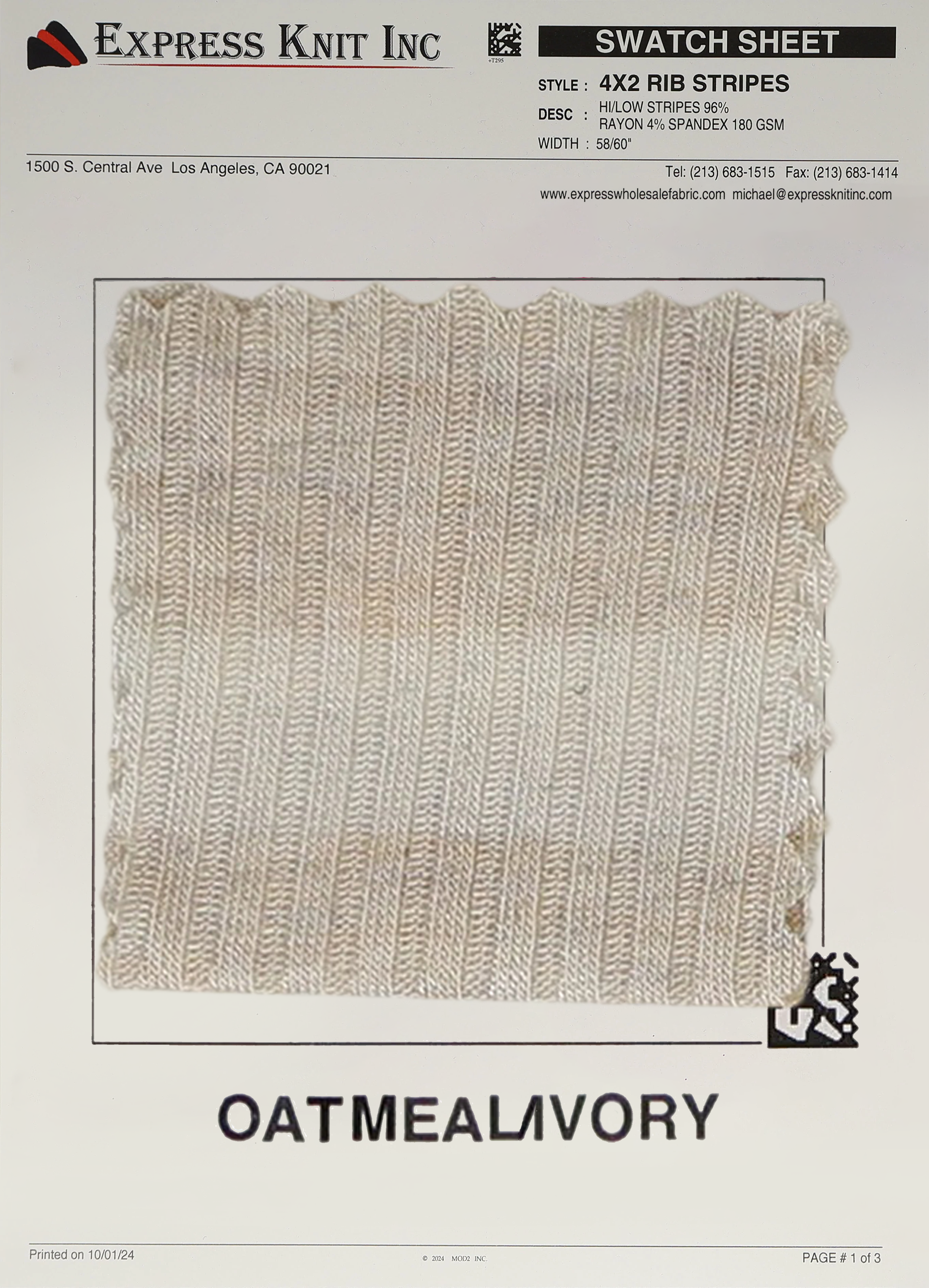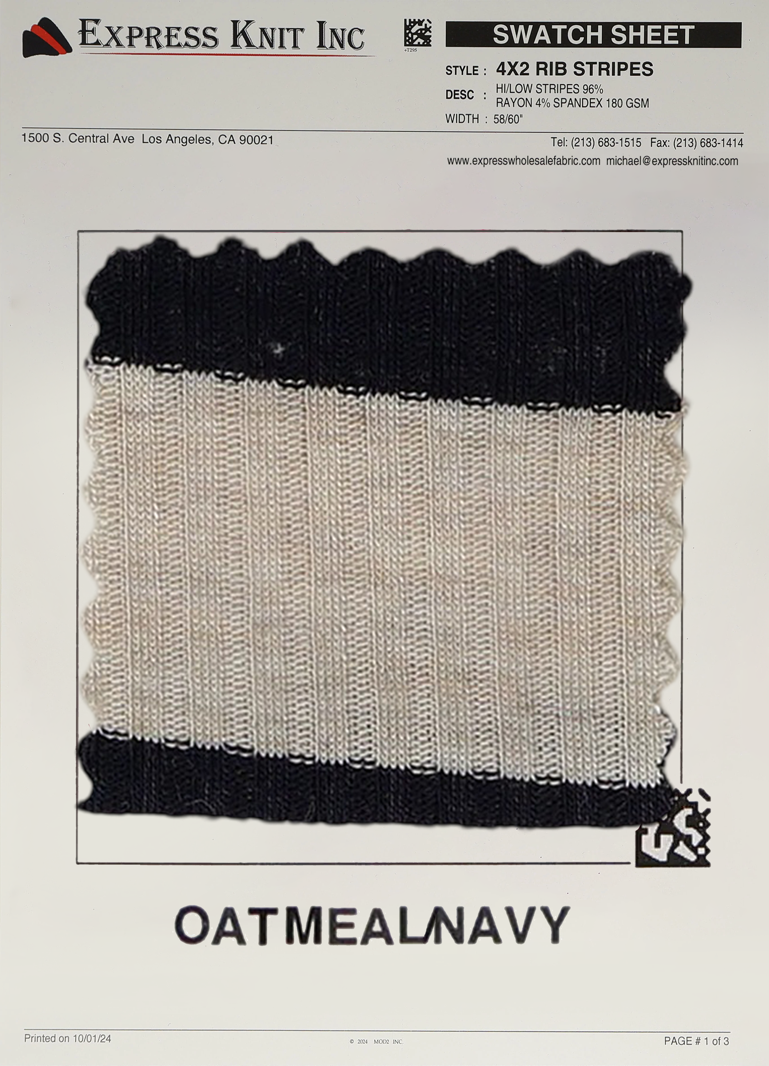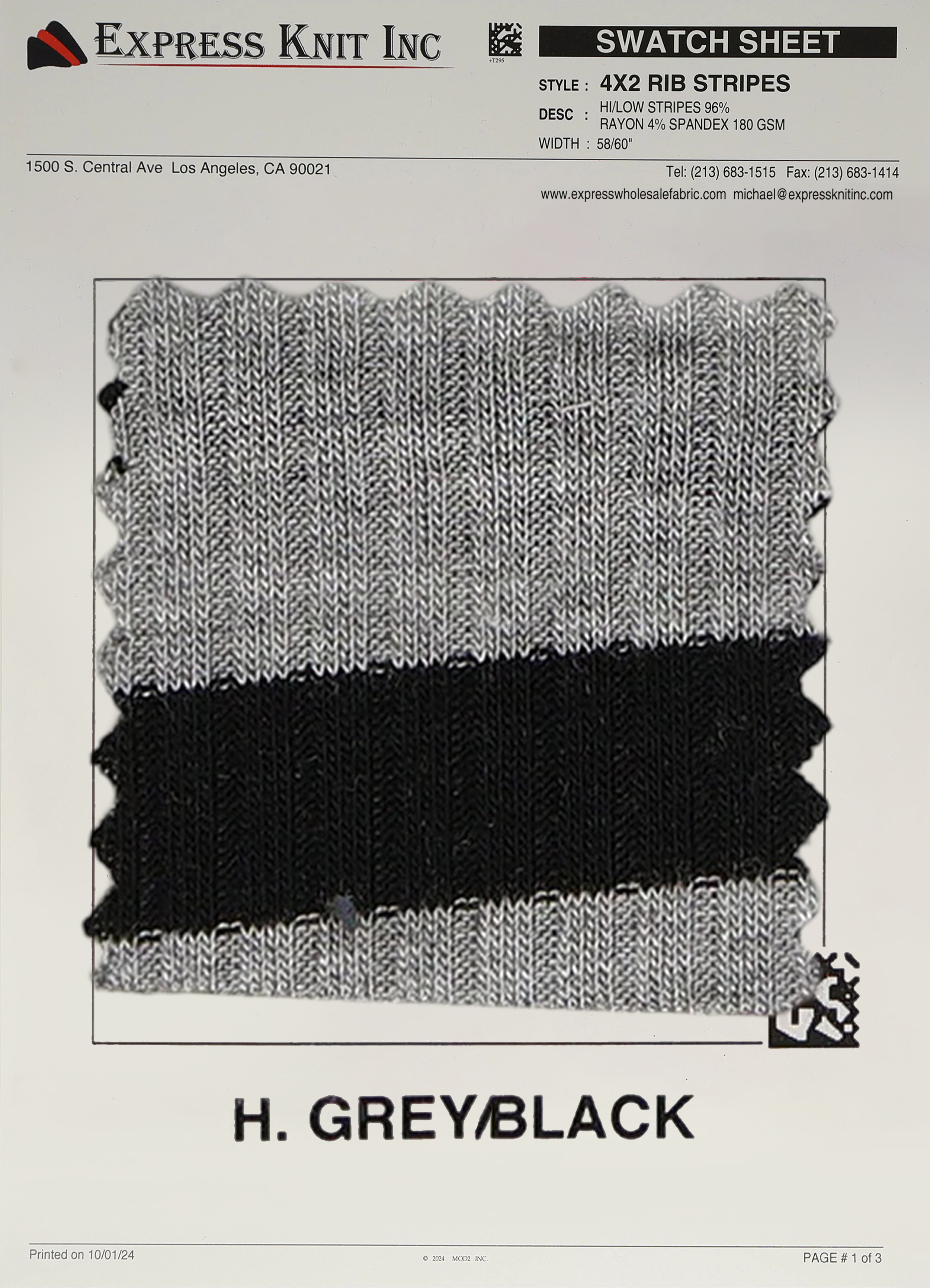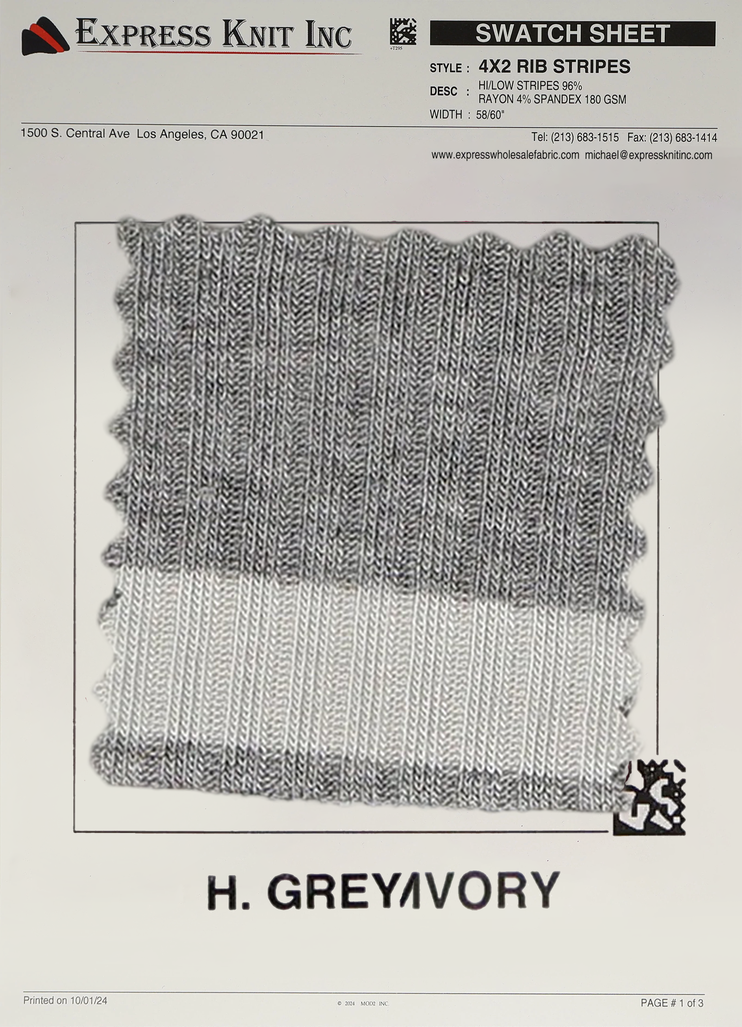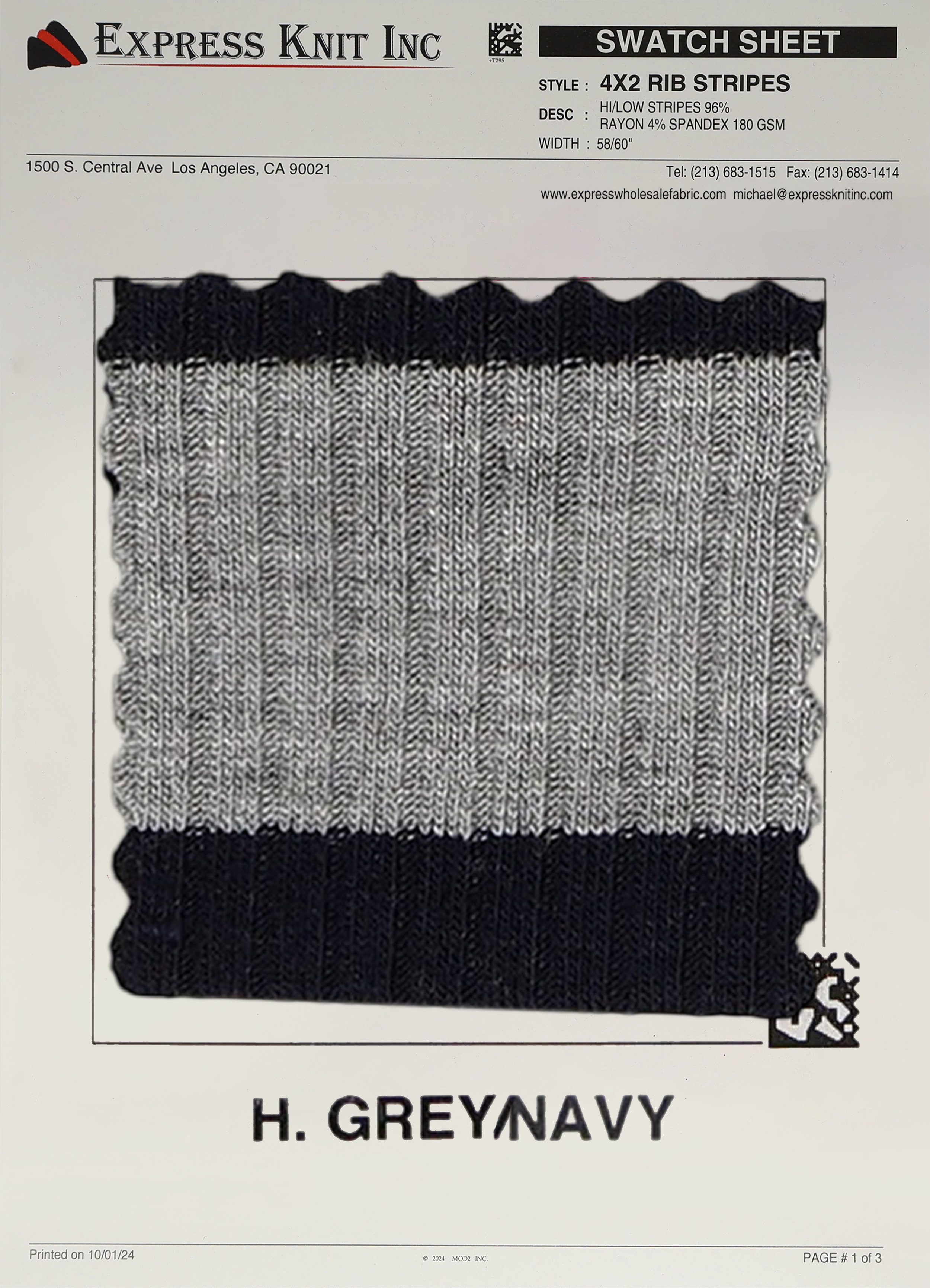 Elevate your fabric offerings with our 4x2 Rib Stripes Fabric, a stylish and modern ribbed knit featuring high/low stripe detailing. Crafted from a premium blend of 96% Rayon and 4% Spandex, this 180 GSM lightweight fabric is perfect for creating trendy, comfortable garments. With a 58-60 inch width, this fabric is ideal for bulk projects and wholesale orders.
