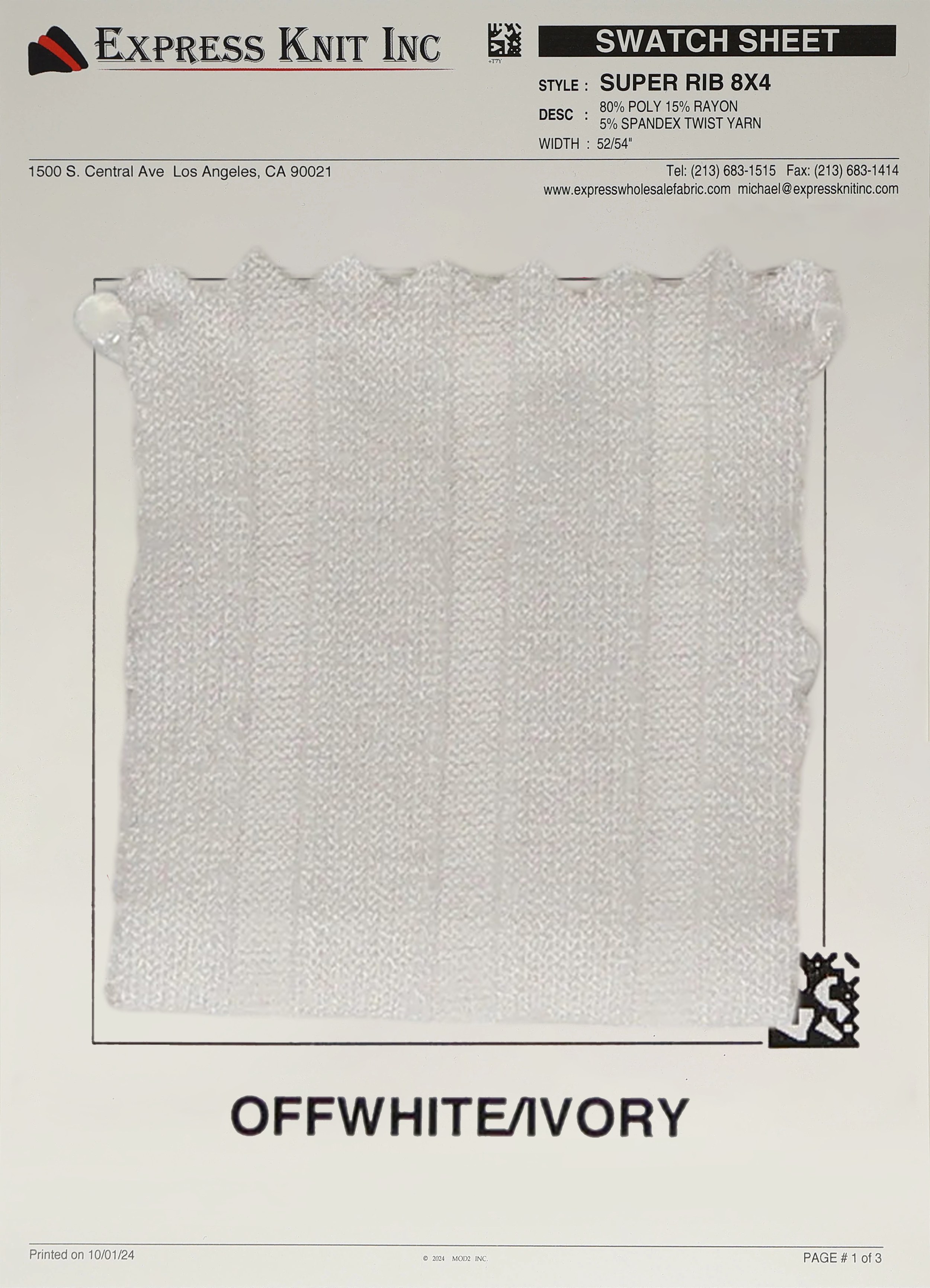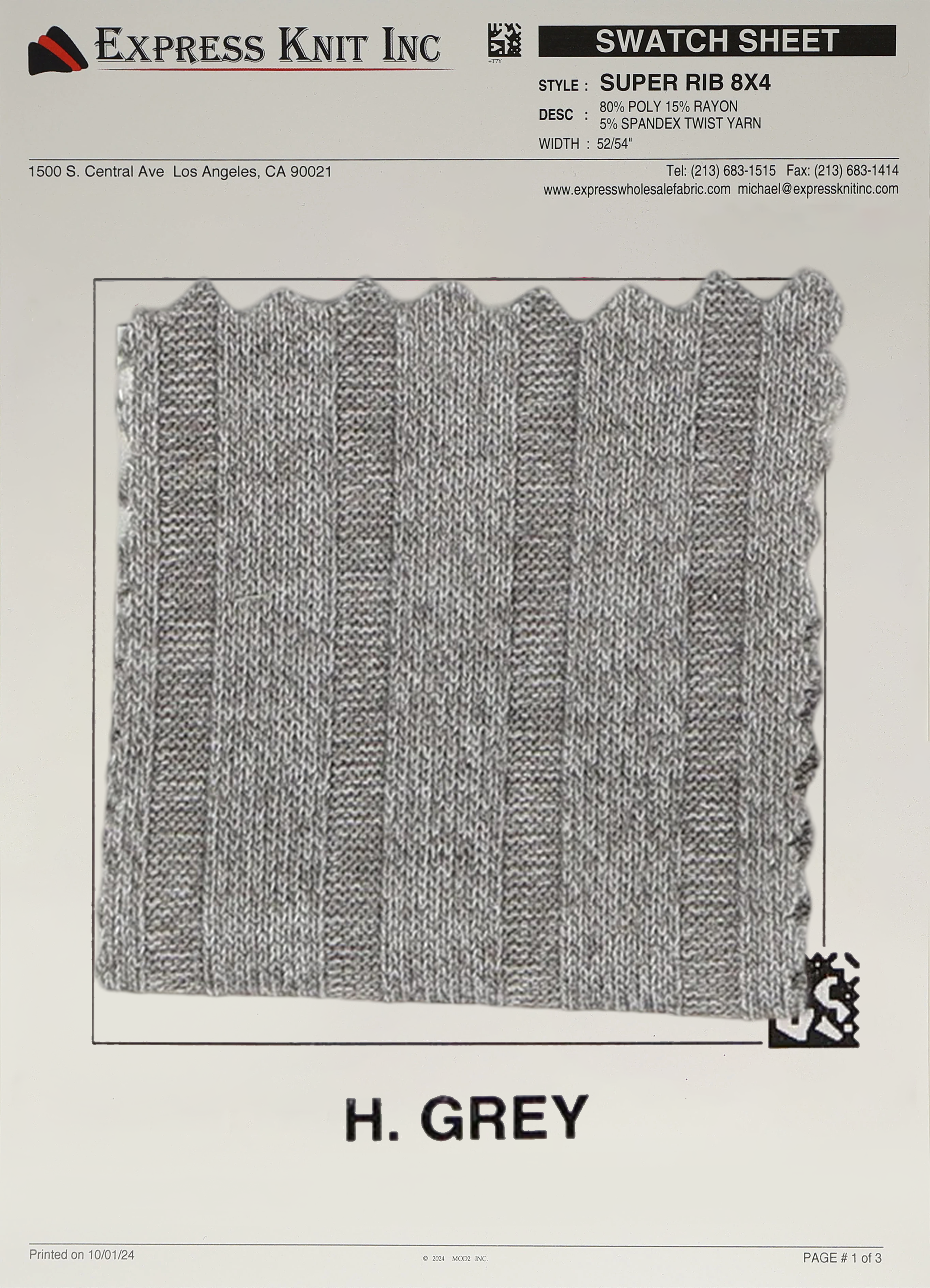 Upgrade your collection with Super Rib 8x4 Knit Fabric, designed for durability and style. Contact us today for wholesale pricing and bulk order inquiries!