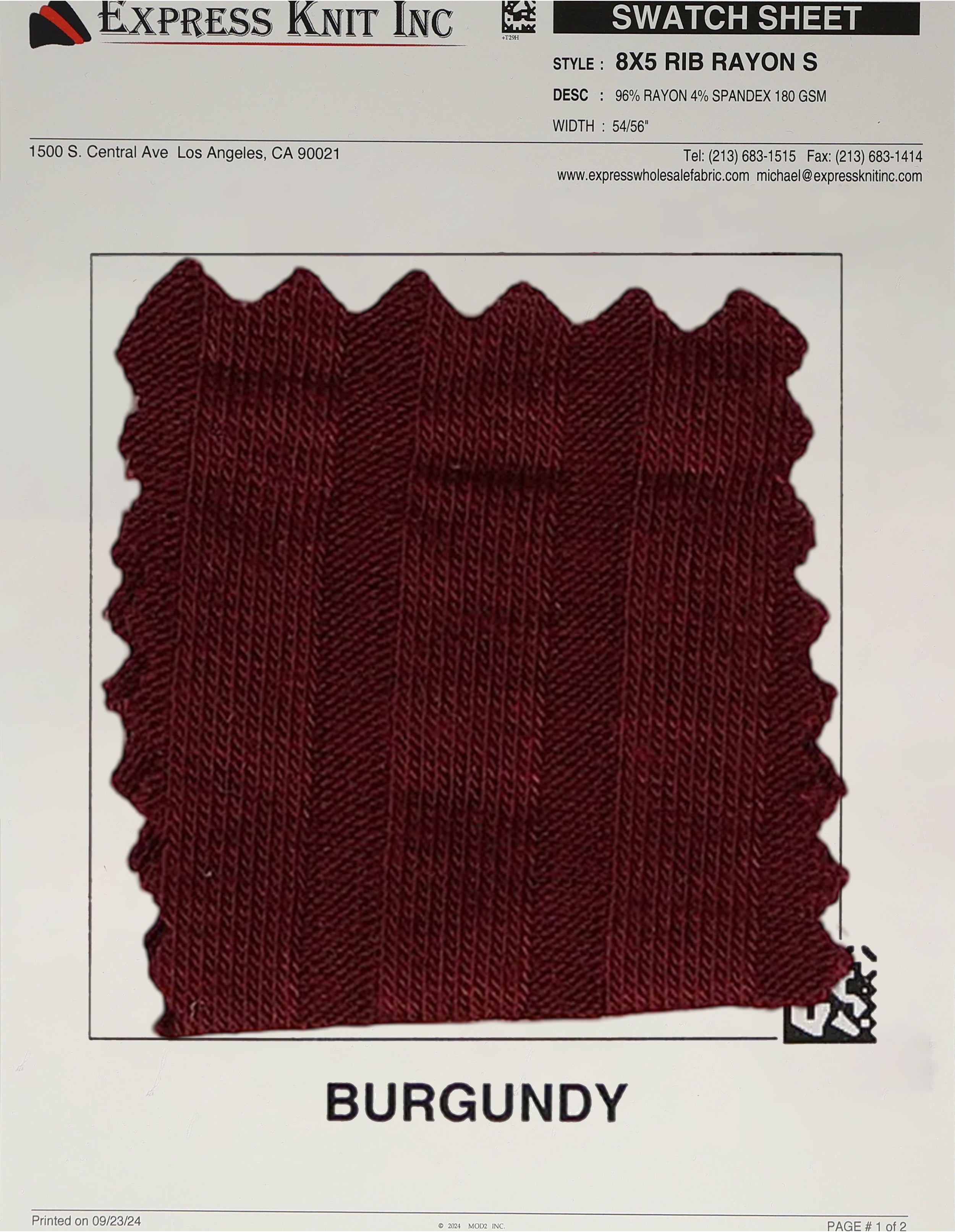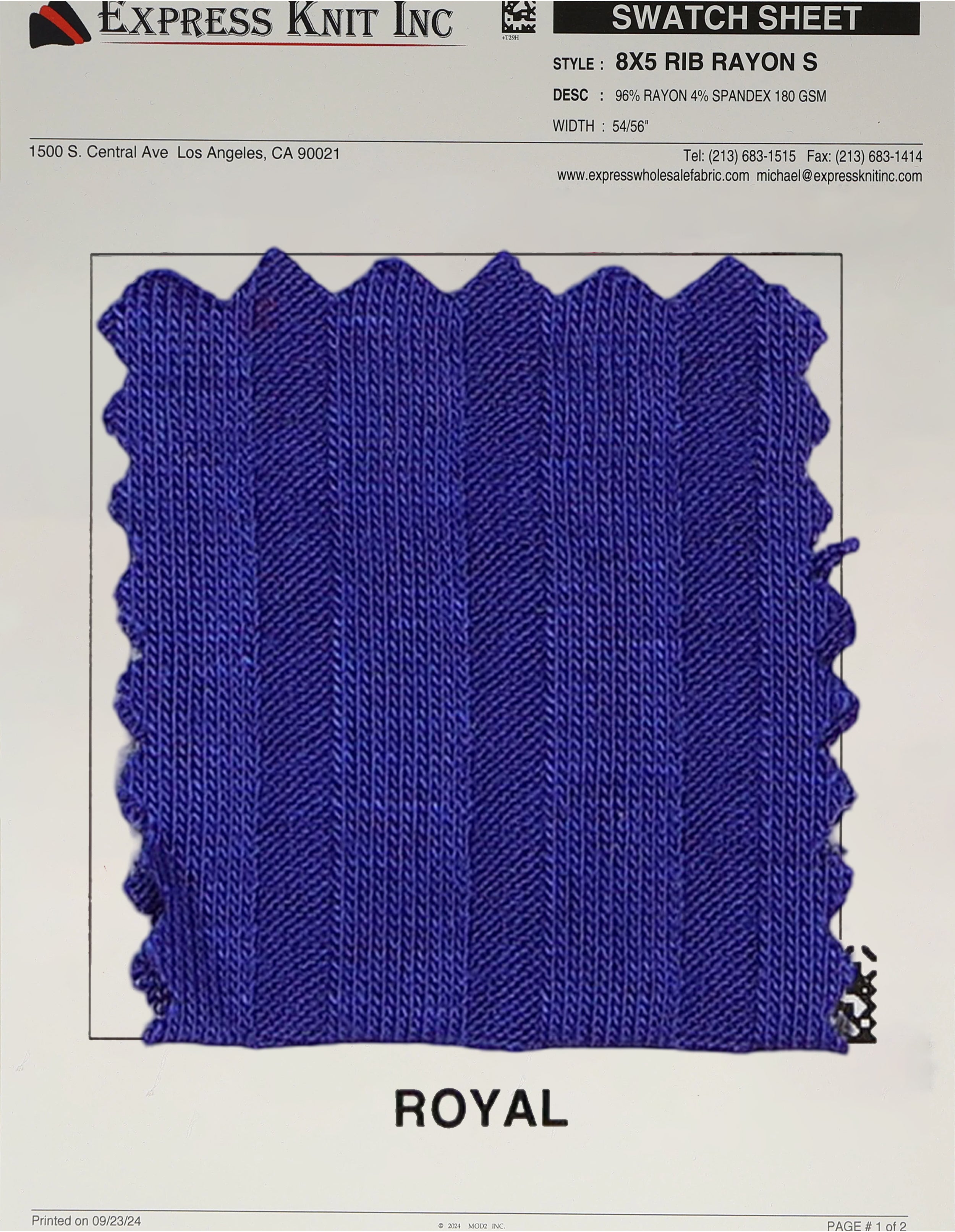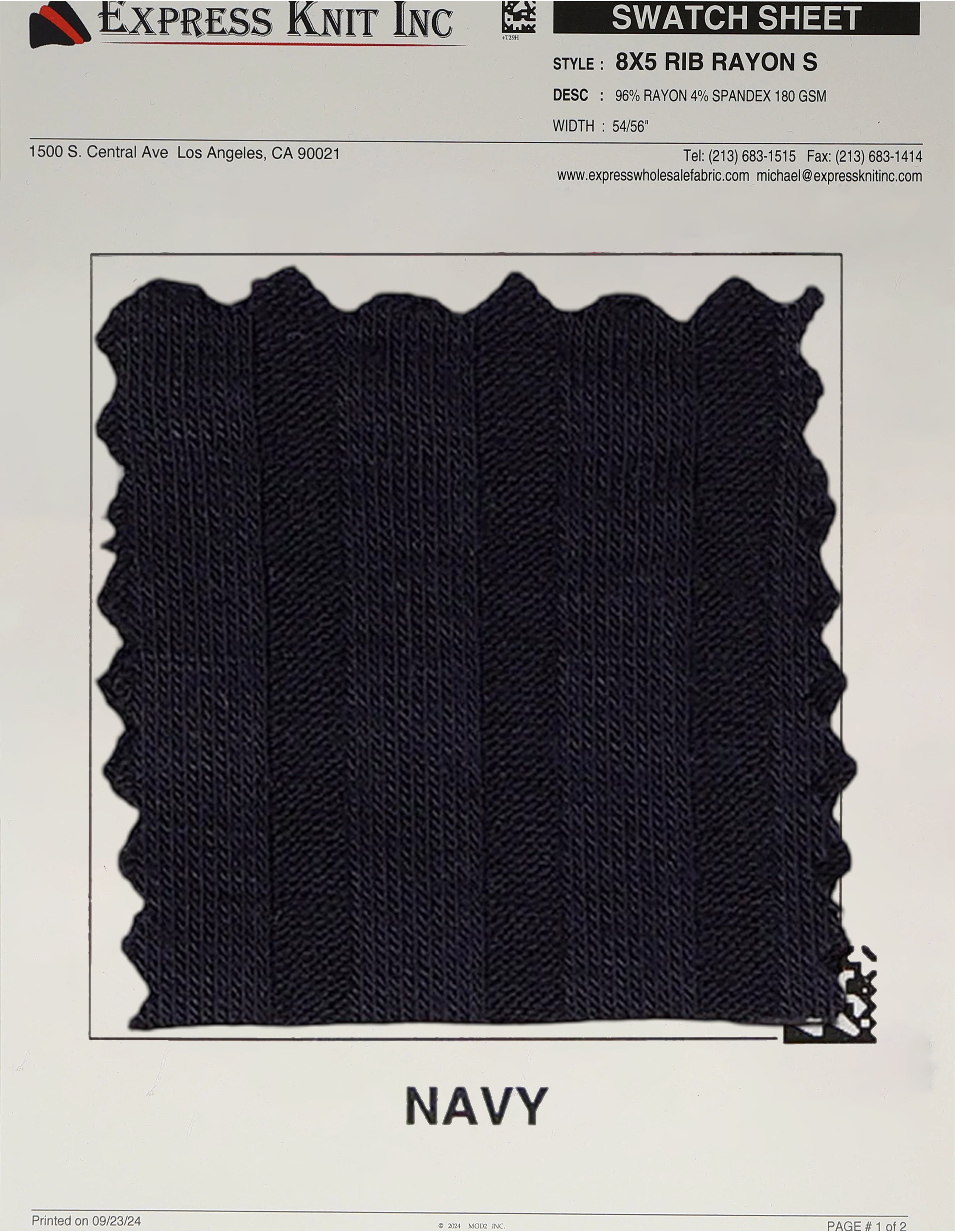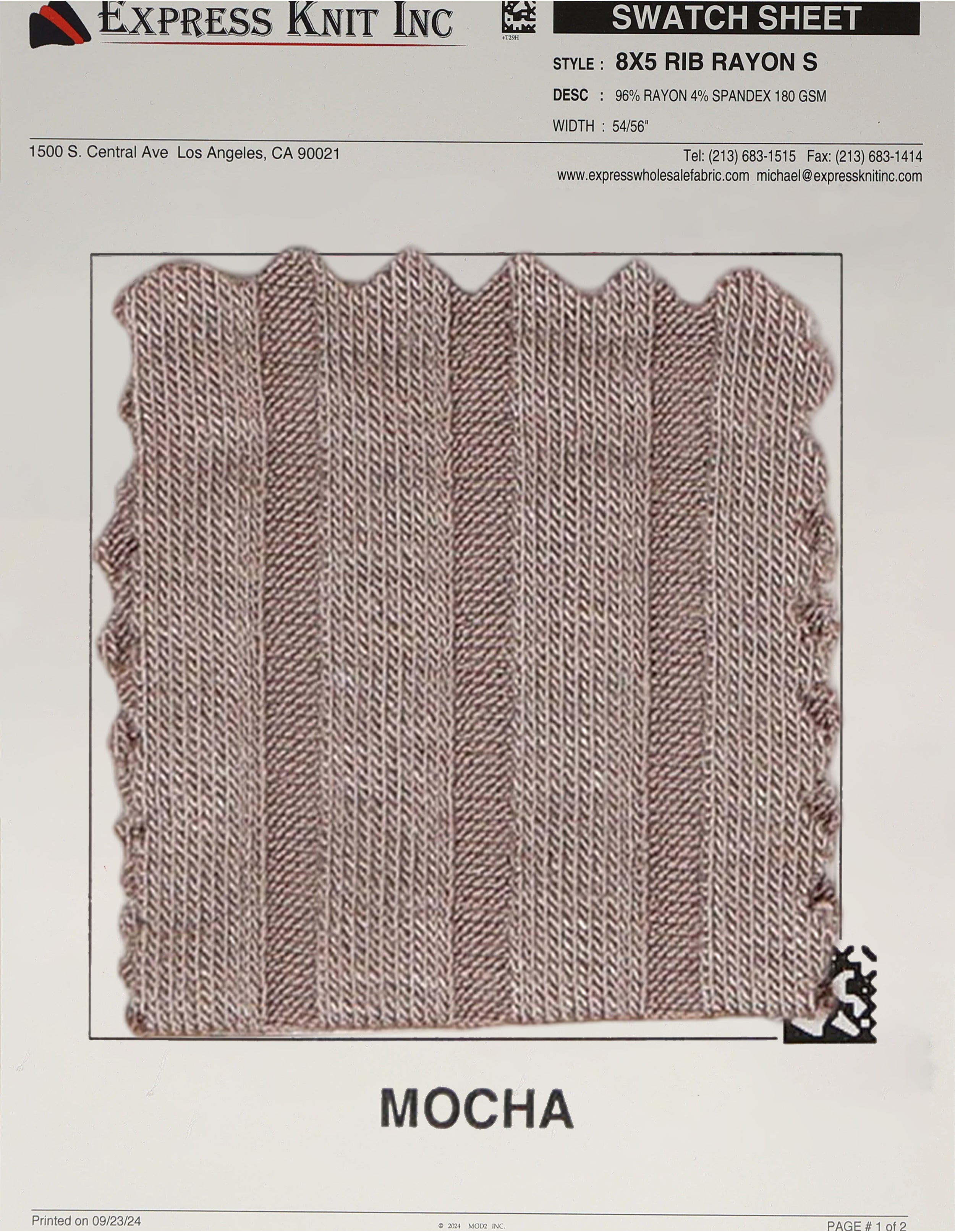 8x5 Rib Rayon Spandex Fabric