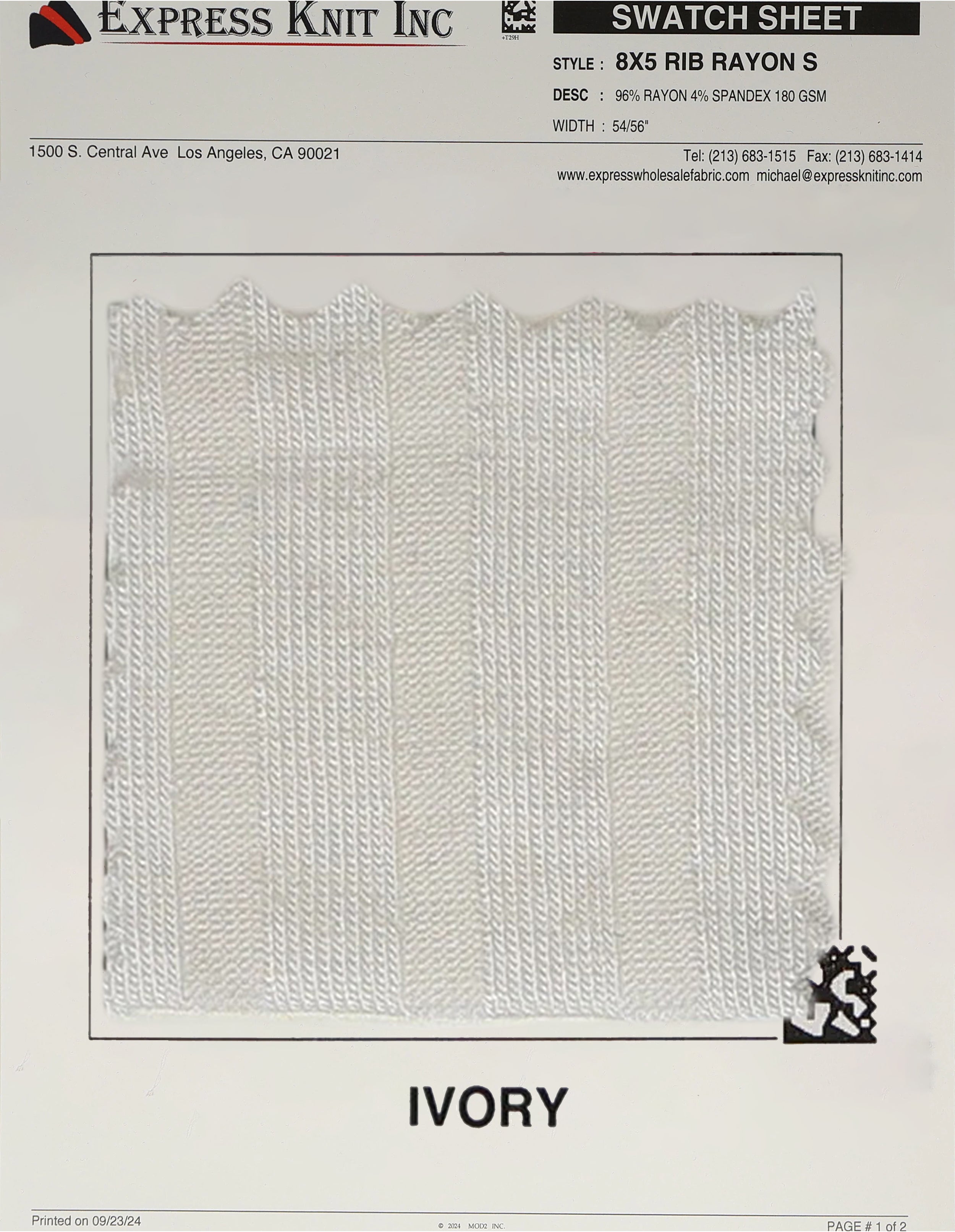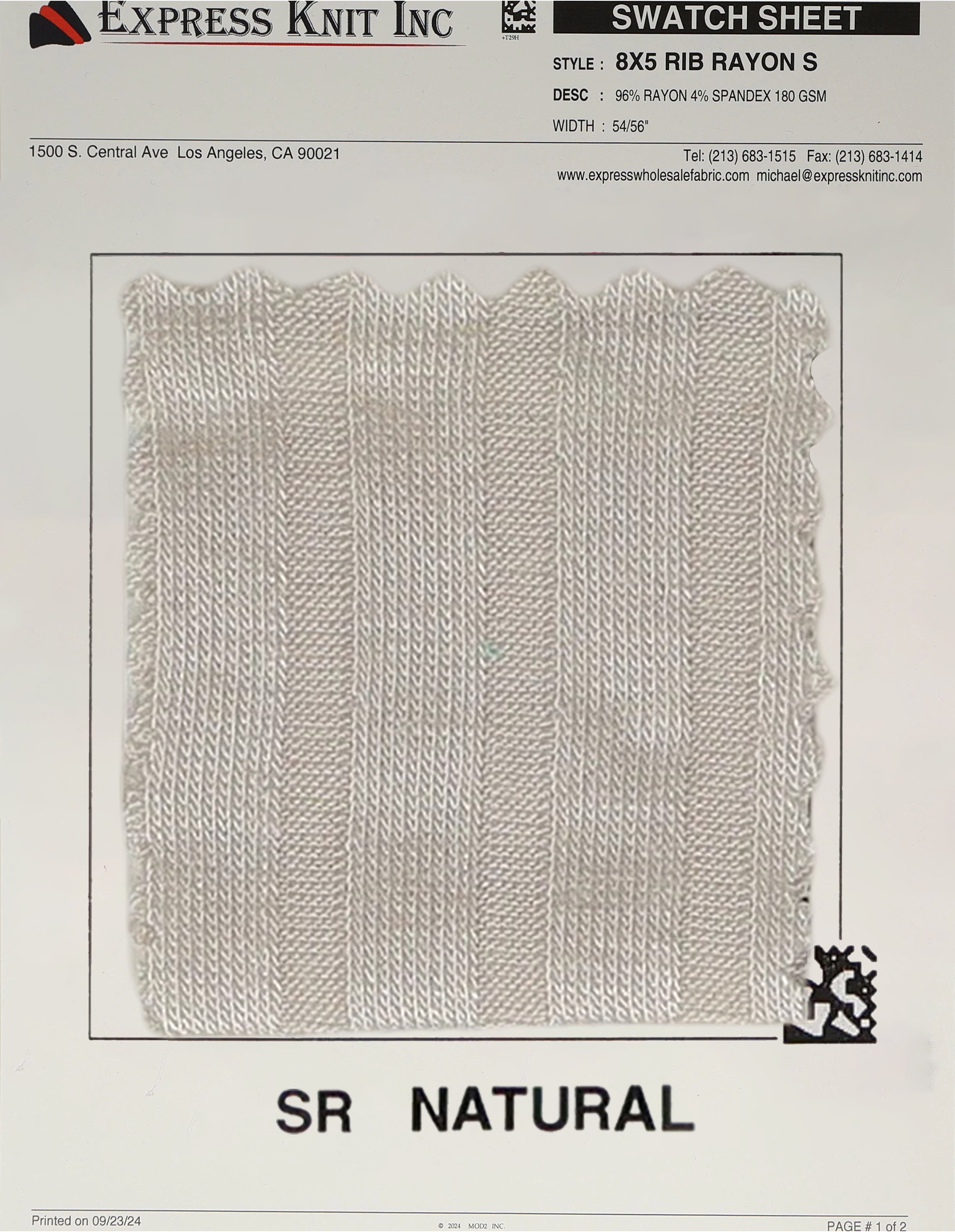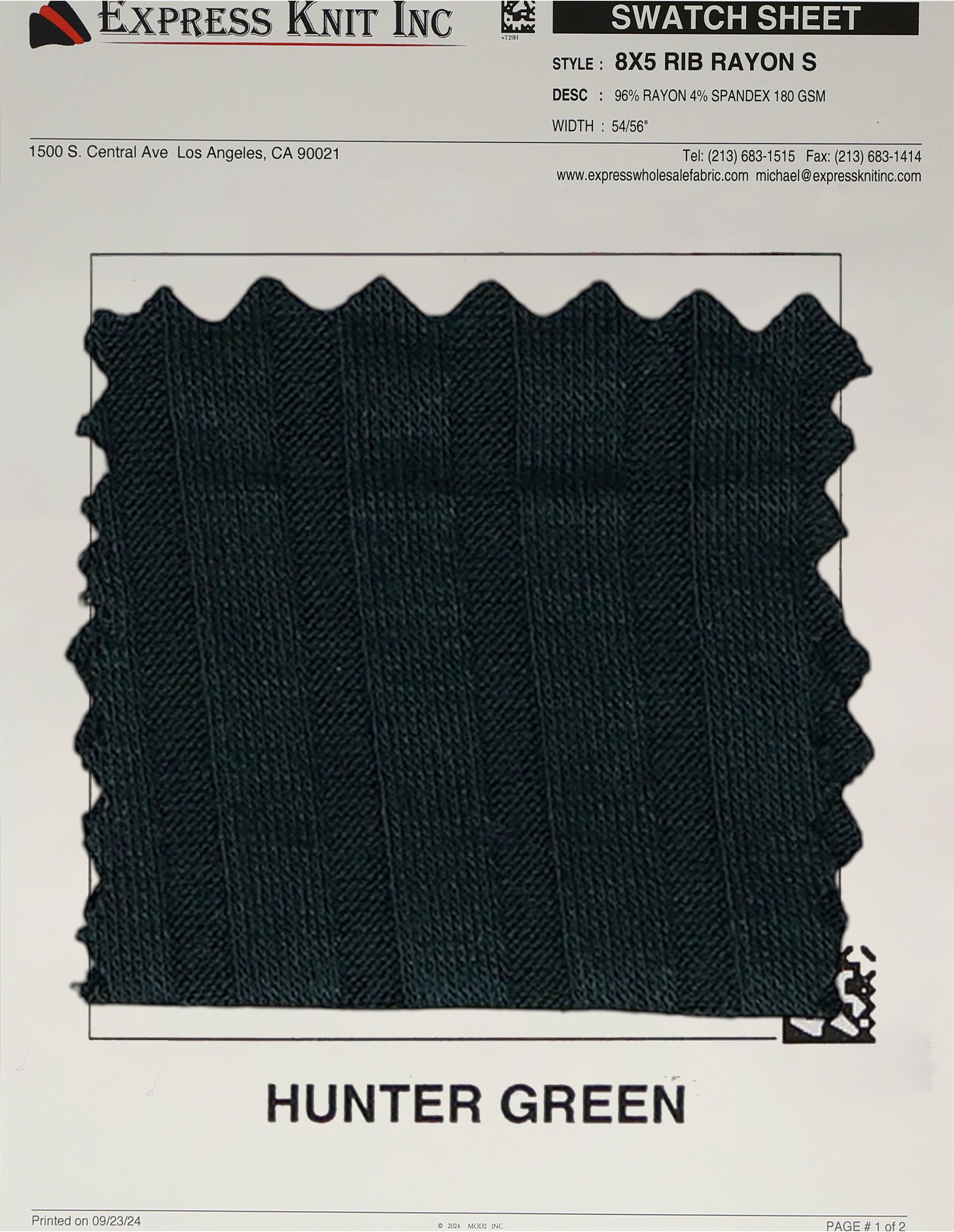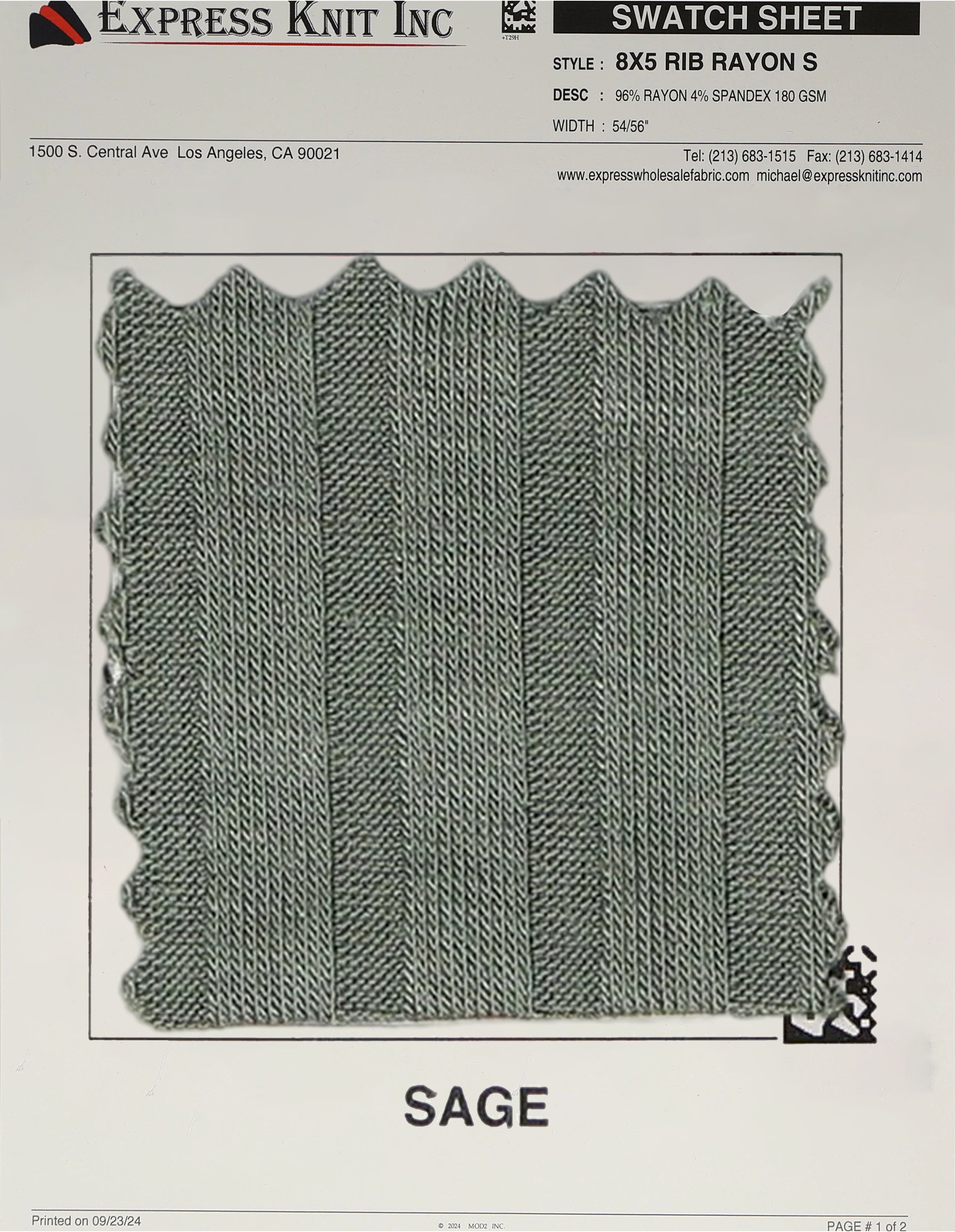 8x5 Rib Rayon Spandex Fabric