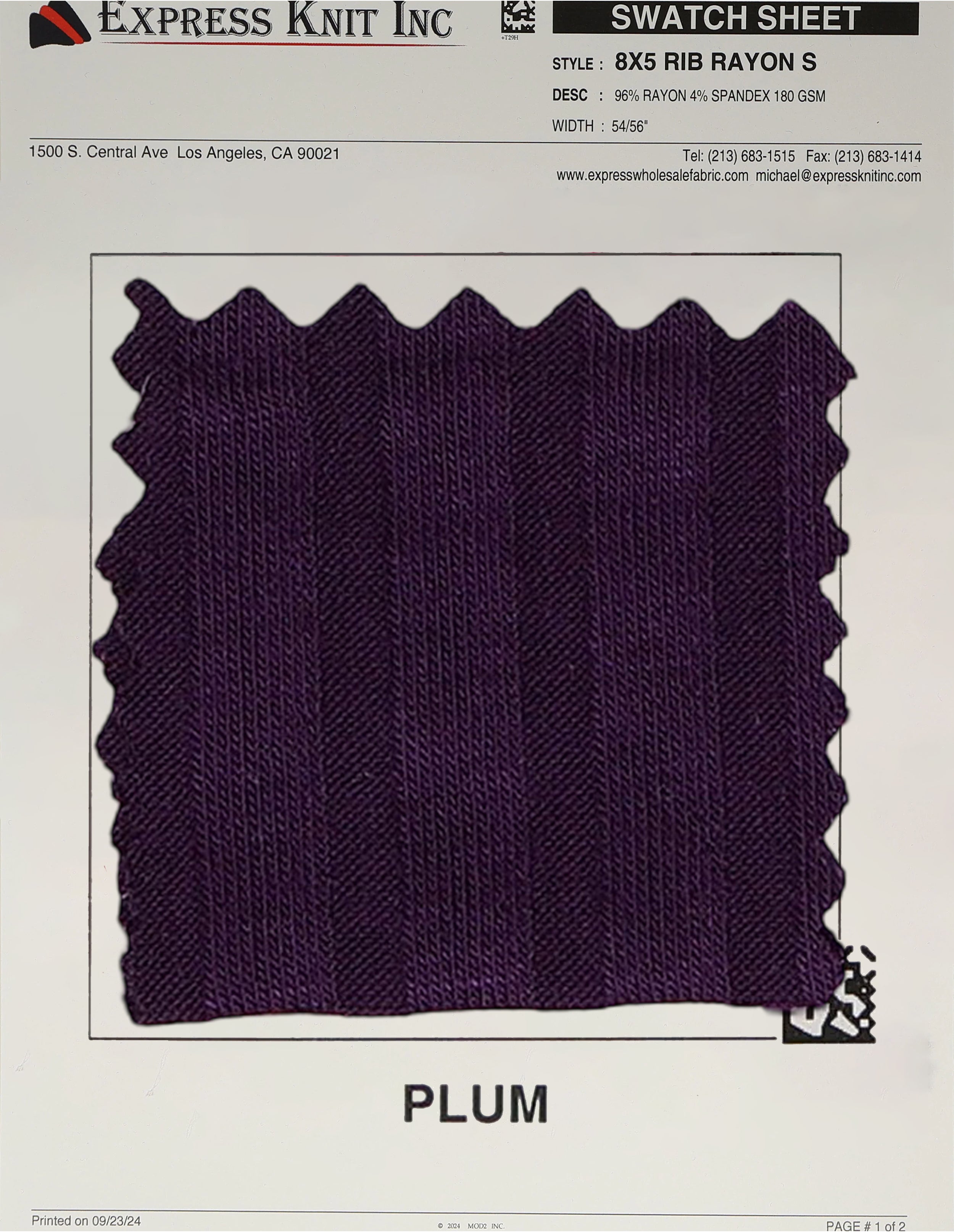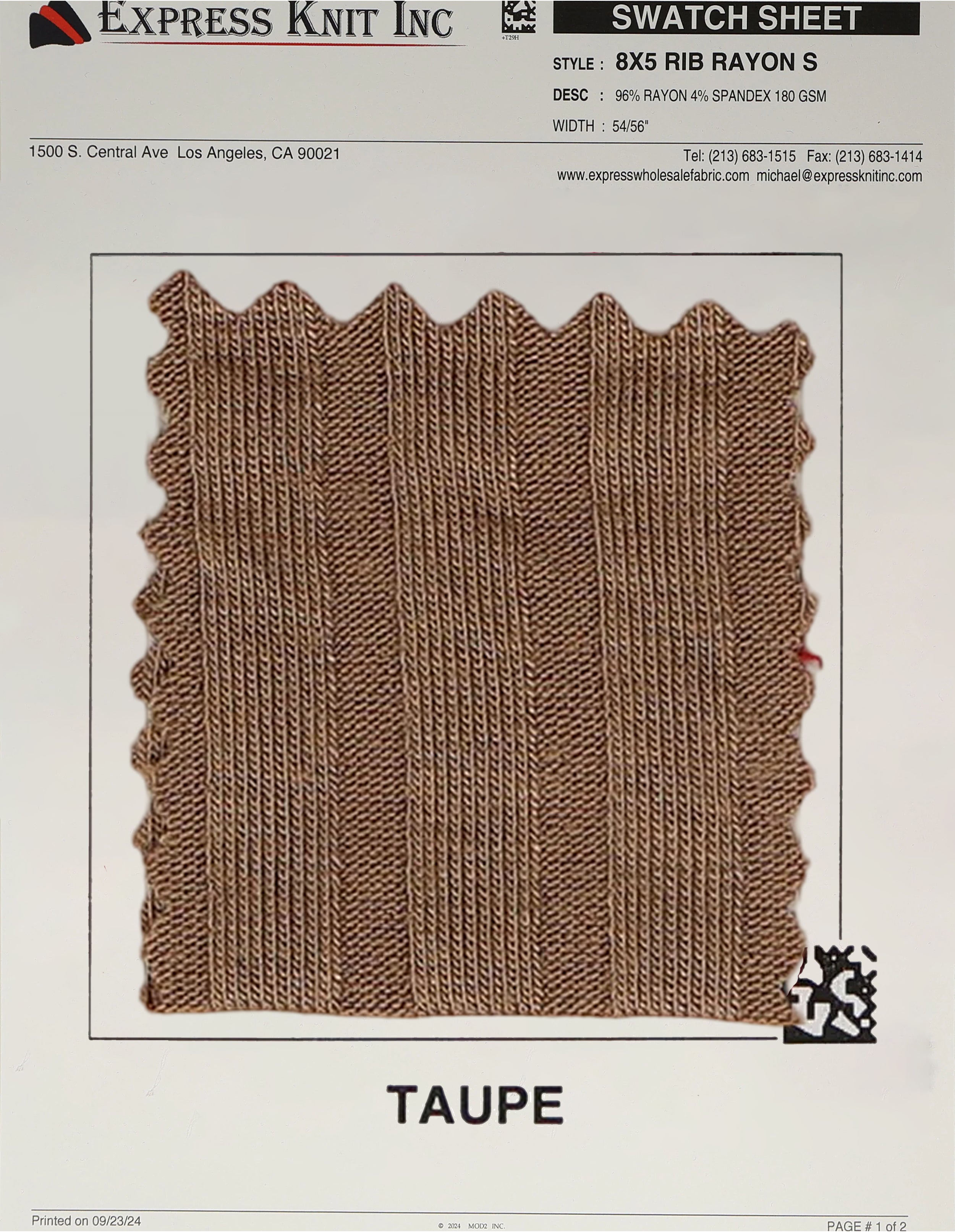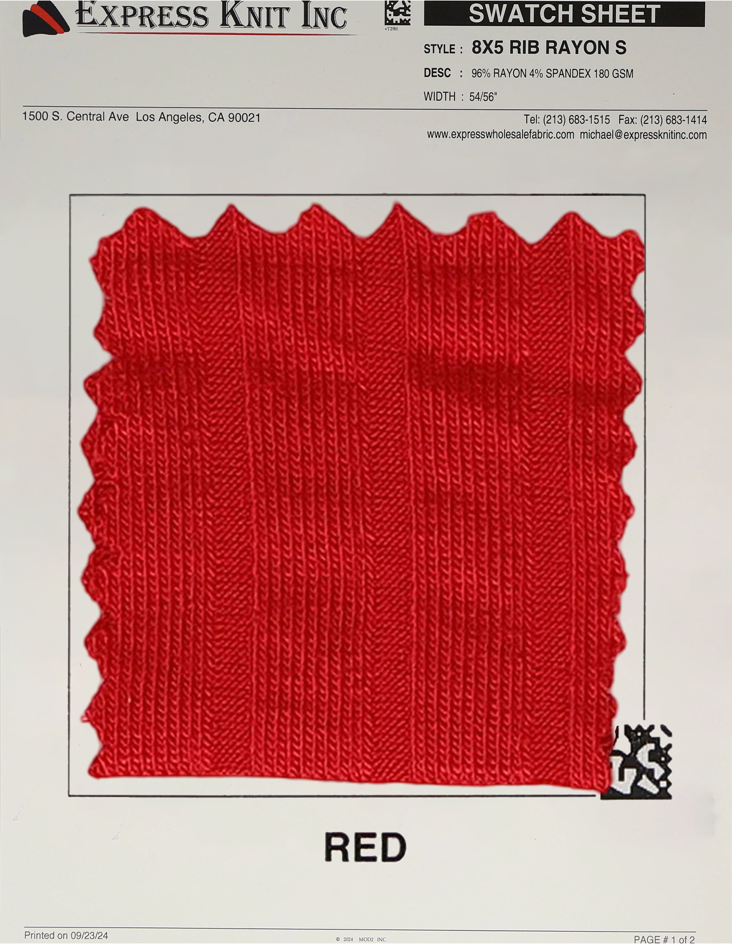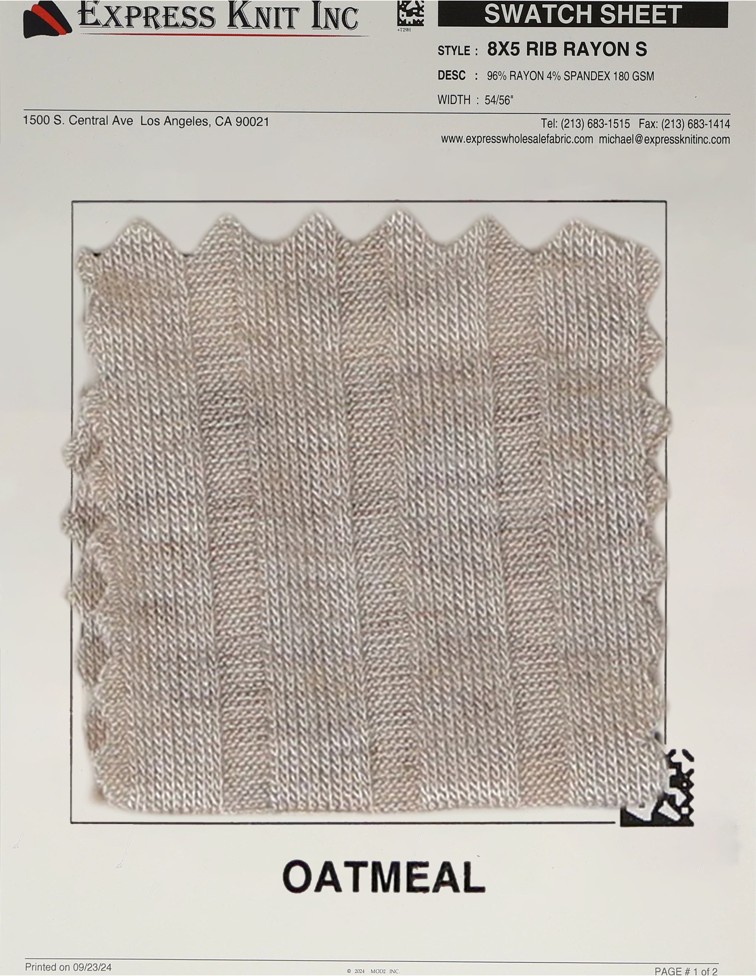 8x5 Rib Rayon Spandex Fabric