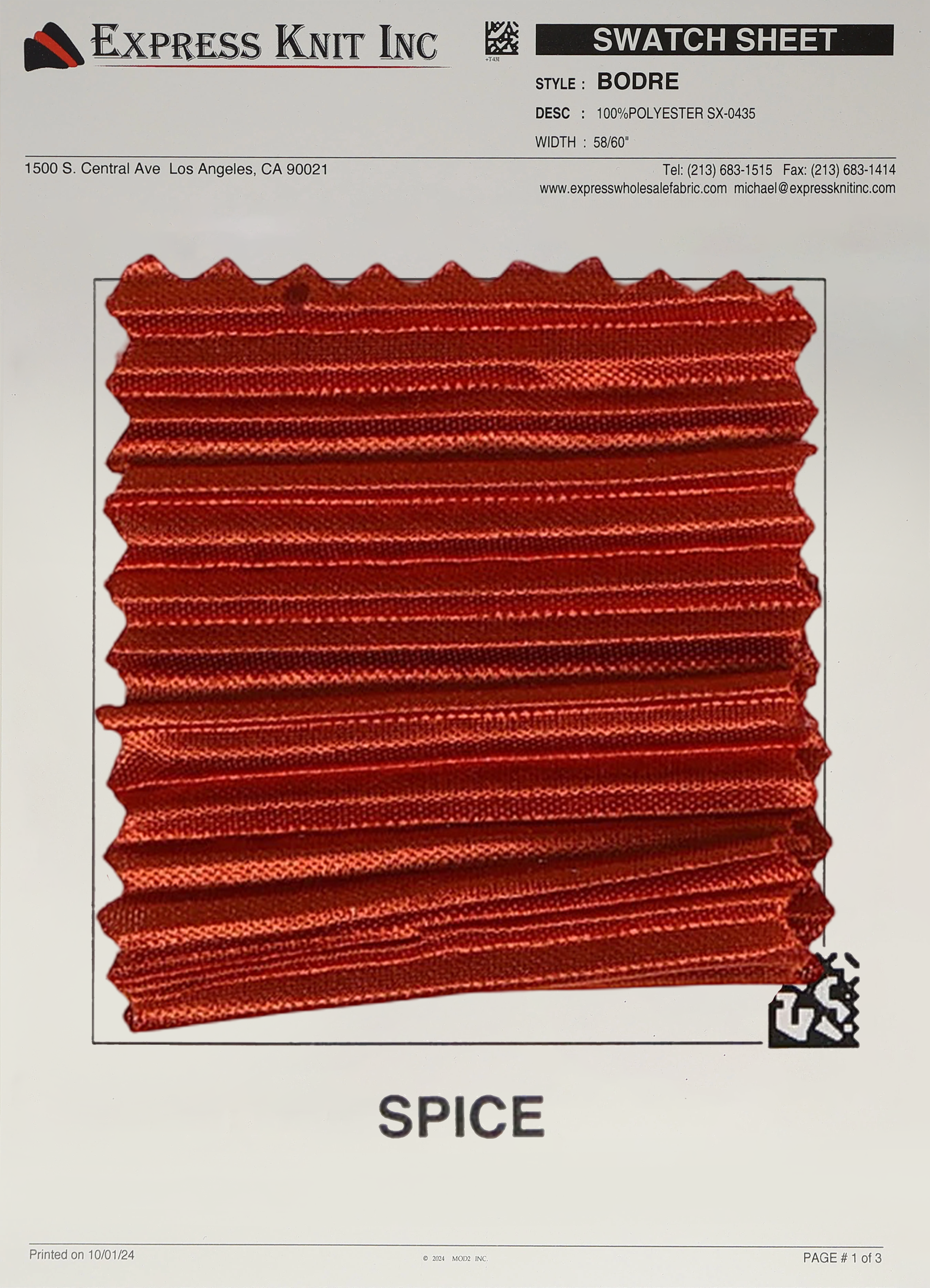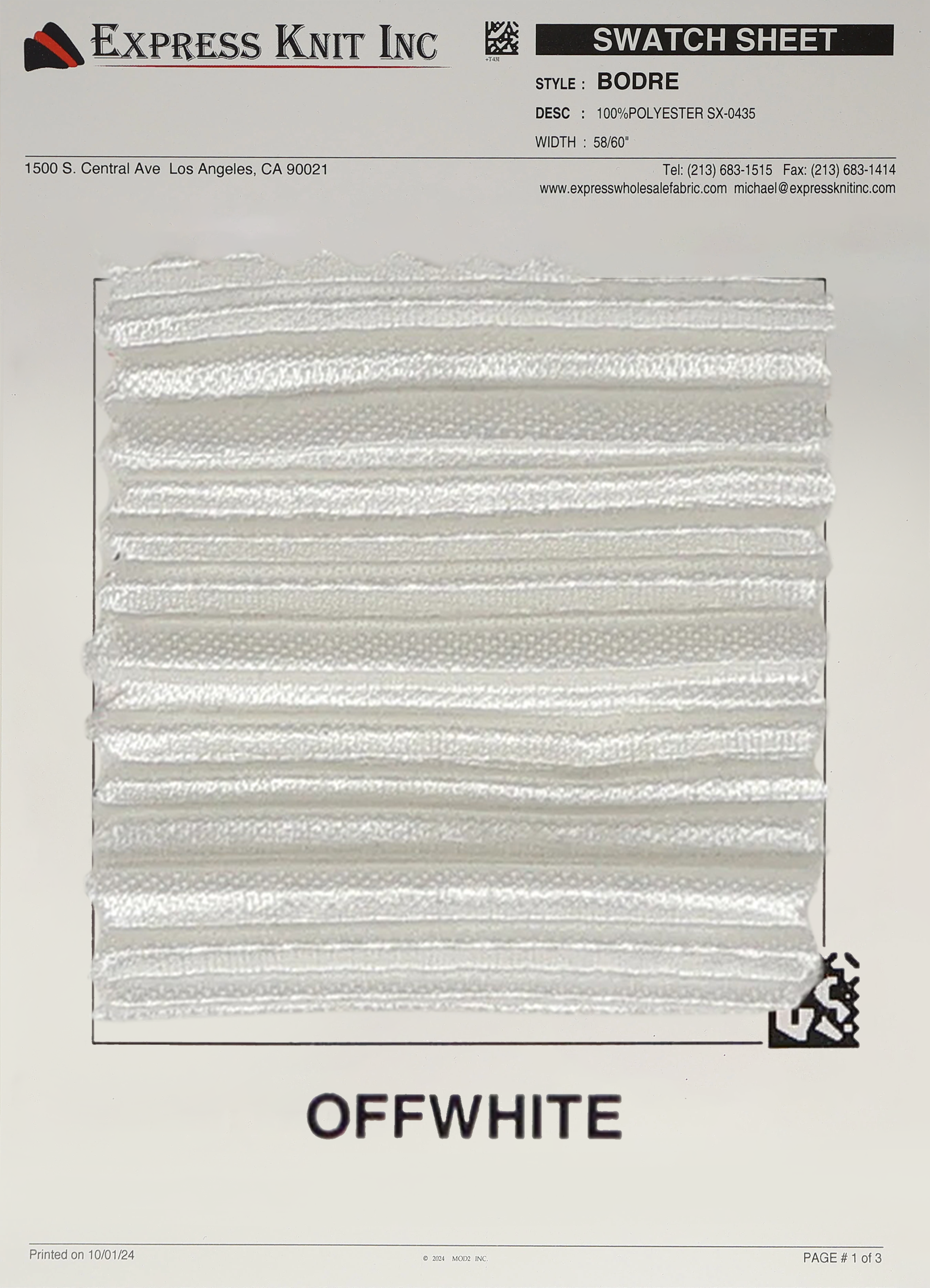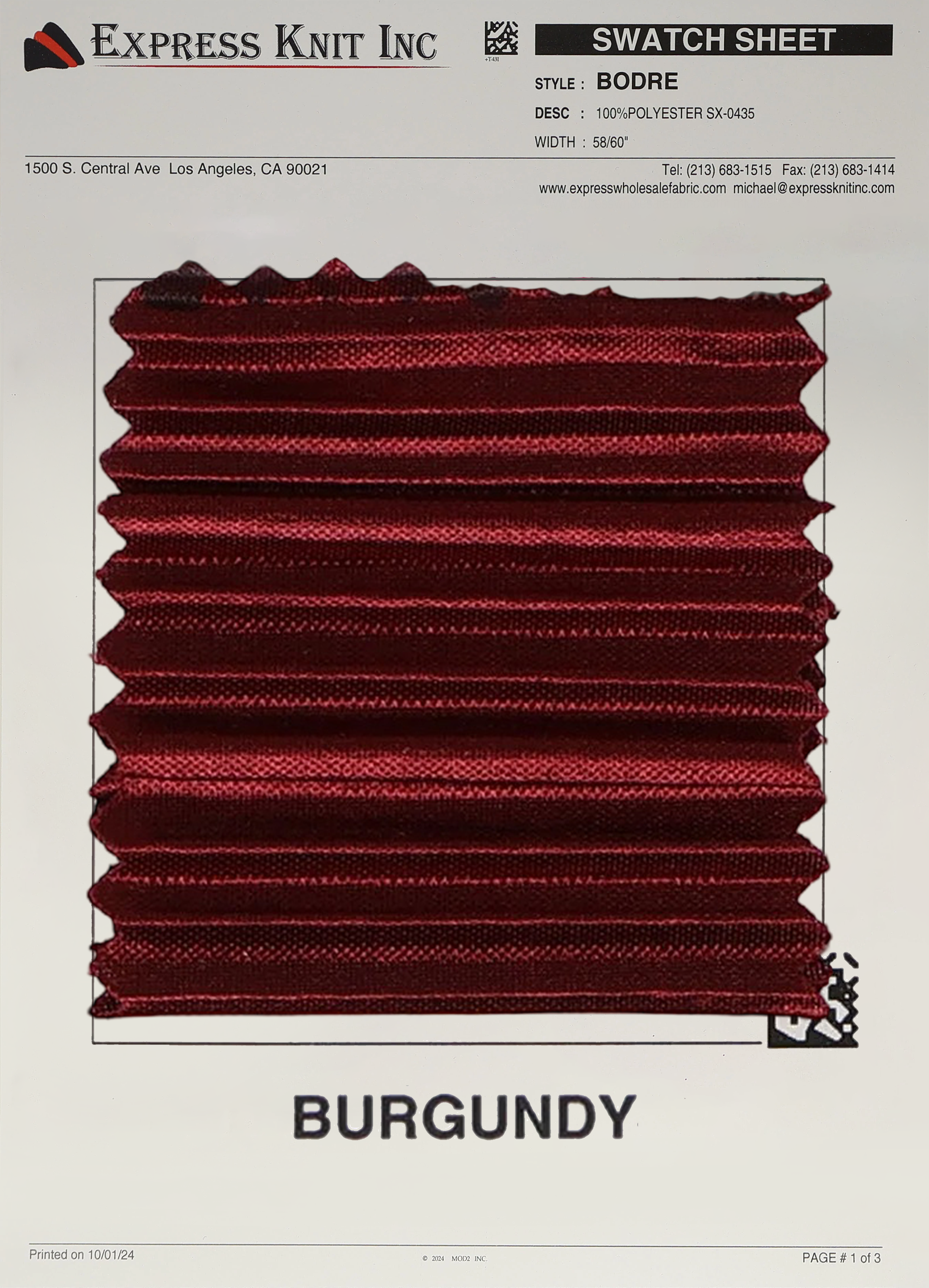 Looking for unique and durable fabric for your wholesale needs? Our Bodre Crinkle Fabric is a must-have for designers, brands, and businesses creating stylish and textured garments. This 100% polyester fabric features a 180 GSM weight, offering a lightweight yet substantial structure with 2-way stretch for comfortable movement and a flattering drape. The elegant crinkle texture adds depth and sophistication to every design, making it a top choice for fashion-forward collections.