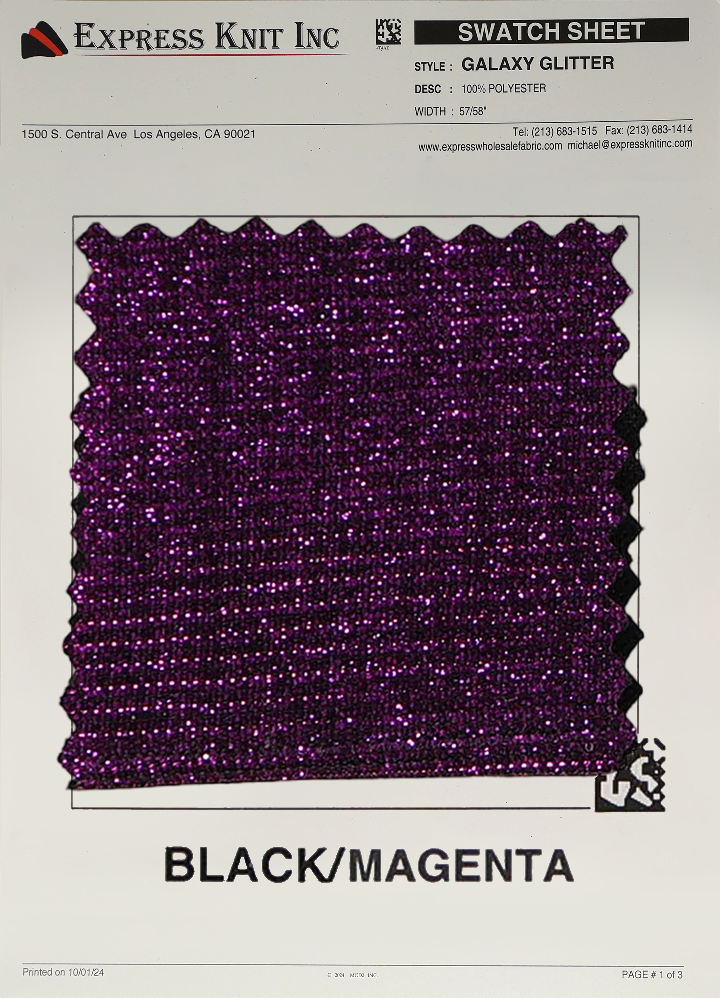 Bring sparkle and glamour to your wholesale fabric offerings with our Galaxy Glitter Fabric! This eye-catching fabric is made from 100% polyester and features a dazzling glitter finish, making it perfect for designs that need an extra touch of sparkle. With a 57/58-inch width, this fabric is versatile and suitable for various applications, from fashion to event decor.