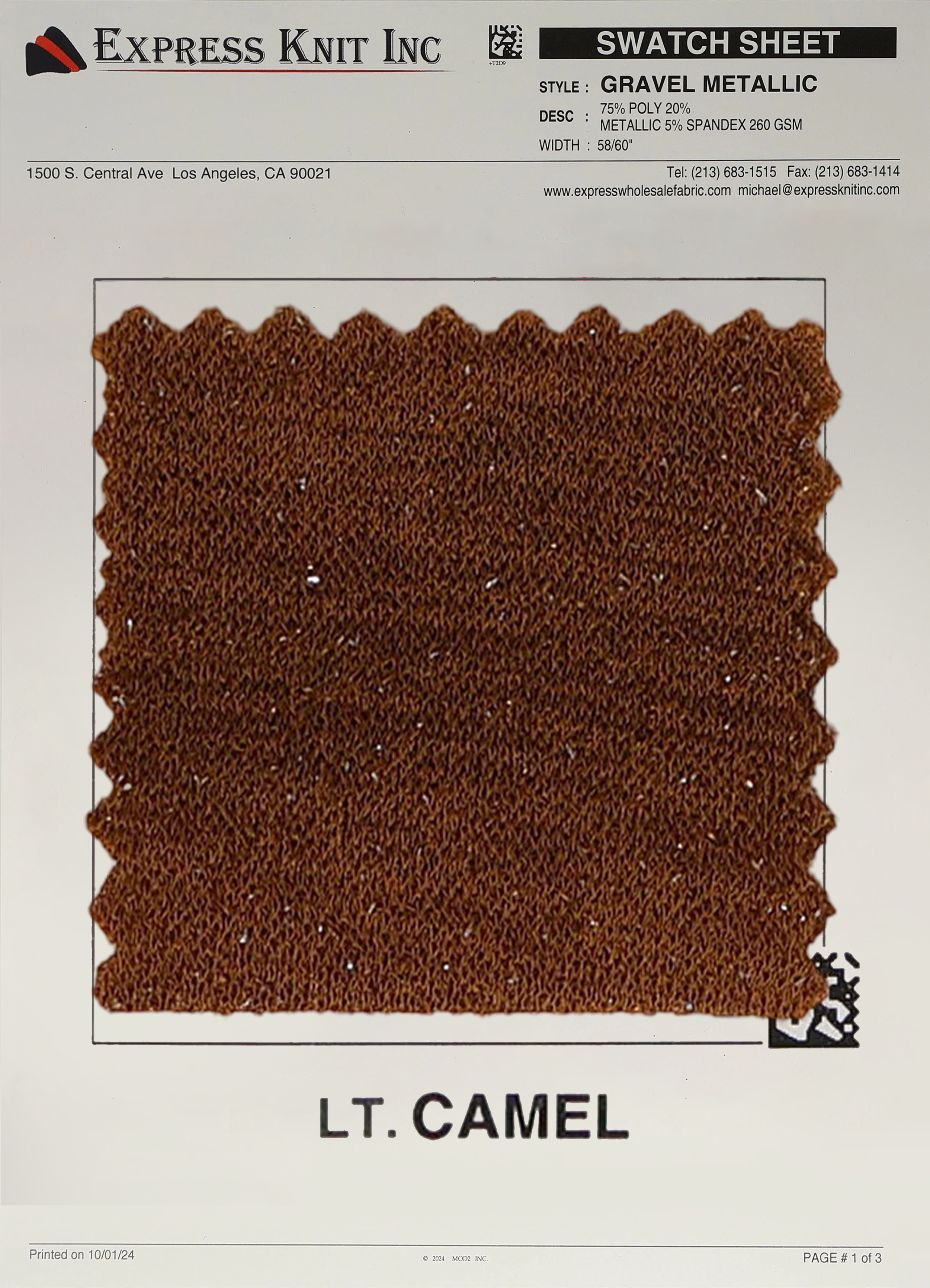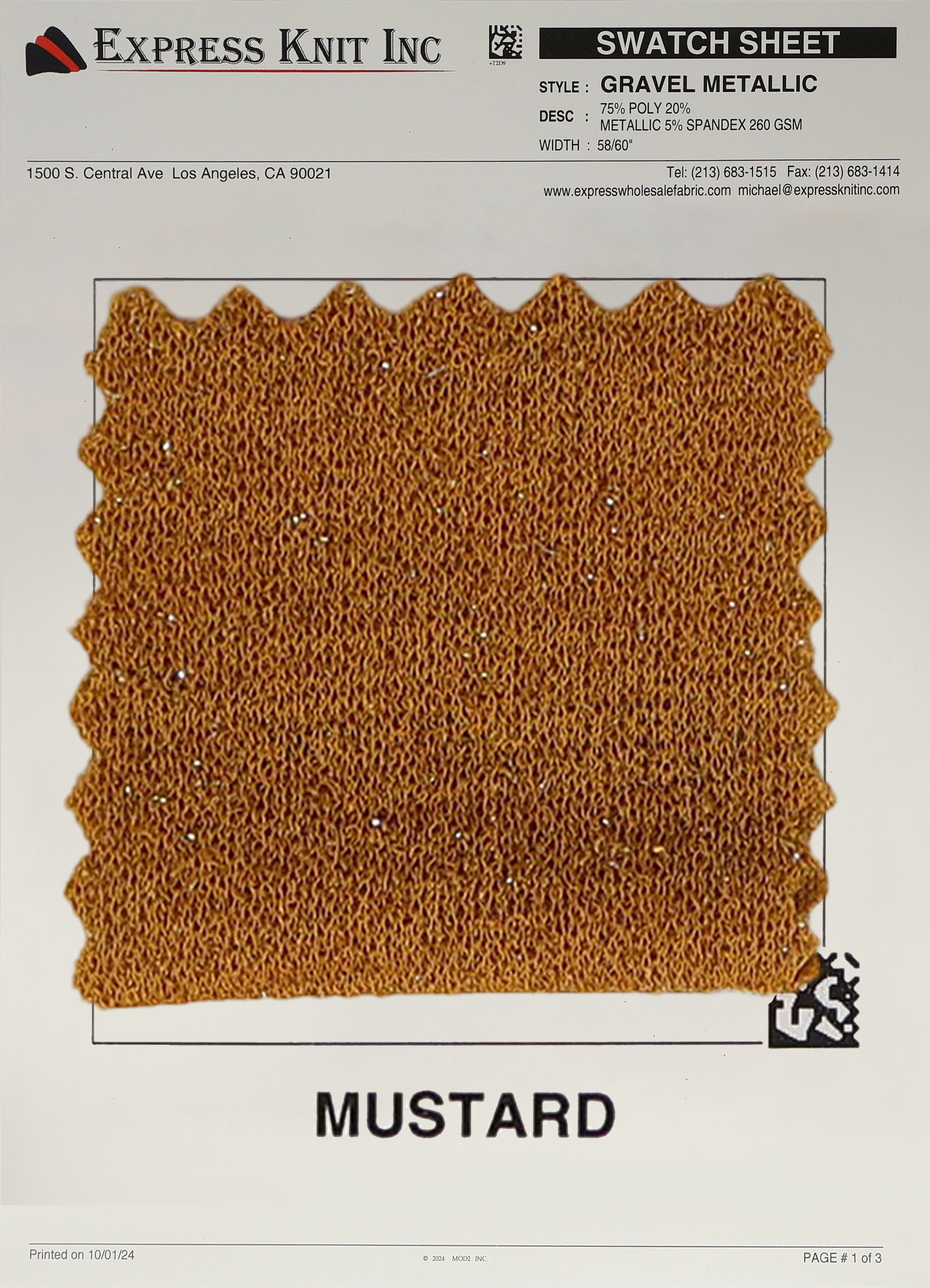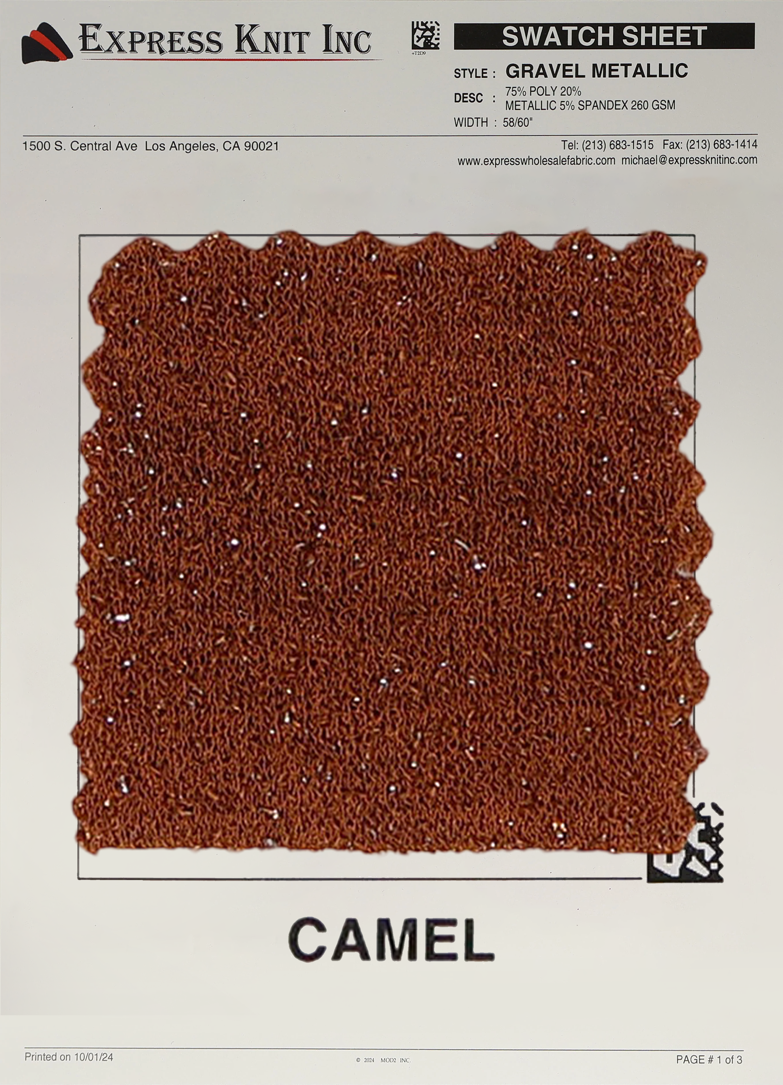 Add a touch of shine and durability to your projects with our Gravel Metallic Fabric. Available in stunning shades like Mauve, Lt. Camel, Fur Teal, Rust, Mustard, Olive, RP Rust, Royal, Red, Camel, Magenta, Hunter Green, Burgundy, Navy, and Black, this fabric is perfect for creating vibrant and glamorous designs. The metallic threads woven into the fabric add an elegant sparkle to any project, making it ideal for fashion, home decor, and crafting.