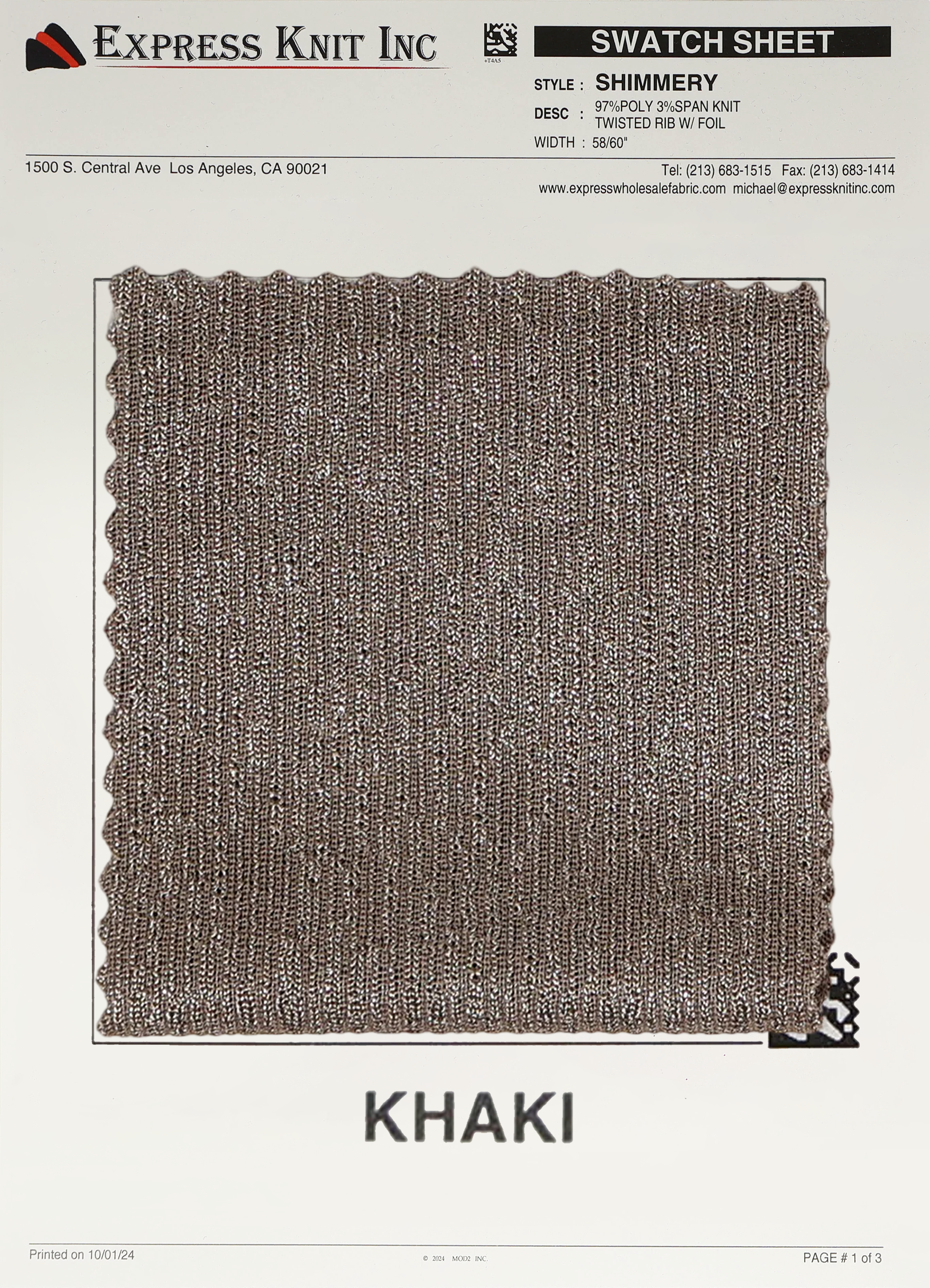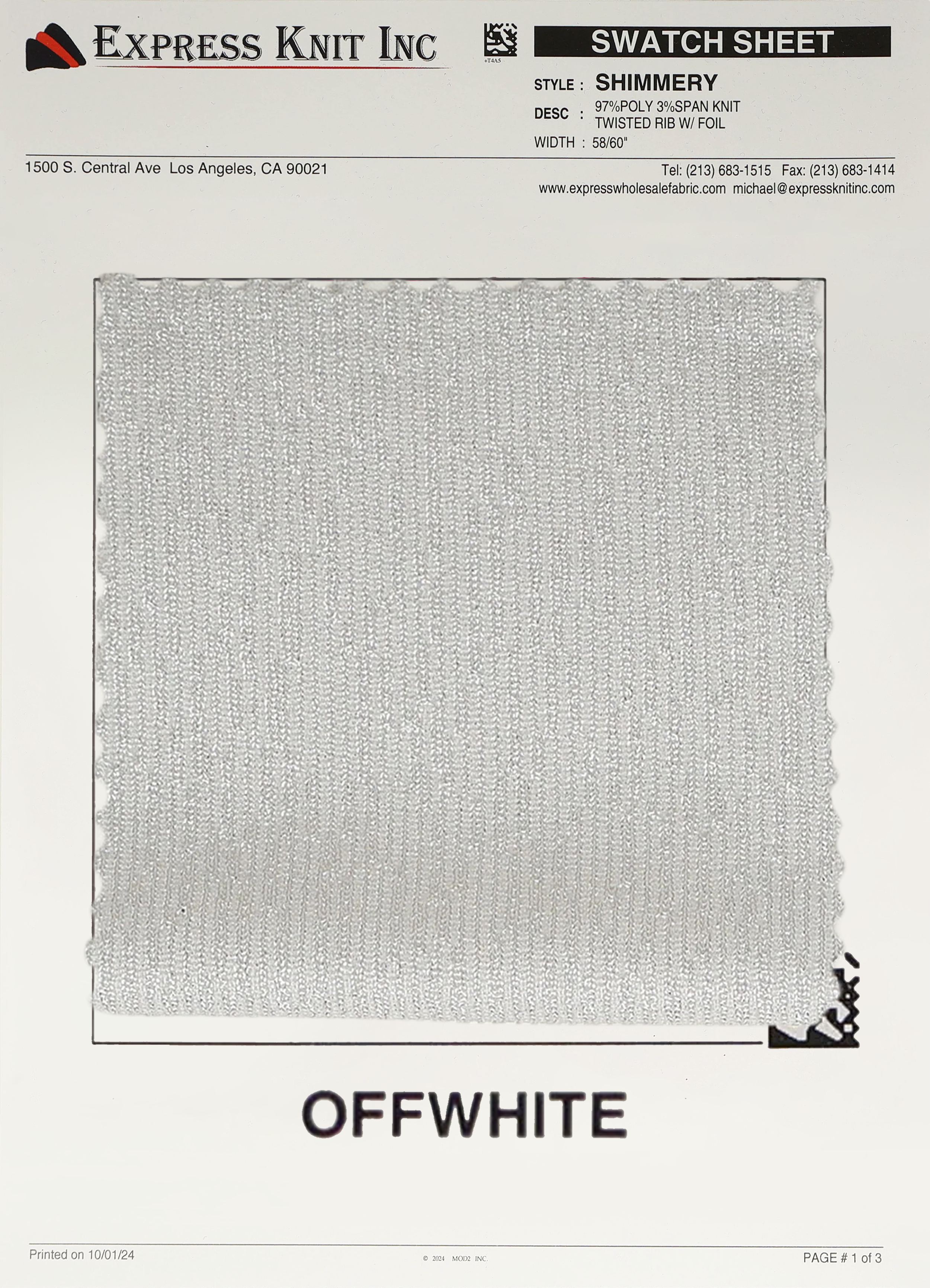 Wholesale Shimmery Fabric - 97% Polyester, 3% Spandex, Twisted Rib with Foil, 58/60 Inches Wide