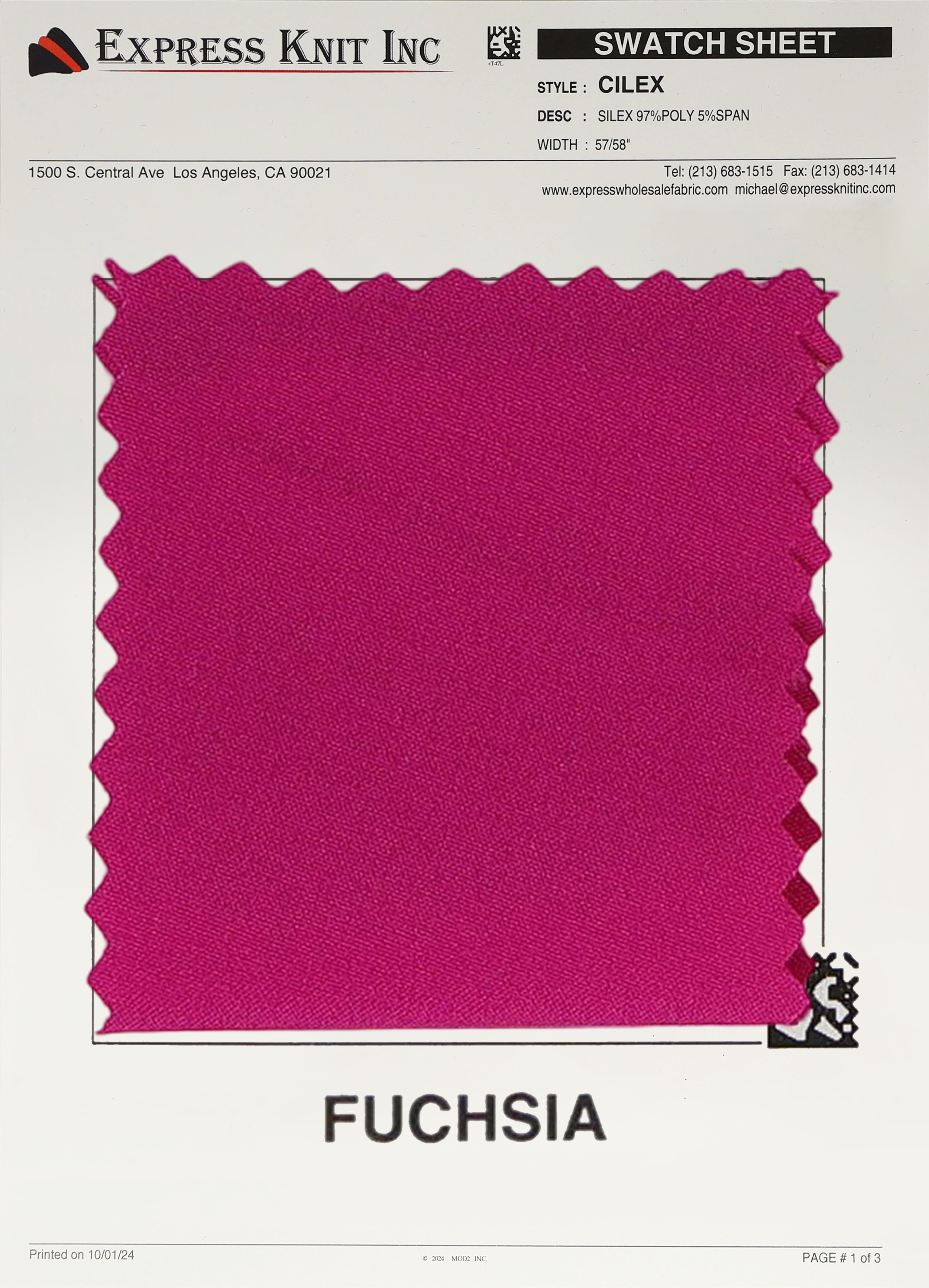Our Silex Solid Fabric, available at wholesale pricing, is crafted from a high-quality polyester-spandex blend, providing a smooth, refined finish that’s perfect for a range of applications. With a solid color and subtle stretch, this fabric is both versatile and durable, making it ideal for comfortable yet stylish garments. The 2-way stretch ensures flexibility and ease of movement, while the 57-58 inch width allows for efficient use in large projects, making it a popular choice for designers and brands looking for a reliable, high-quality fabric.